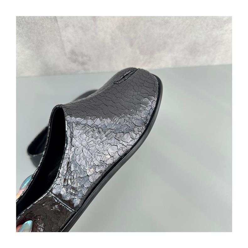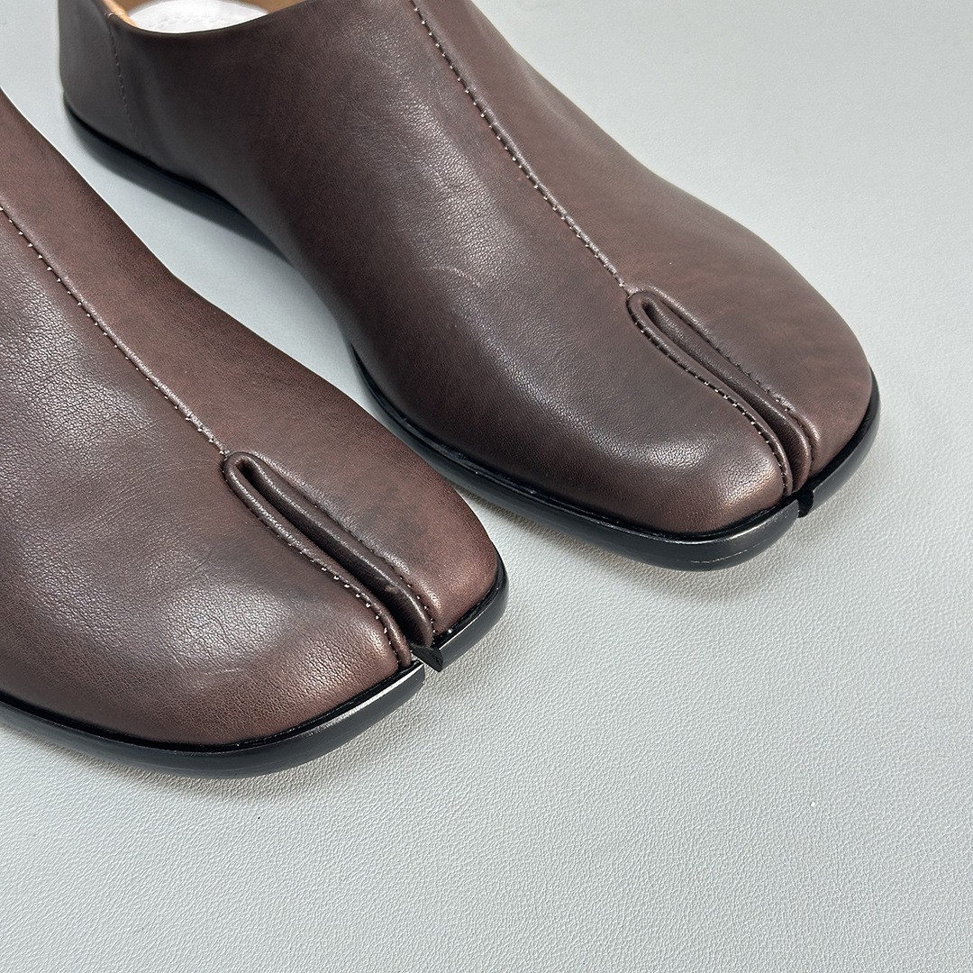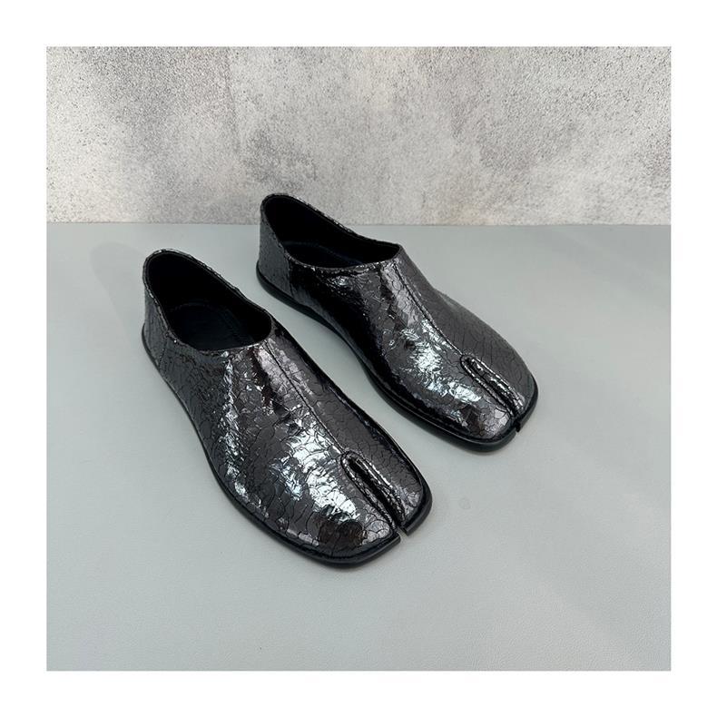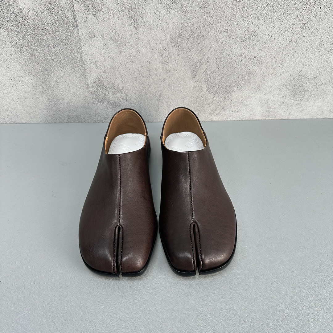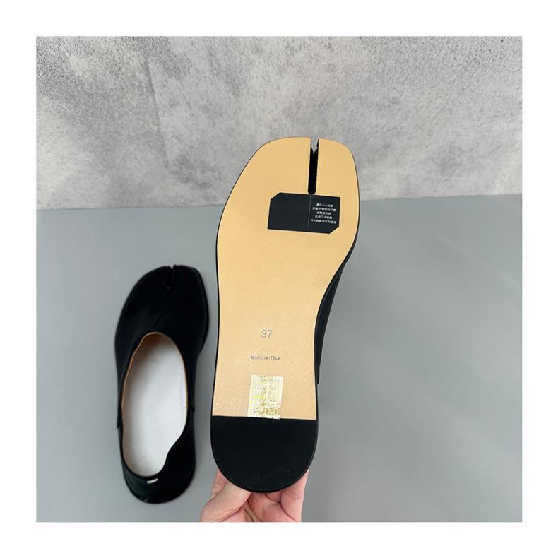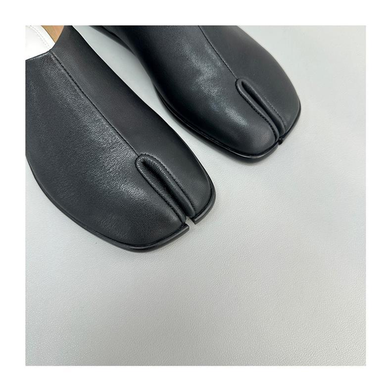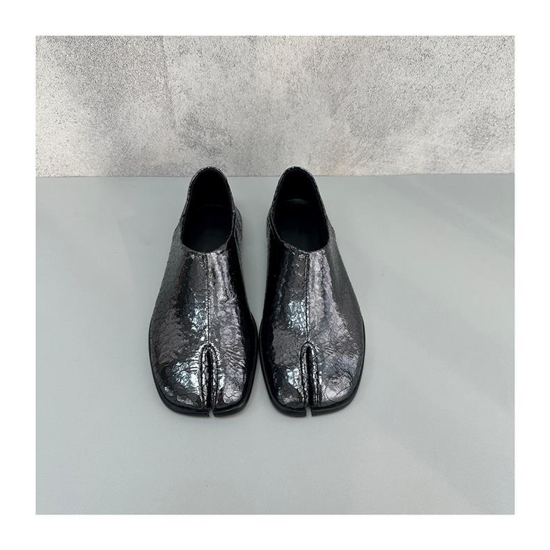봄과 가을 틈새 타비 발가락 신발 여성 돼지 트로터 깊은 입 신발 부드러운 가죽 가죽 가죽 스텝 힐 플랫 밀크 신발