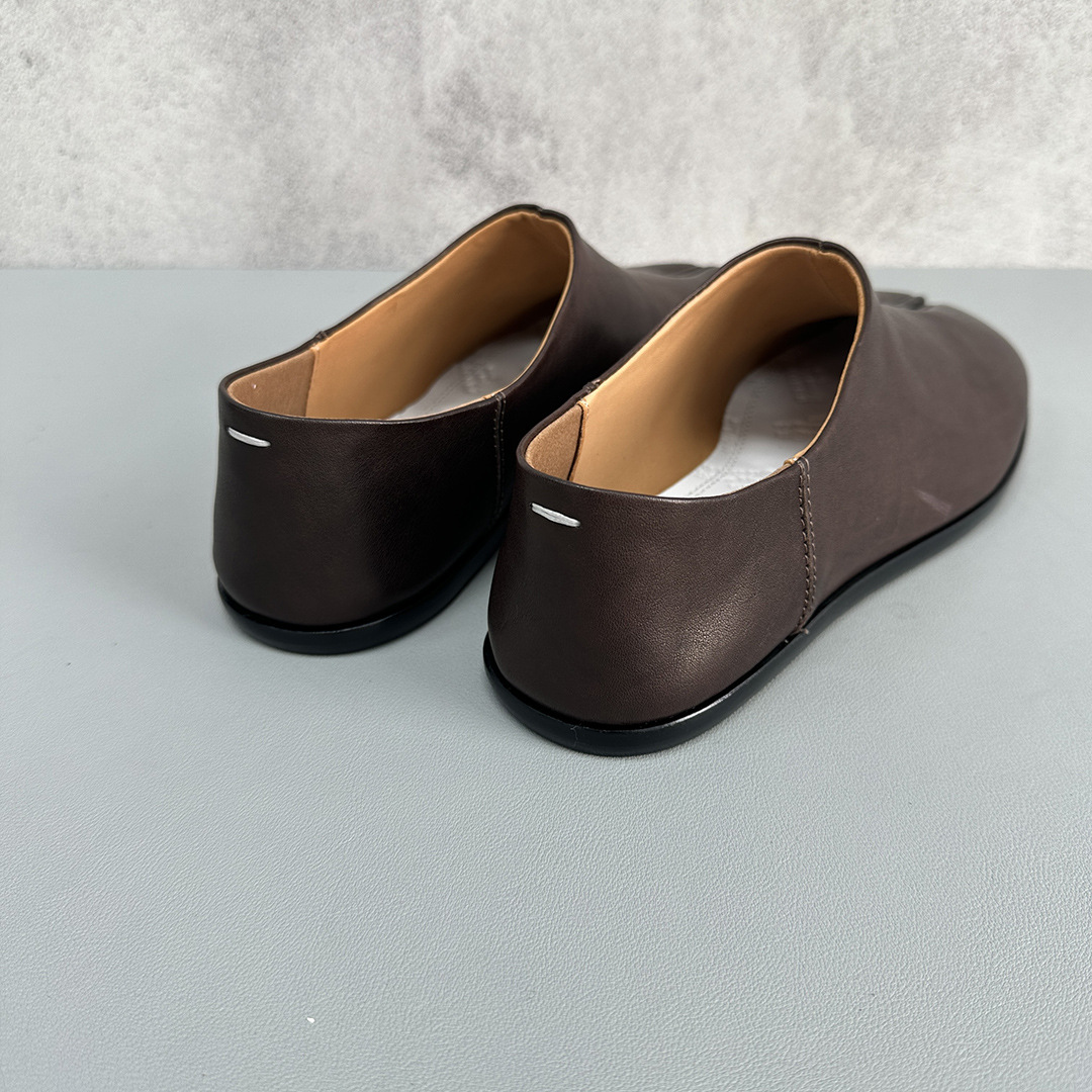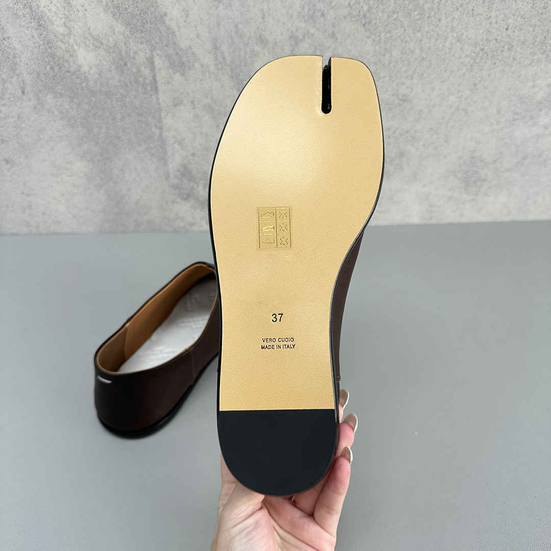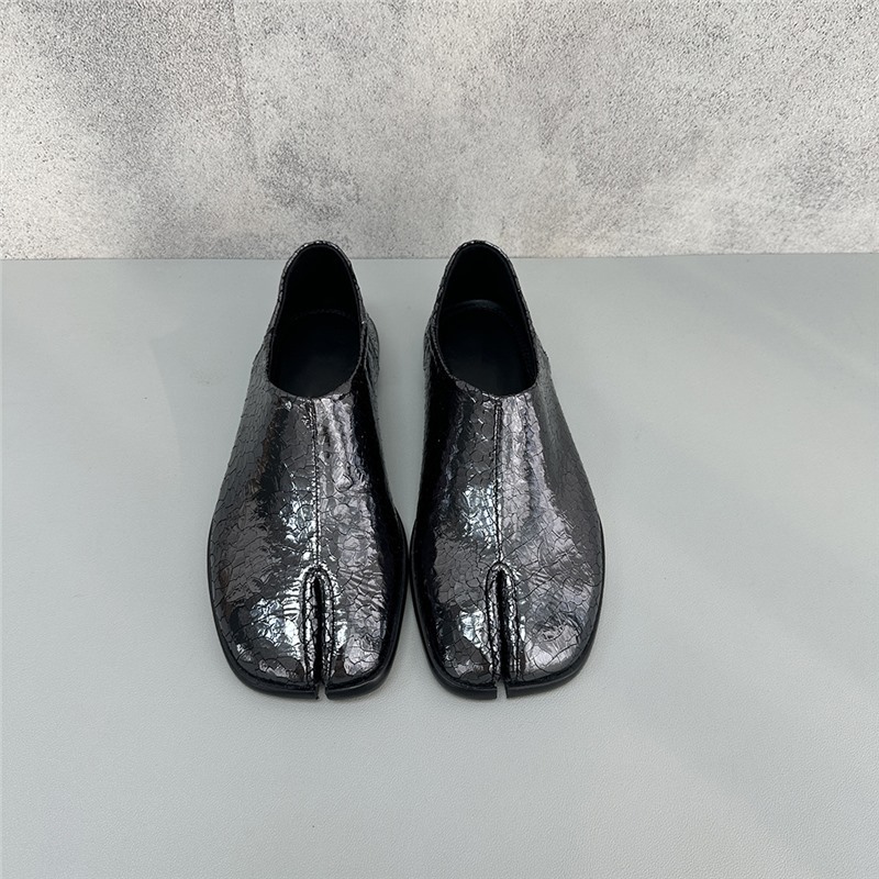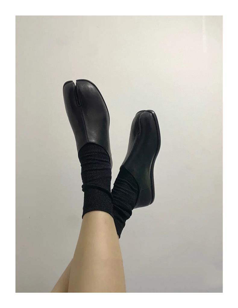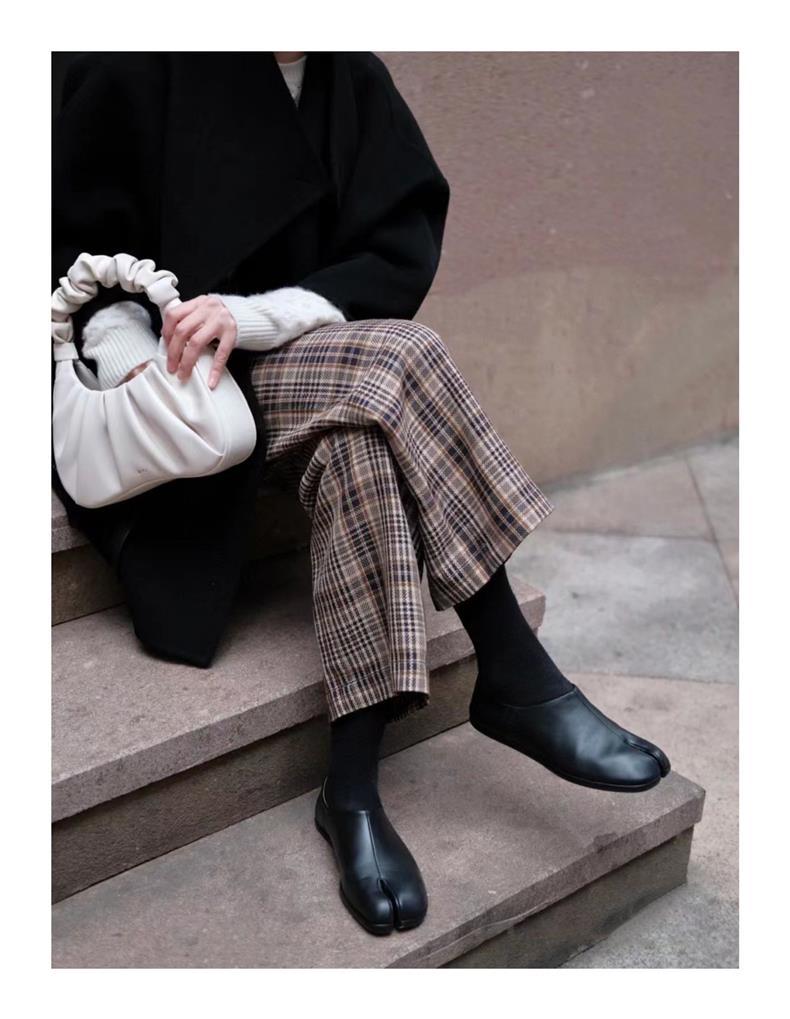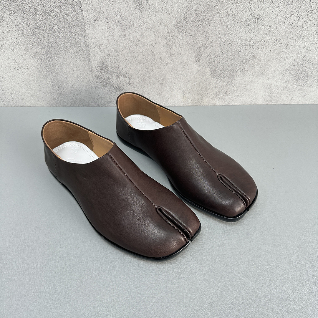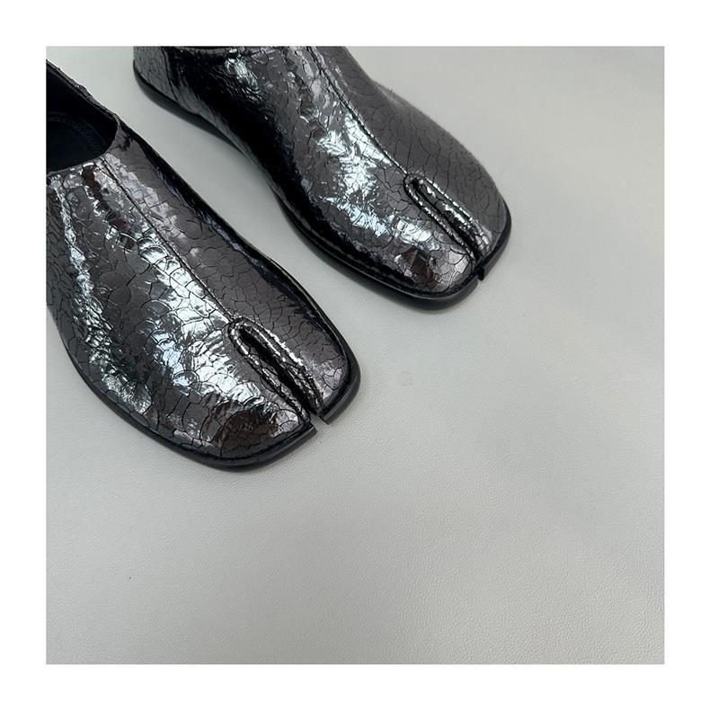 봄과 가을 틈새 타비 발가락 신발 여성 돼지 트로터 깊은 입 신발 부드러운 가죽 가죽 가죽 스텝 힐 플랫 밀크 신발