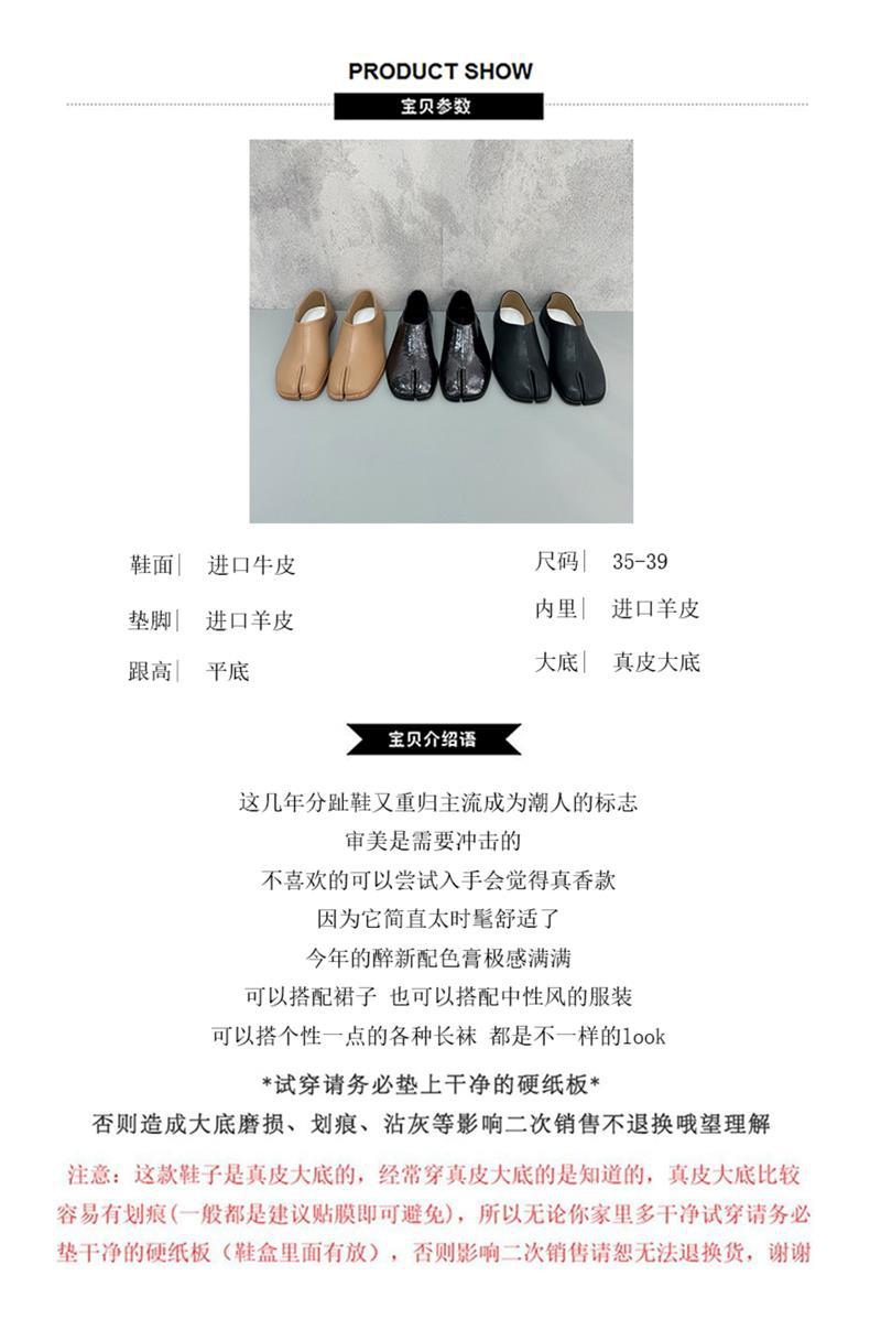 봄과 가을 틈새 타비 발가락 신발 여성 돼지 트로터 깊은 입 신발 부드러운 가죽 가죽 가죽 스텝 힐 플랫 밀크 신발스토어 가기