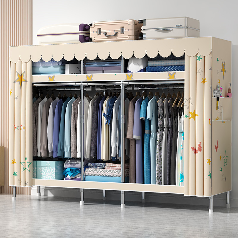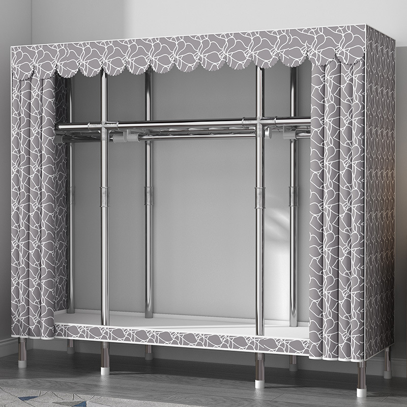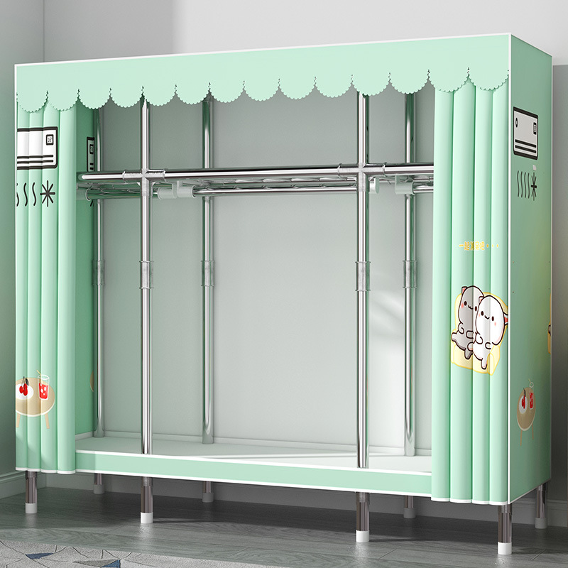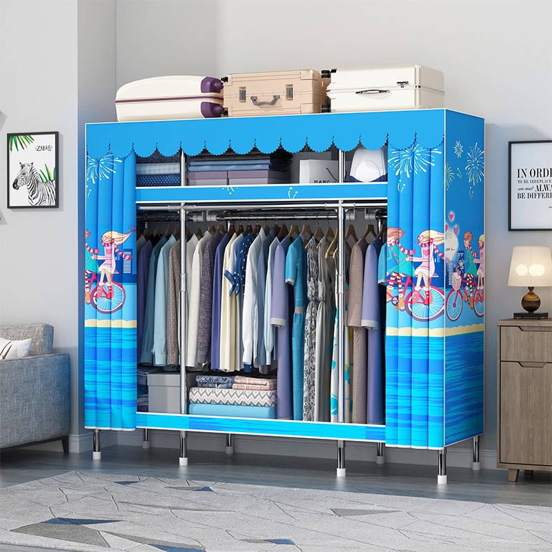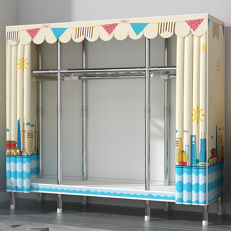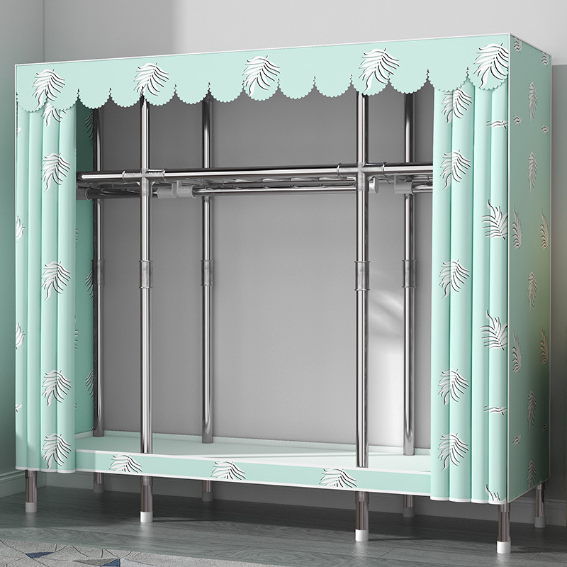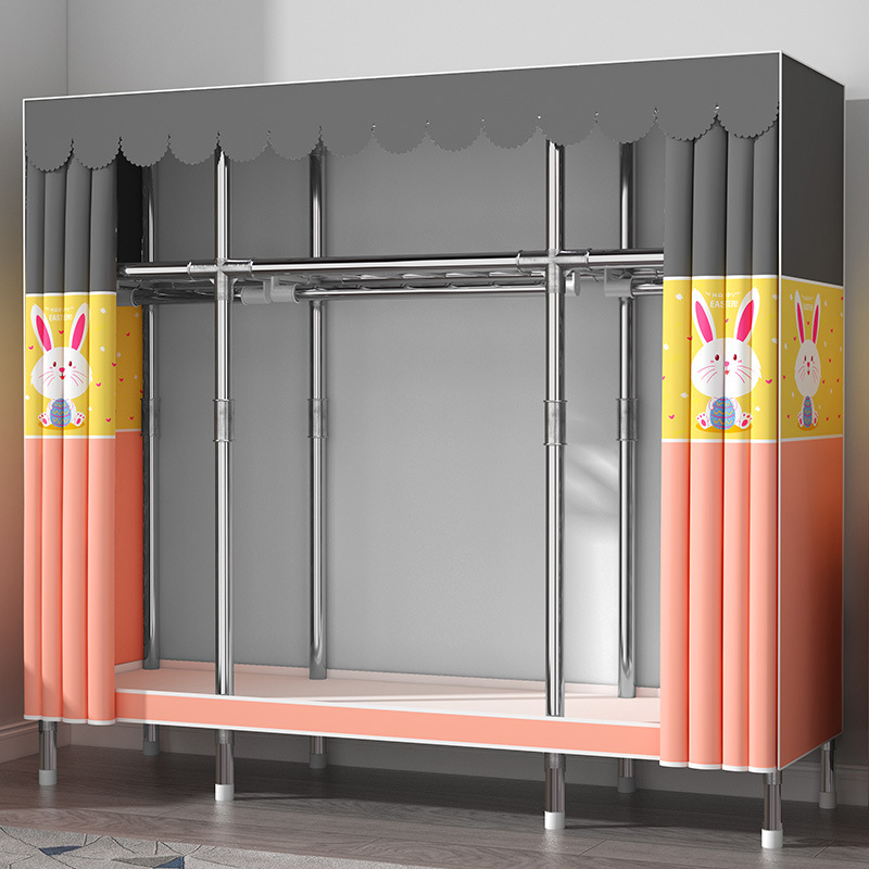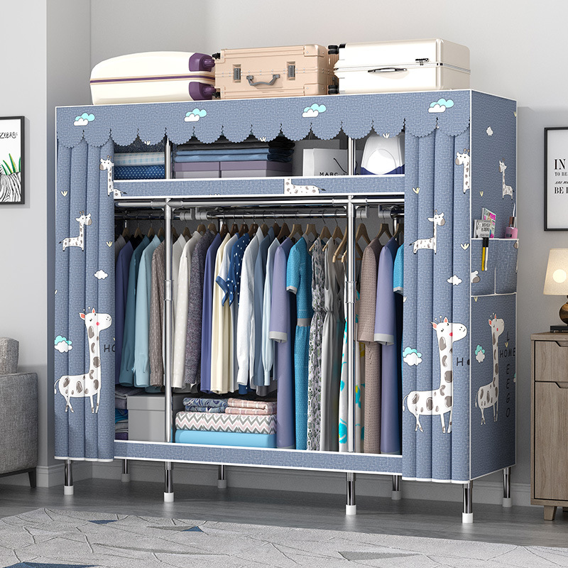 간단한 옷장 홈 침실 현대 간단한 경제적 인 천 옷장 임대 룸 보관을위한 강철 튜브 대담한 옷장스토어 가기