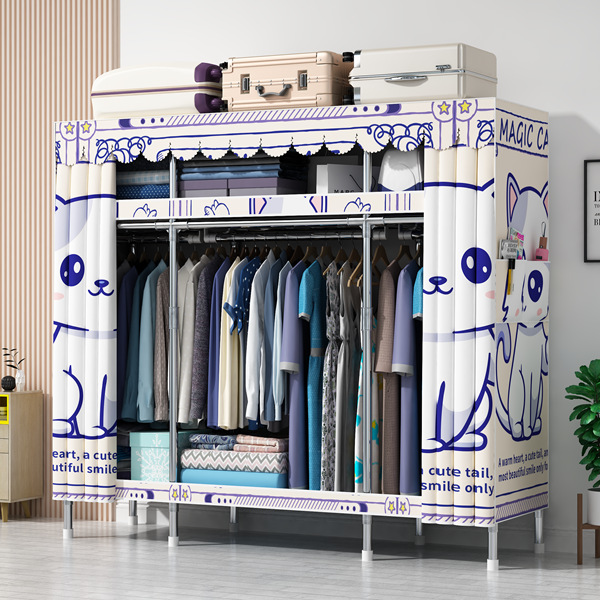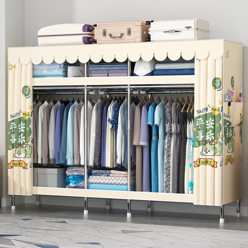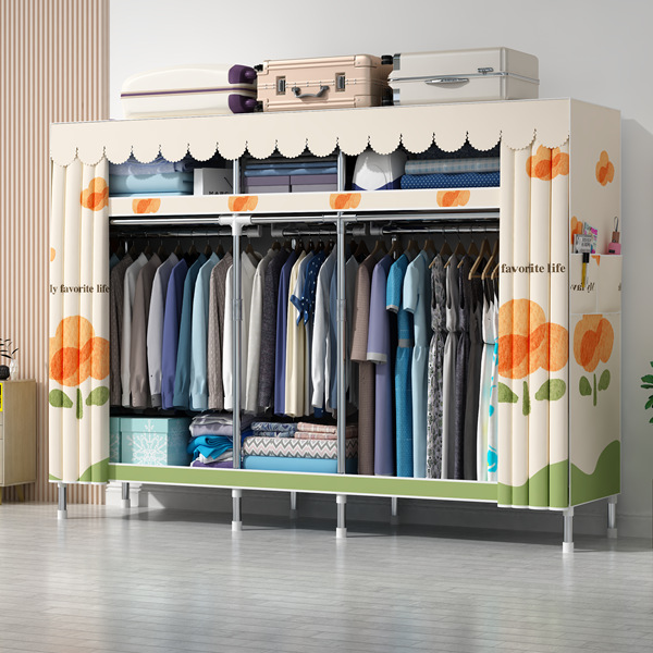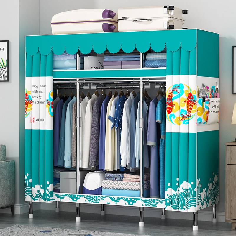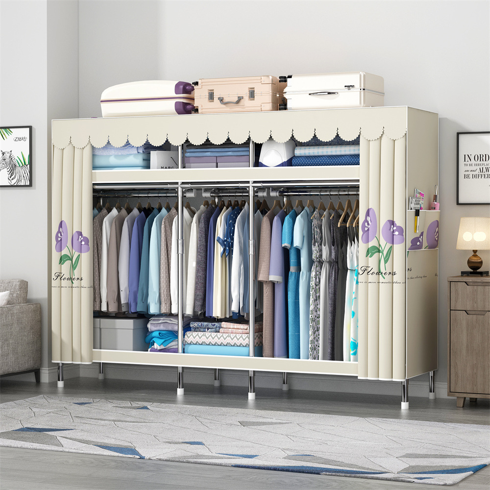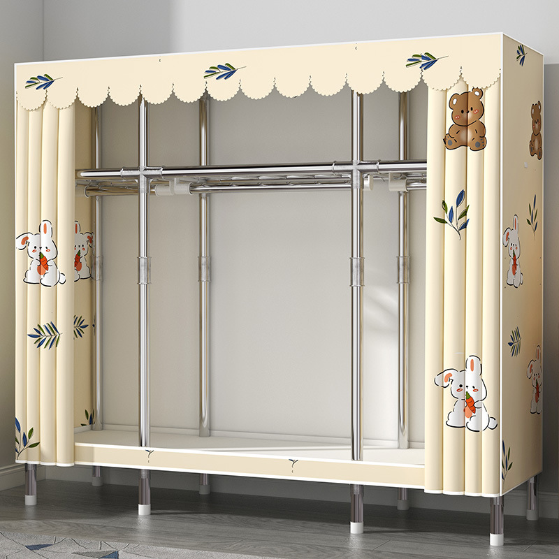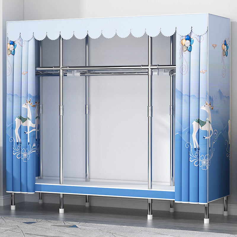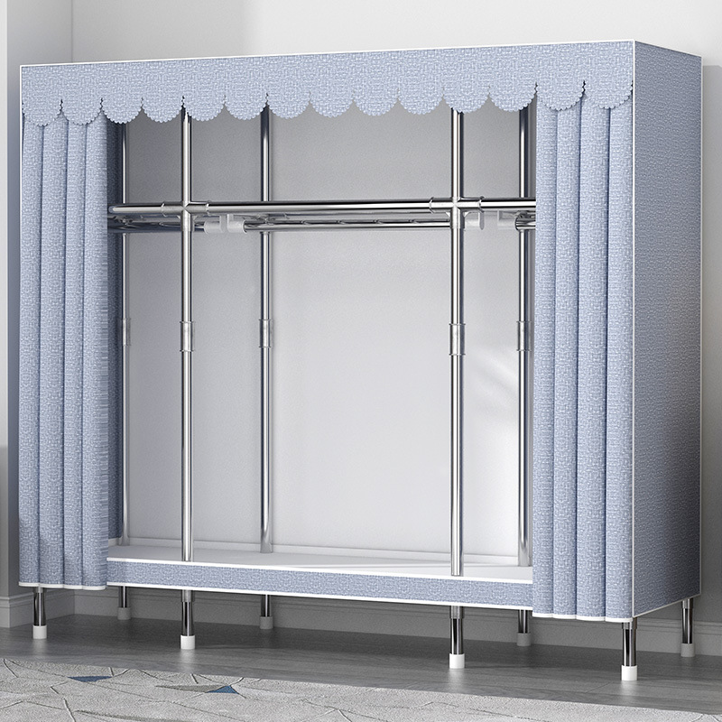 간단한 옷장 홈 침실 현대 간단한 경제적 인 천 옷장 임대 룸 보관을위한 강철 튜브 대담한 옷장스토어 가기