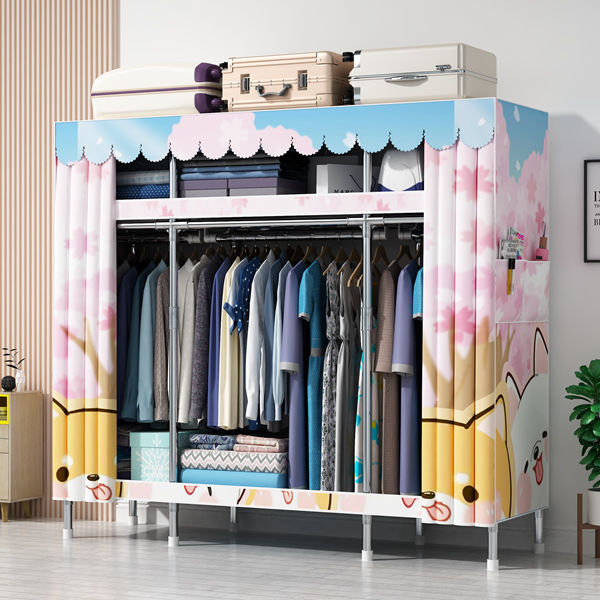 간단한 옷장 홈 침실 현대 간단한 경제적 인 천 옷장 임대 룸 보관을위한 강철 튜브 대담한 옷장