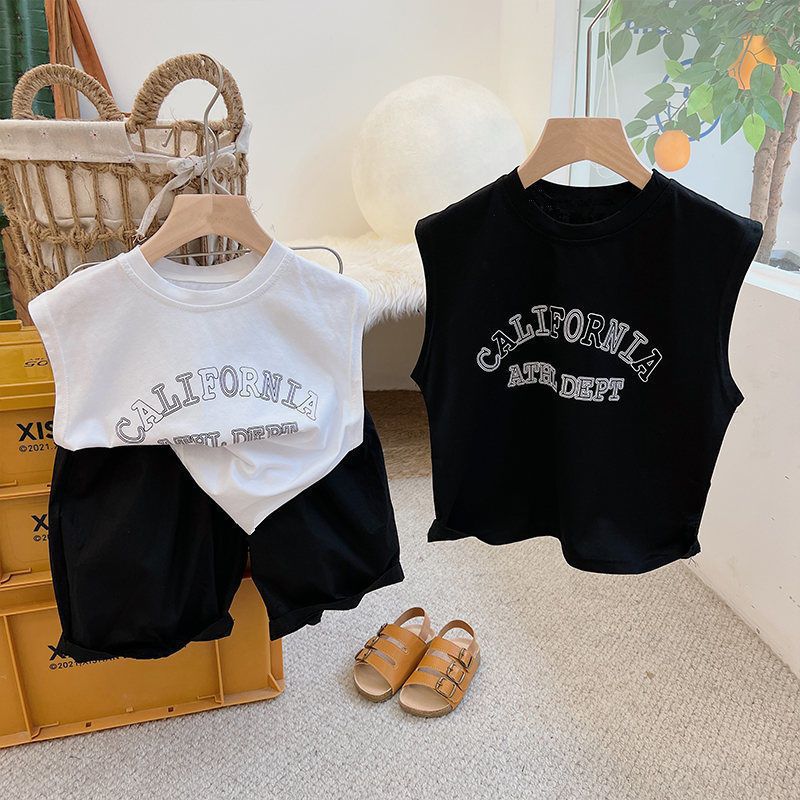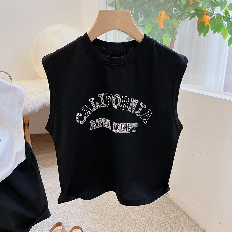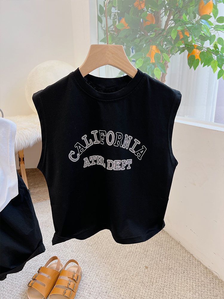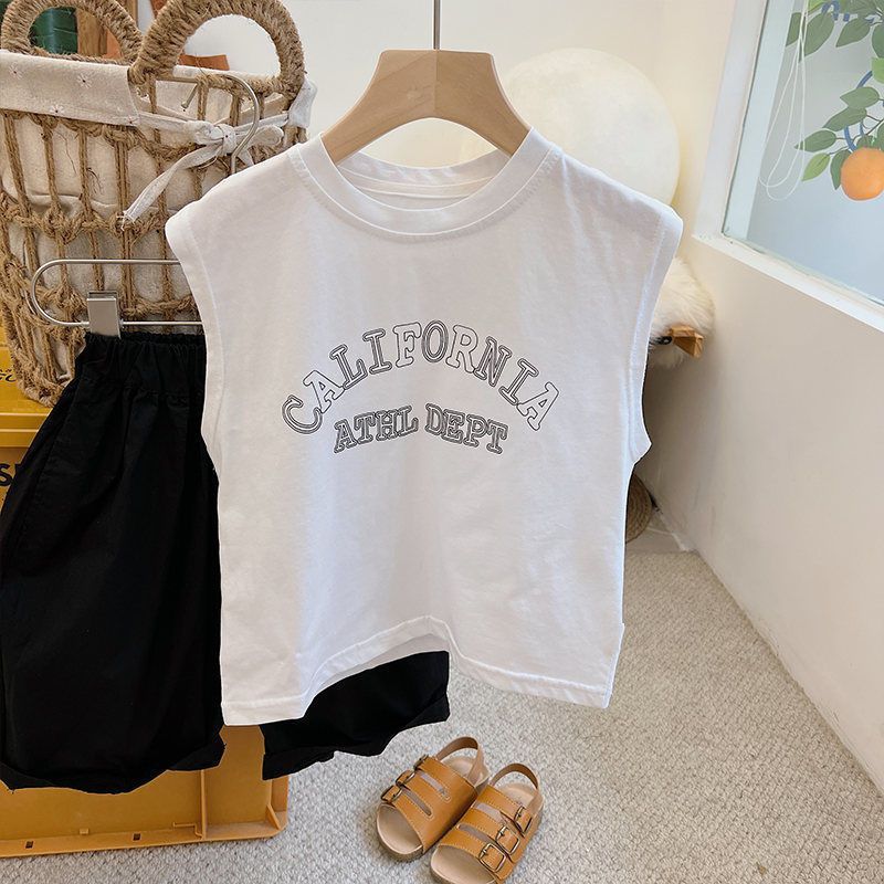 순면 아동용 민소매 티셔츠 2024 여름 한국판 남아 여아용 루즈핏 통기성 라운드넥 탑 다용도스토어 가기