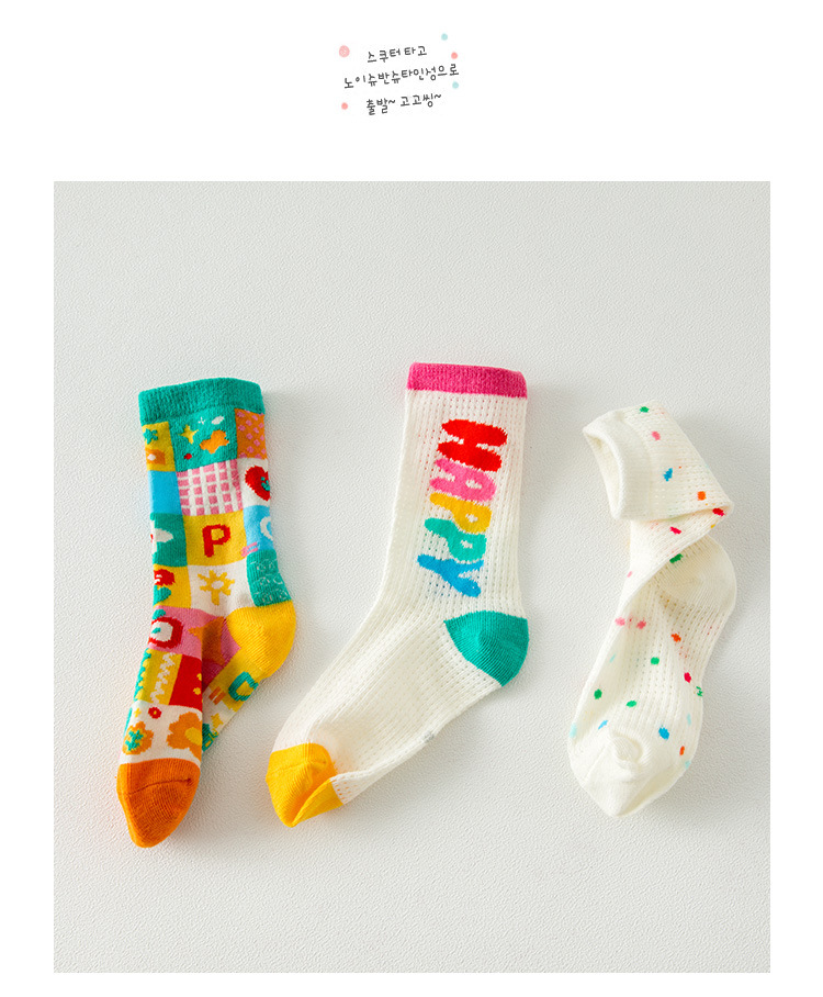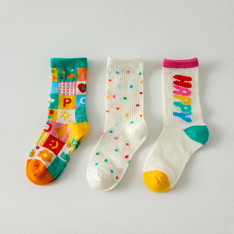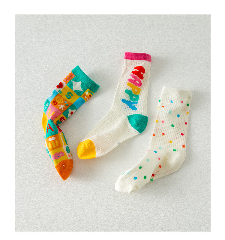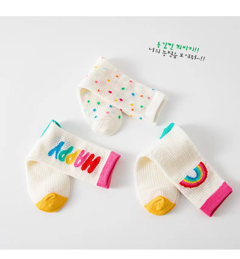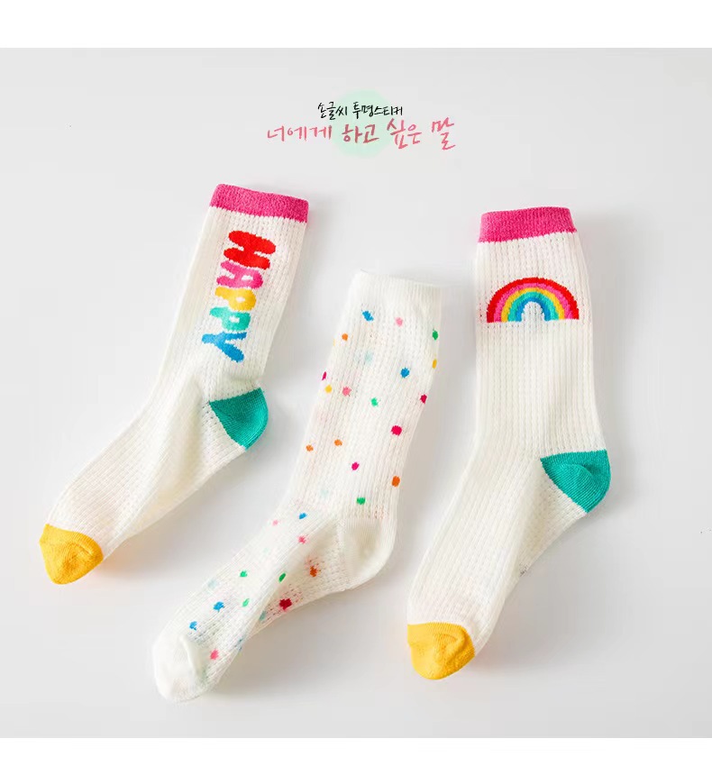 아동용 트렌디 양말 도매 2026 봄 여름 얇은 무지개 메쉬 양말 작은 물방울 무늬 놀이공원 여아 양말스토어 가기