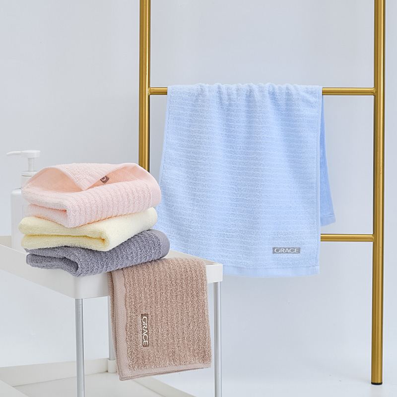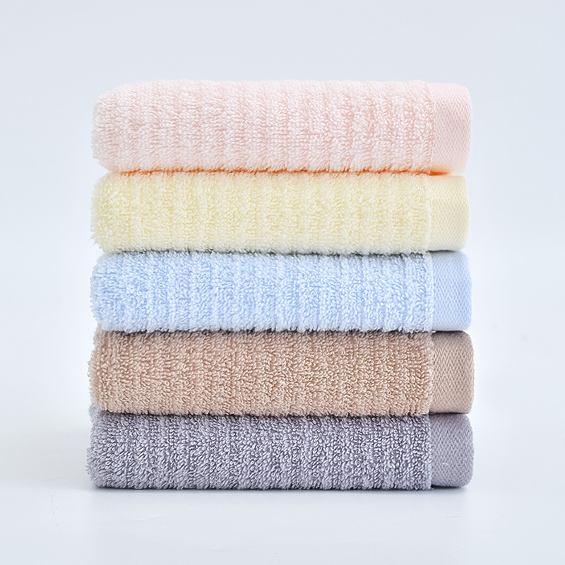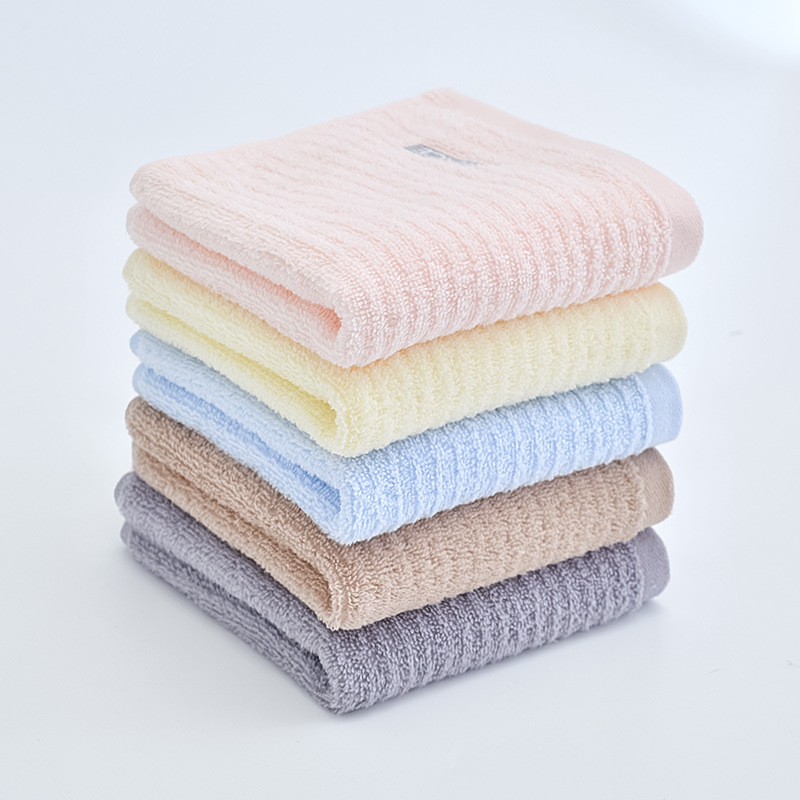 Jieliya 210034 순면 미디엄 스카프 일반 색상 수평 스트립 세미 트위스트 자수 작은 수건 학생 성인 세차 페이스 타올