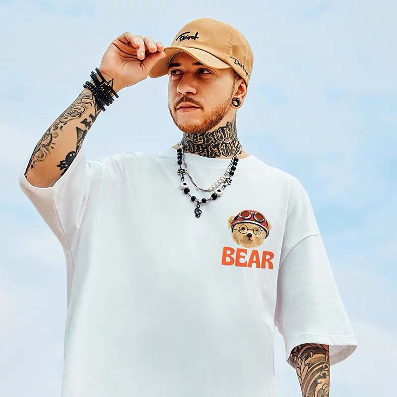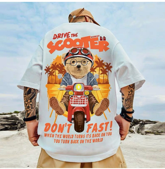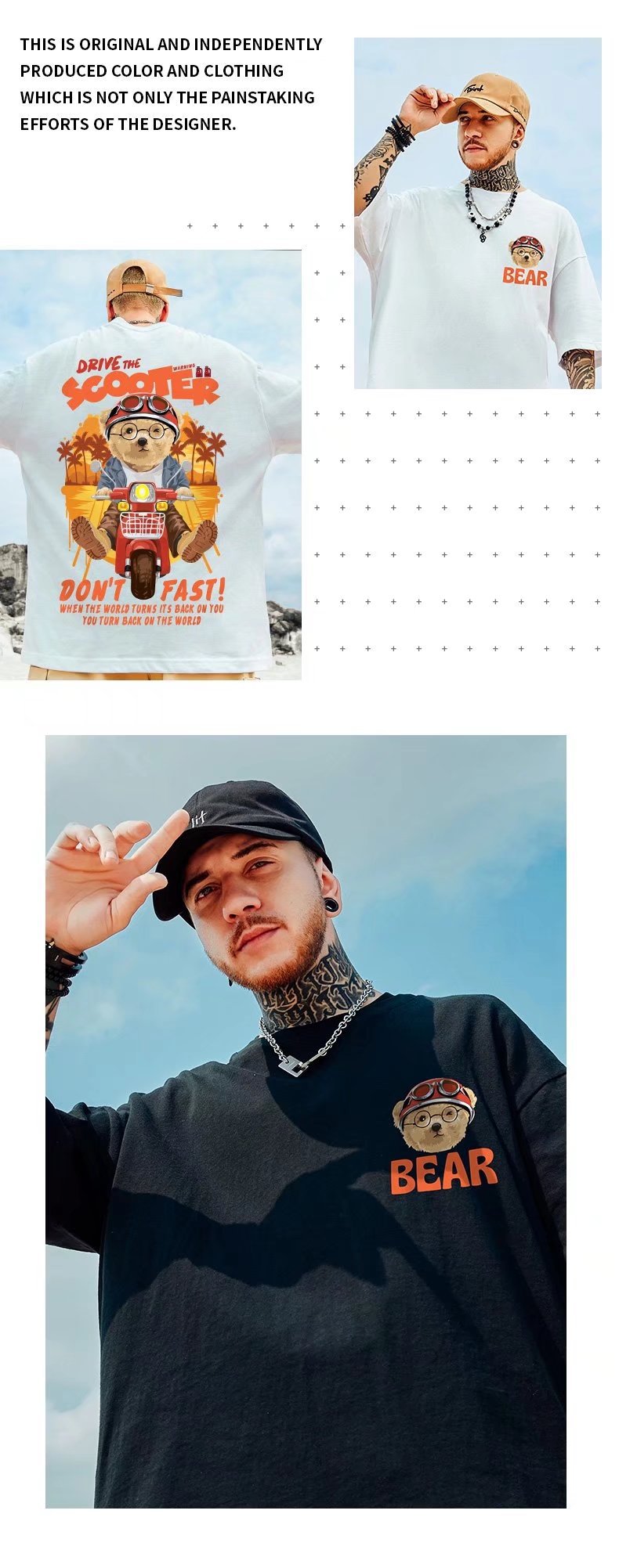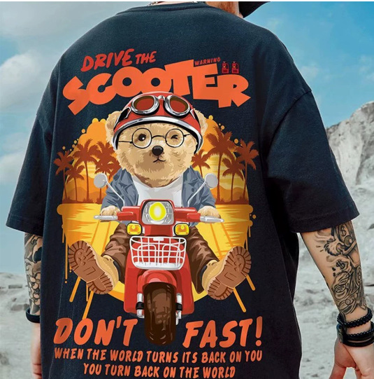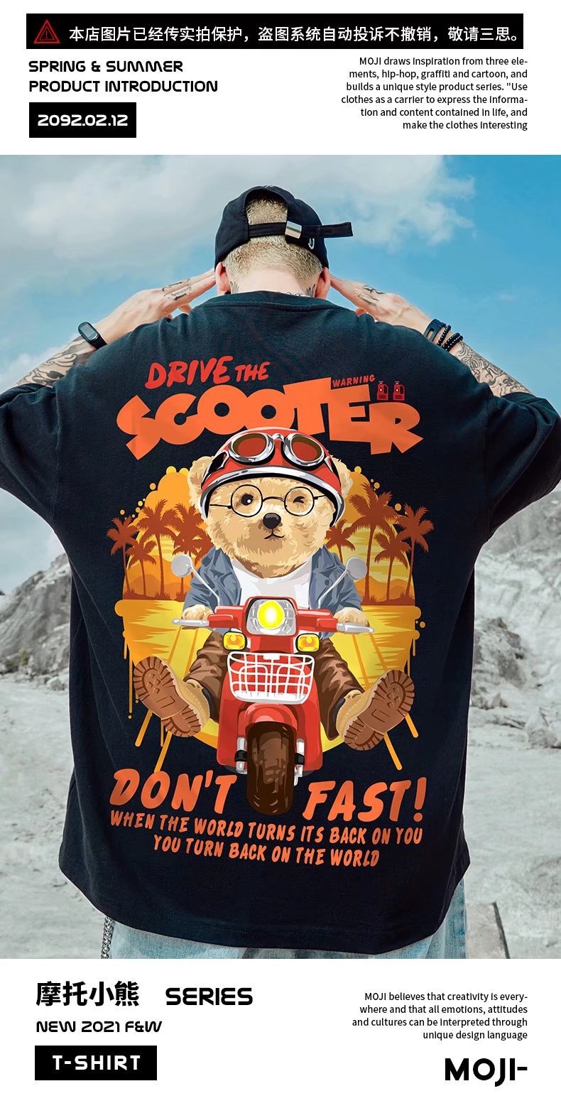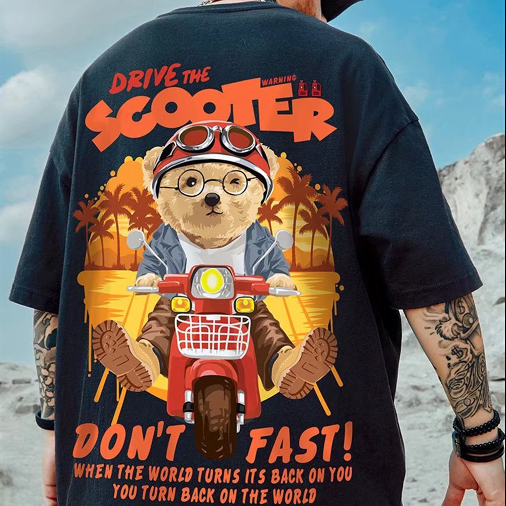 플러스 사이즈 남성용 반팔 티셔츠 2025 트렌디 브랜드 오토바이 베어 팻 루즈 대형 남성 여름 바디 슈트스토어 가기