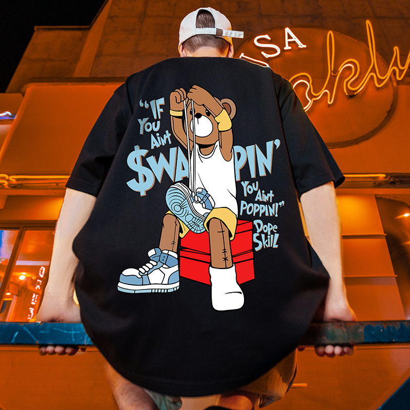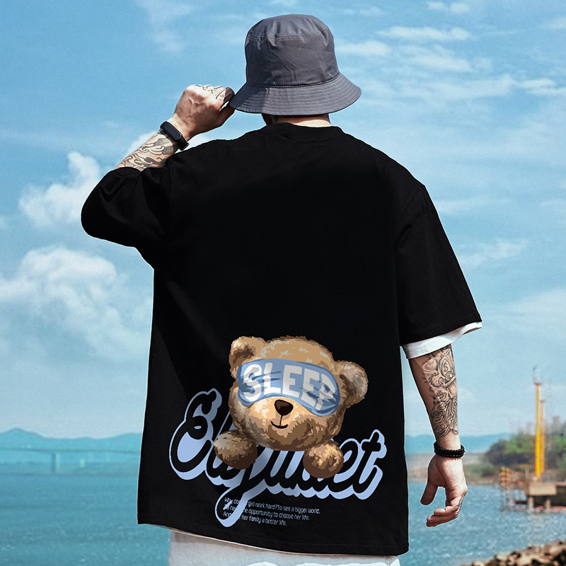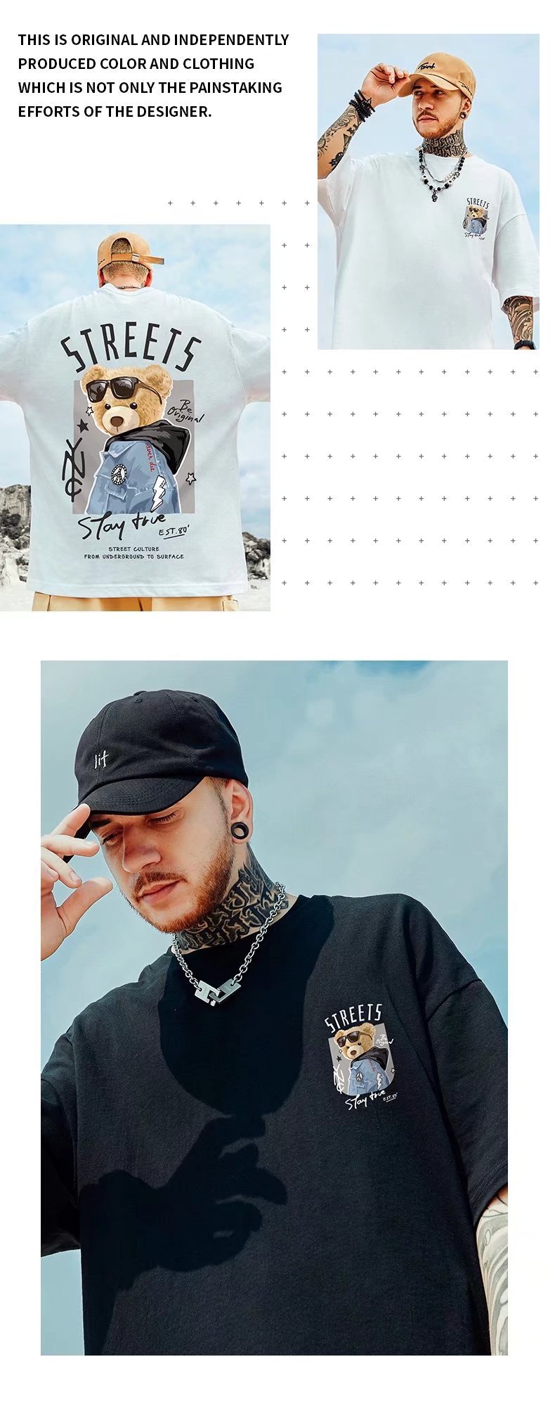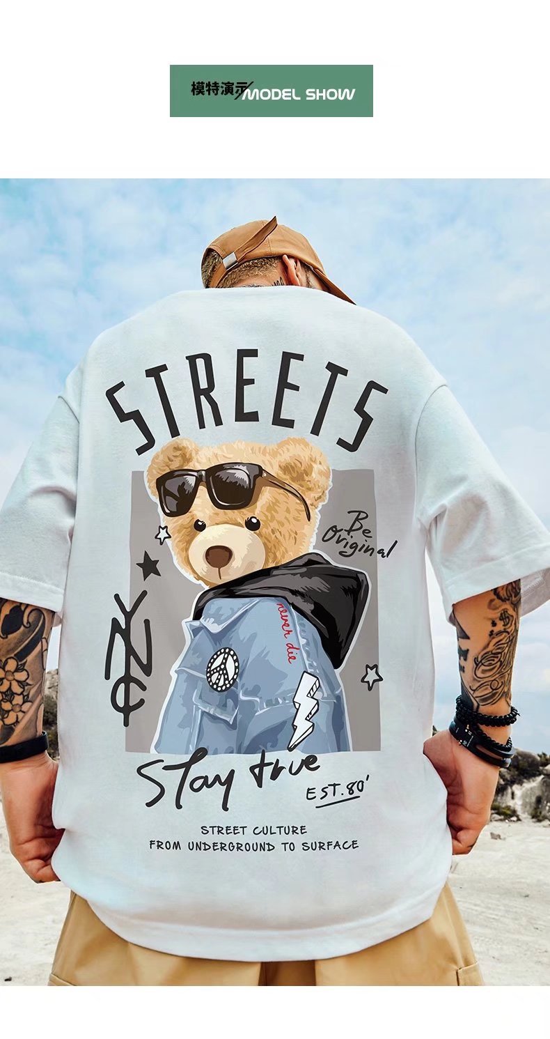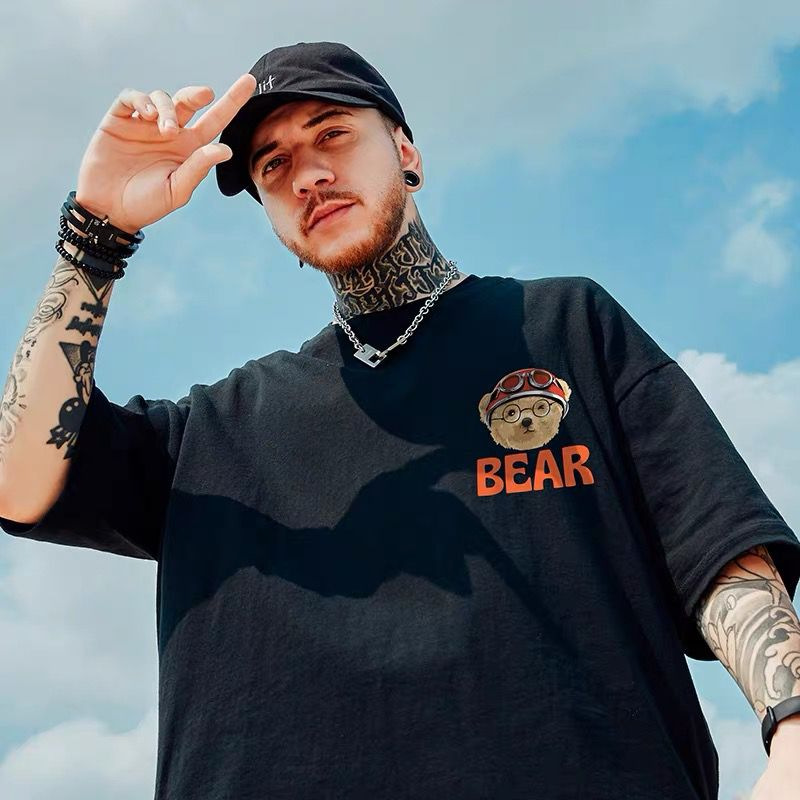 플러스 사이즈 남성용 반팔 티셔츠 2025 트렌디 브랜드 오토바이 베어 팻 루즈 대형 남성 여름 바디 슈트스토어 가기
