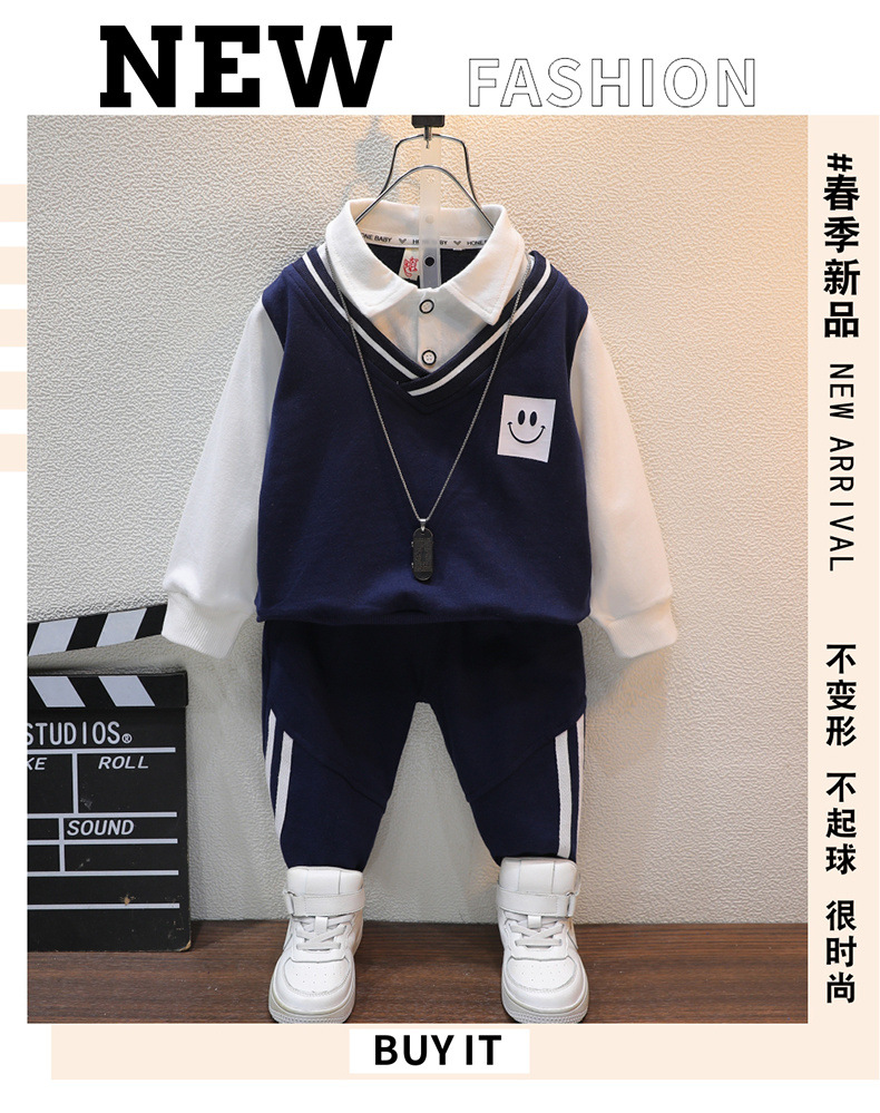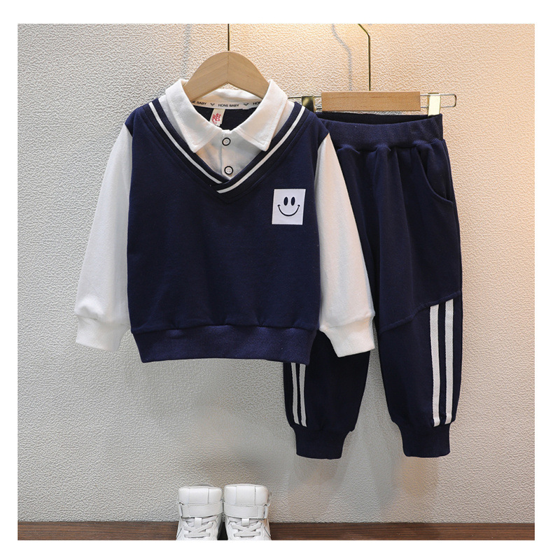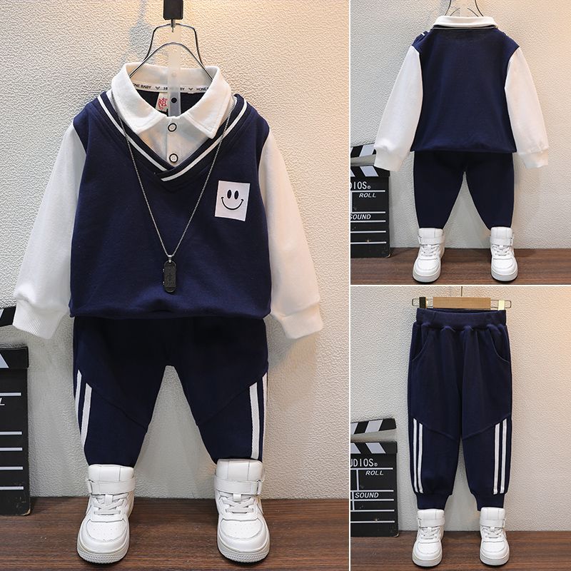 아동복 봄과 가을 남아 세트 가을 의류 아동 가짜 투피스 탑 캐주얼 바지 아동 스포츠웨어 투피스 세트스토어 가기