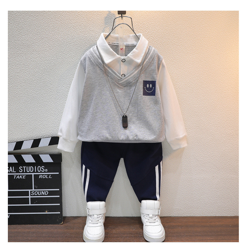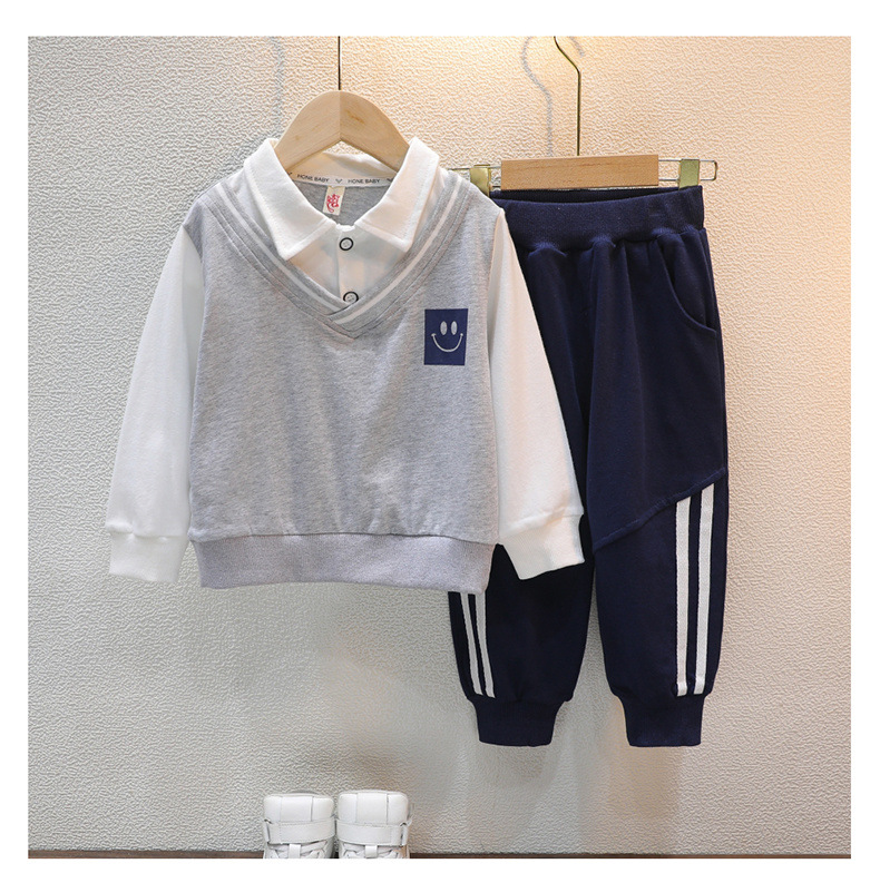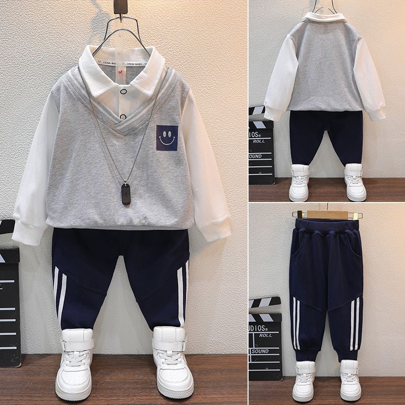 아동복 봄과 가을 남아 세트 가을 의류 아동 가짜 투피스 탑 캐주얼 바지 아동 스포츠웨어 투피스 세트