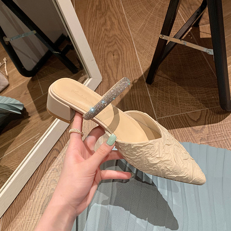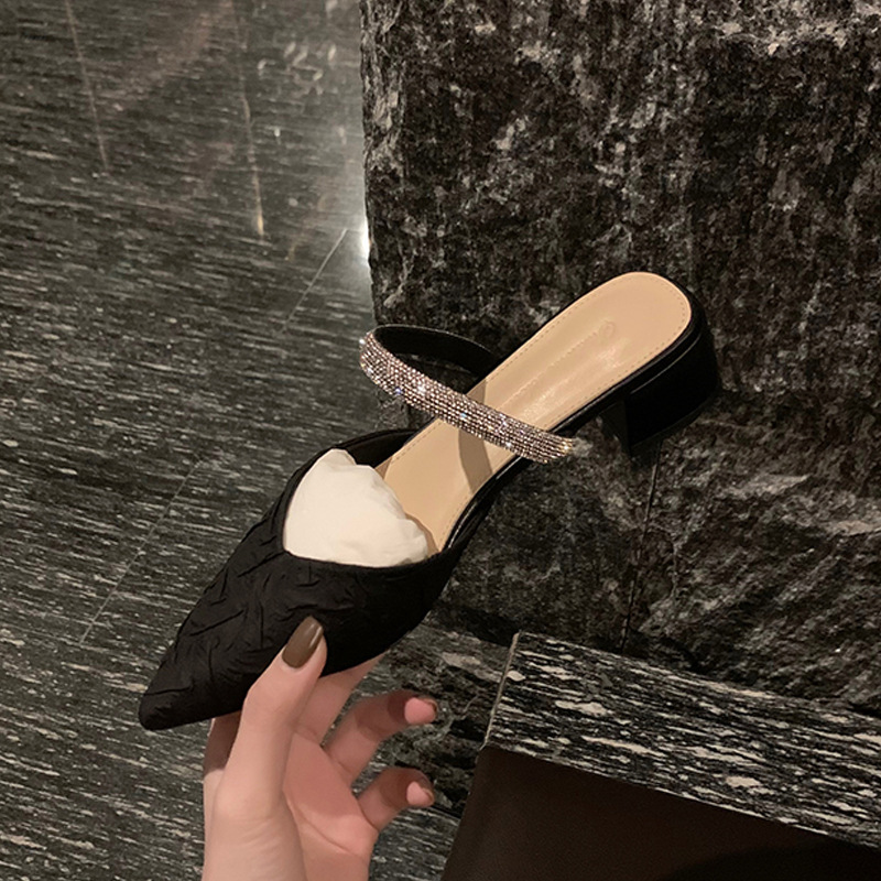 여성용 바오터우 반슬리퍼, 2025년 신상 요정 스타일, 라인스톤 장식의 두꺼운 굽과 뾰족한 앞코가 있는 메리제인 샌들