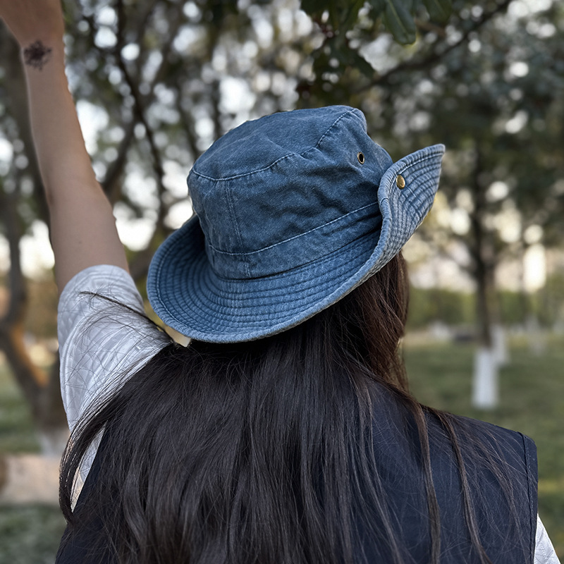 * Moon Sixpence * 단색 데님 라이더 모자 야외 캠핑 하이킹 모자 자외선 차단제 모자 여행 어부 모자