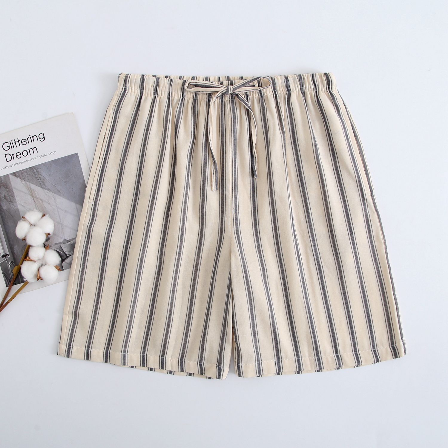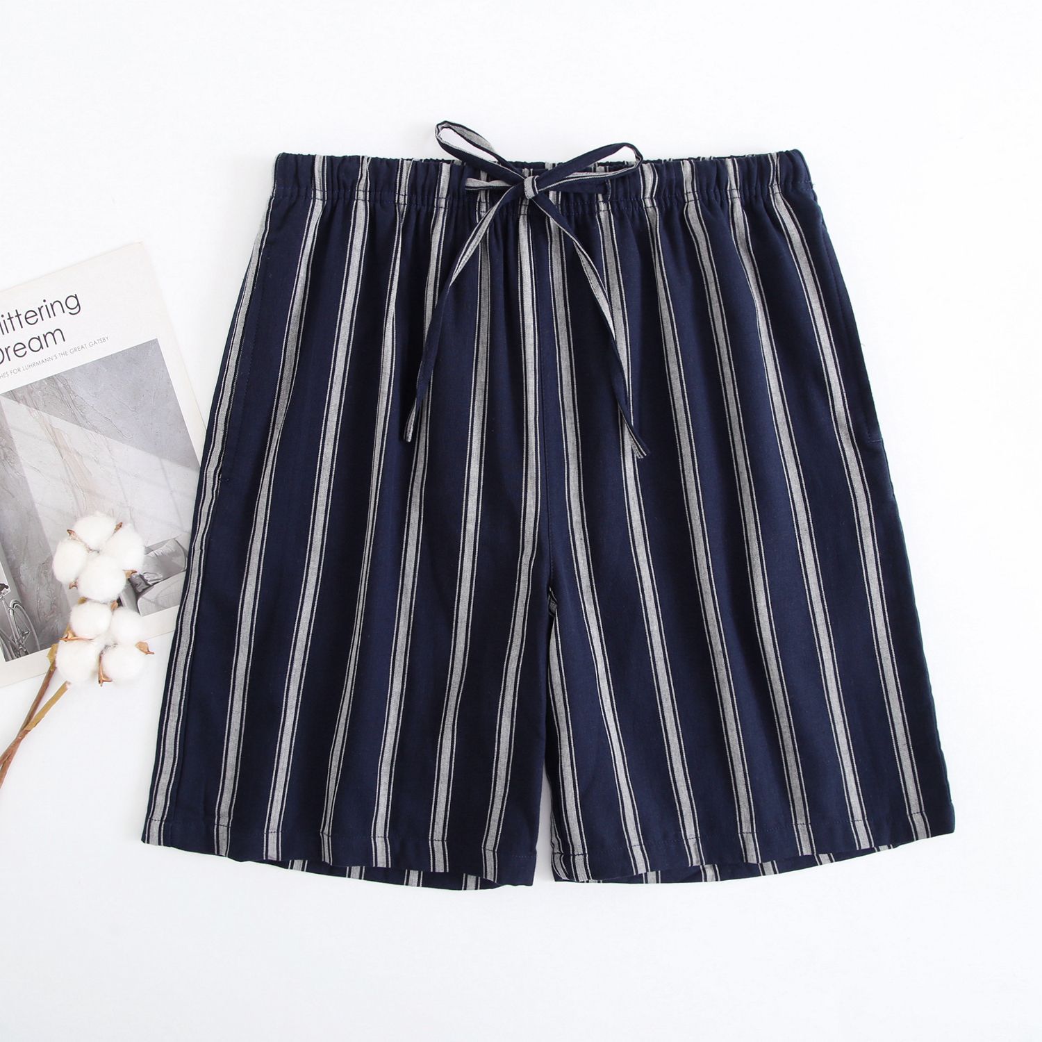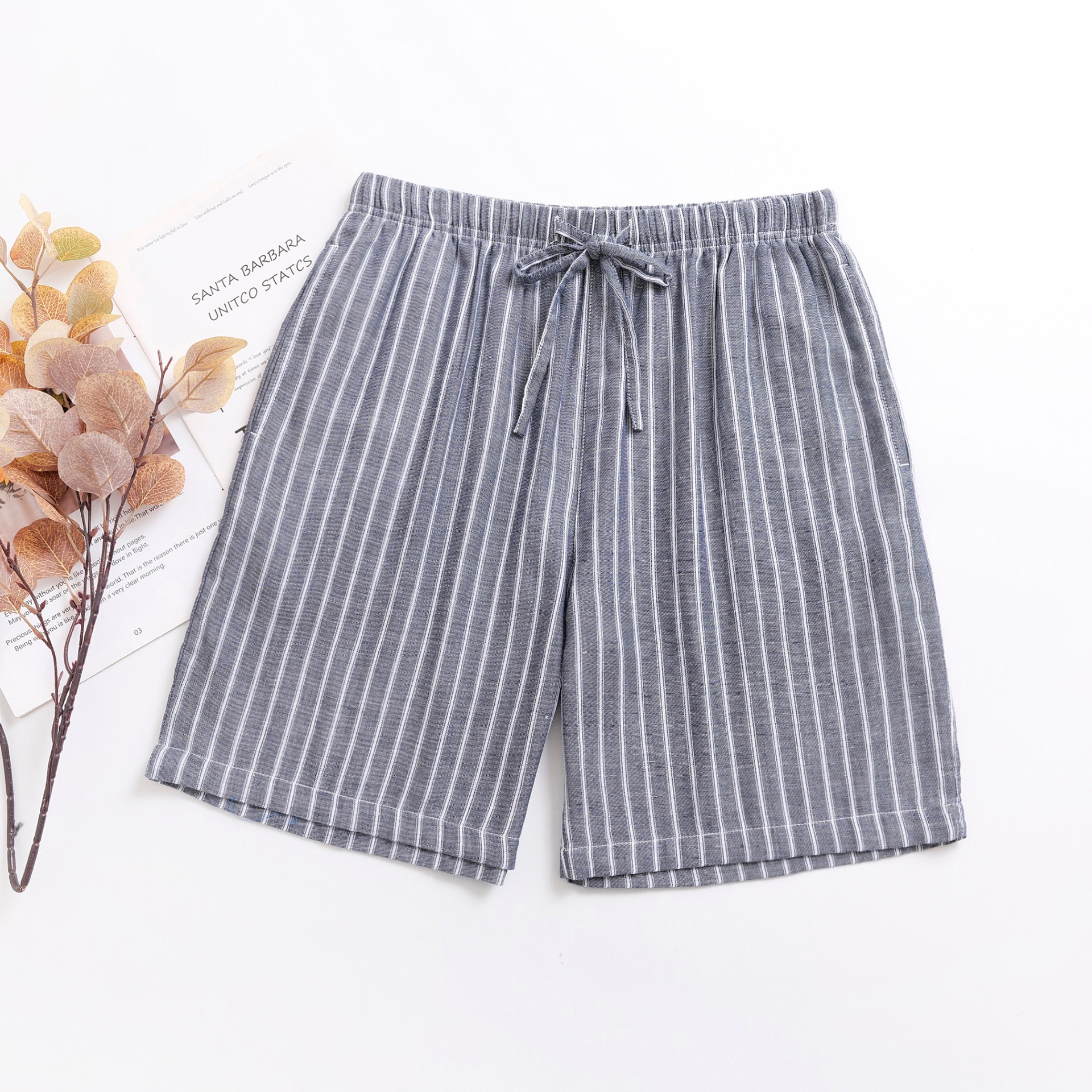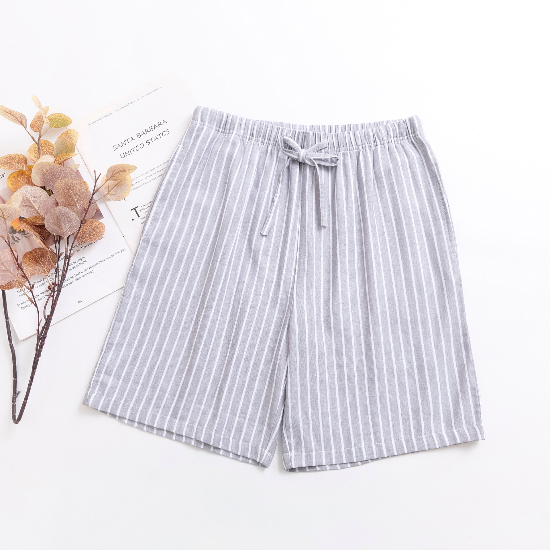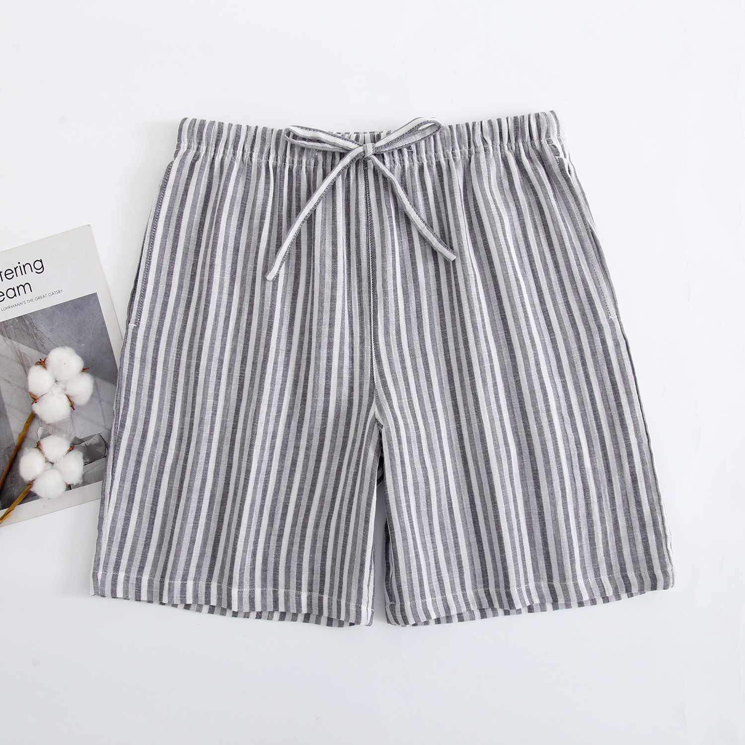 2024 새로운 봄과 여름 남자 반바지 얇은 면 파자마 바지 플러스 사이즈 느슨한 더블 거즈 통기성 홈 바지 에어컨