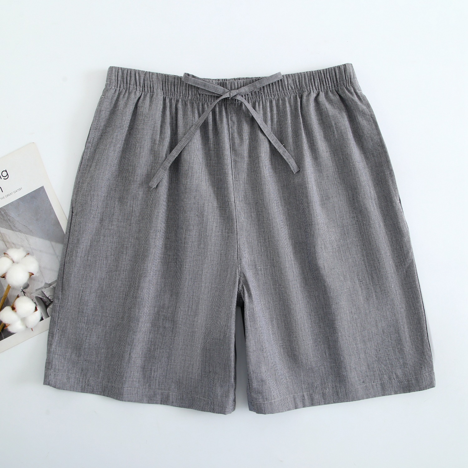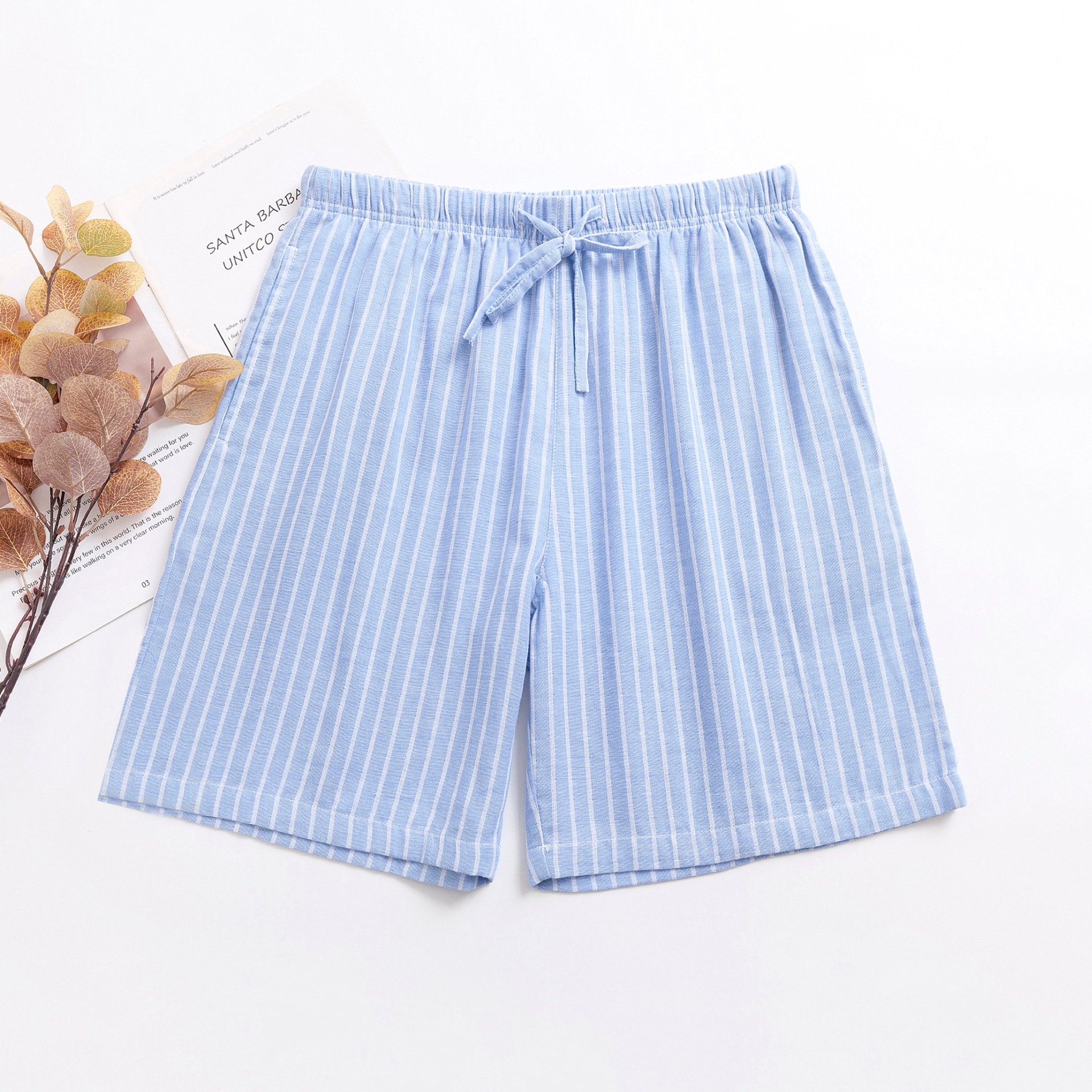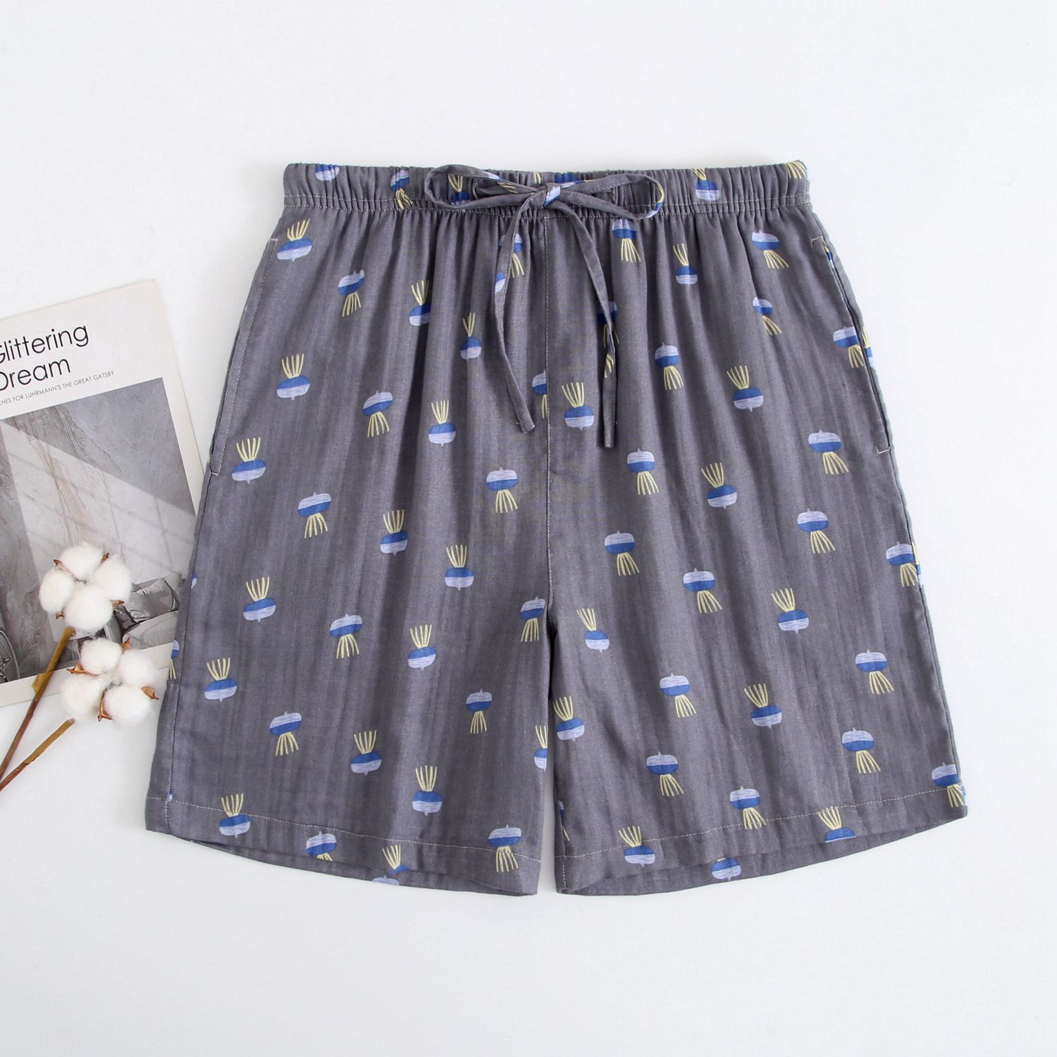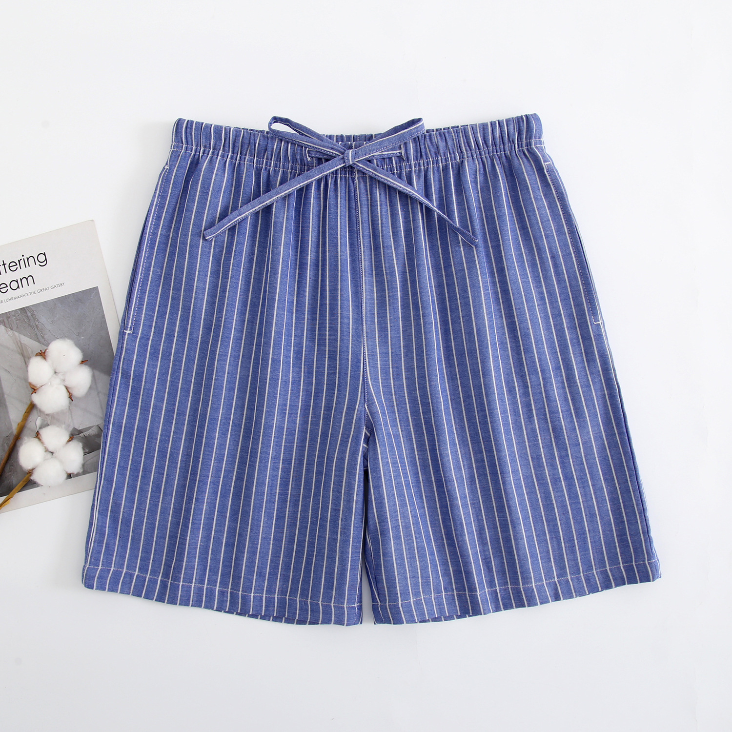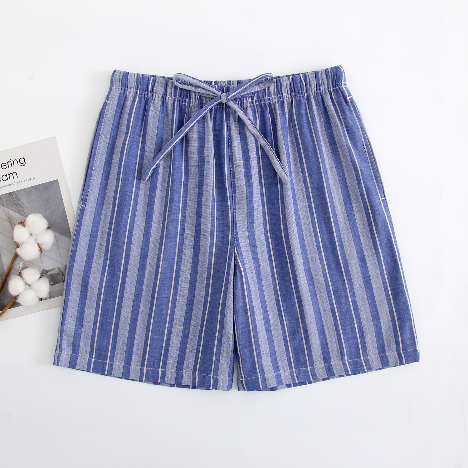 2024 새로운 봄과 여름 남자 반바지 얇은 면 파자마 바지 플러스 사이즈 느슨한 더블 거즈 통기성 홈 바지 에어컨