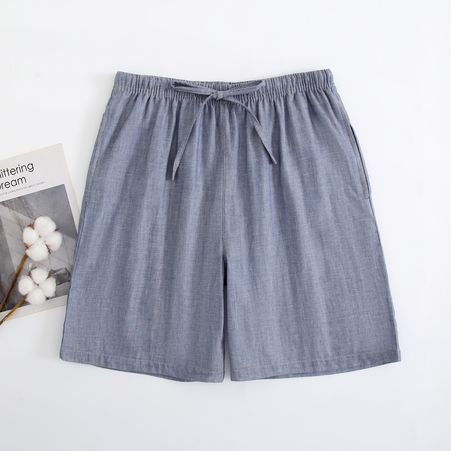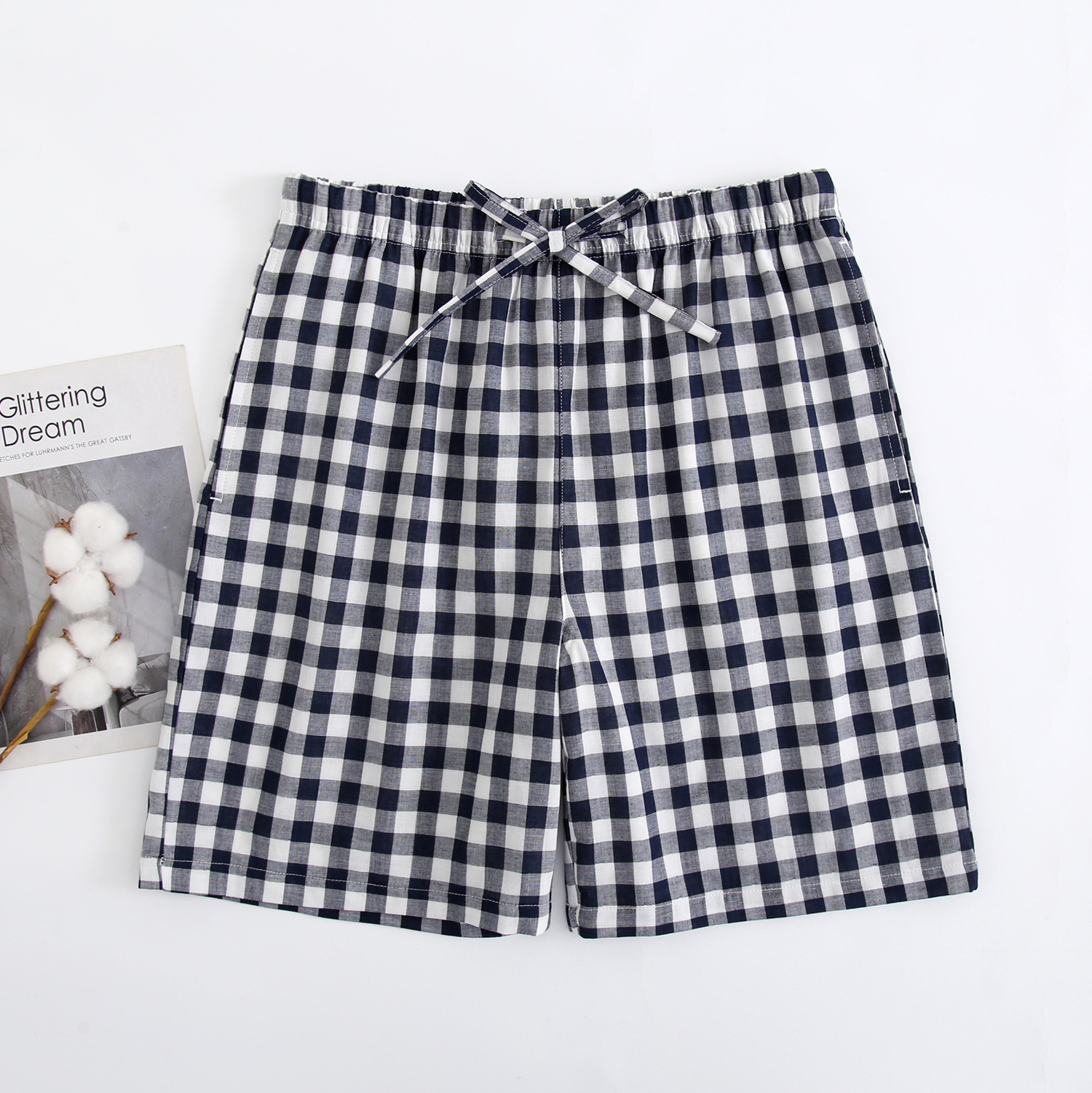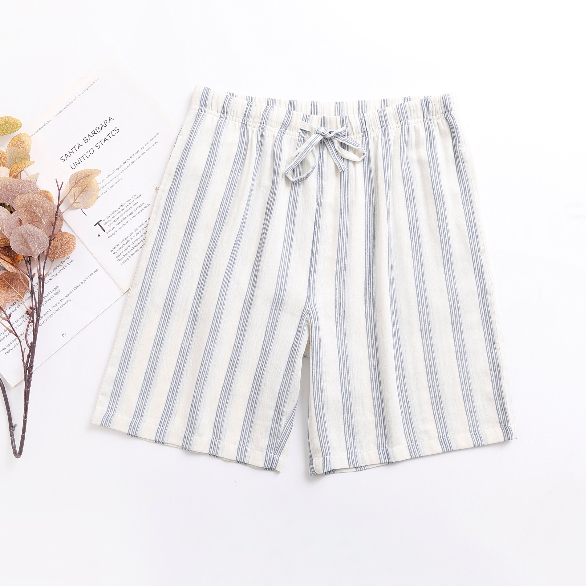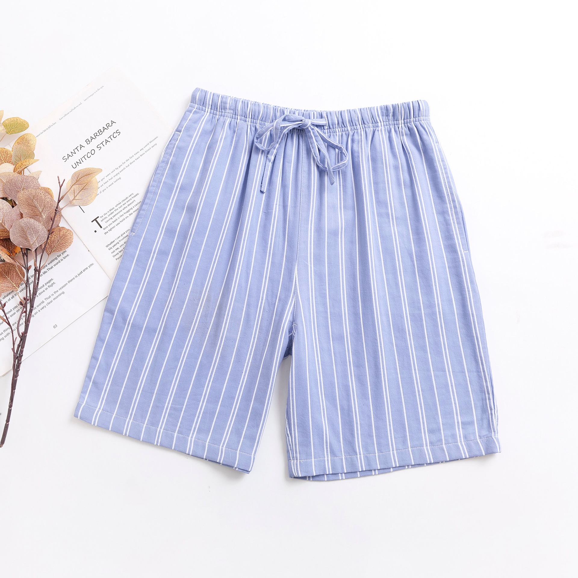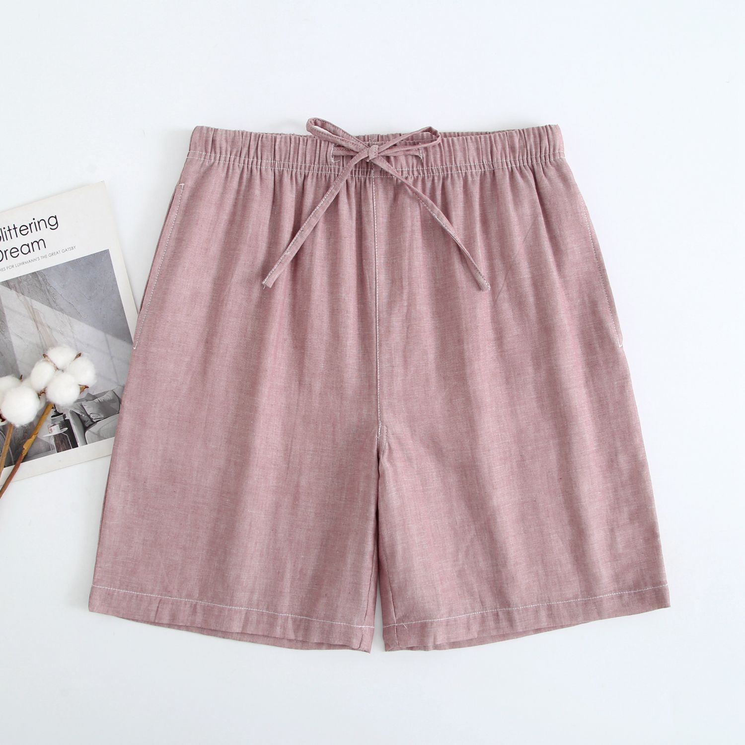 2024 새로운 봄과 여름 남자 반바지 얇은 면 파자마 바지 플러스 사이즈 느슨한 더블 거즈 통기성 홈 바지 에어컨