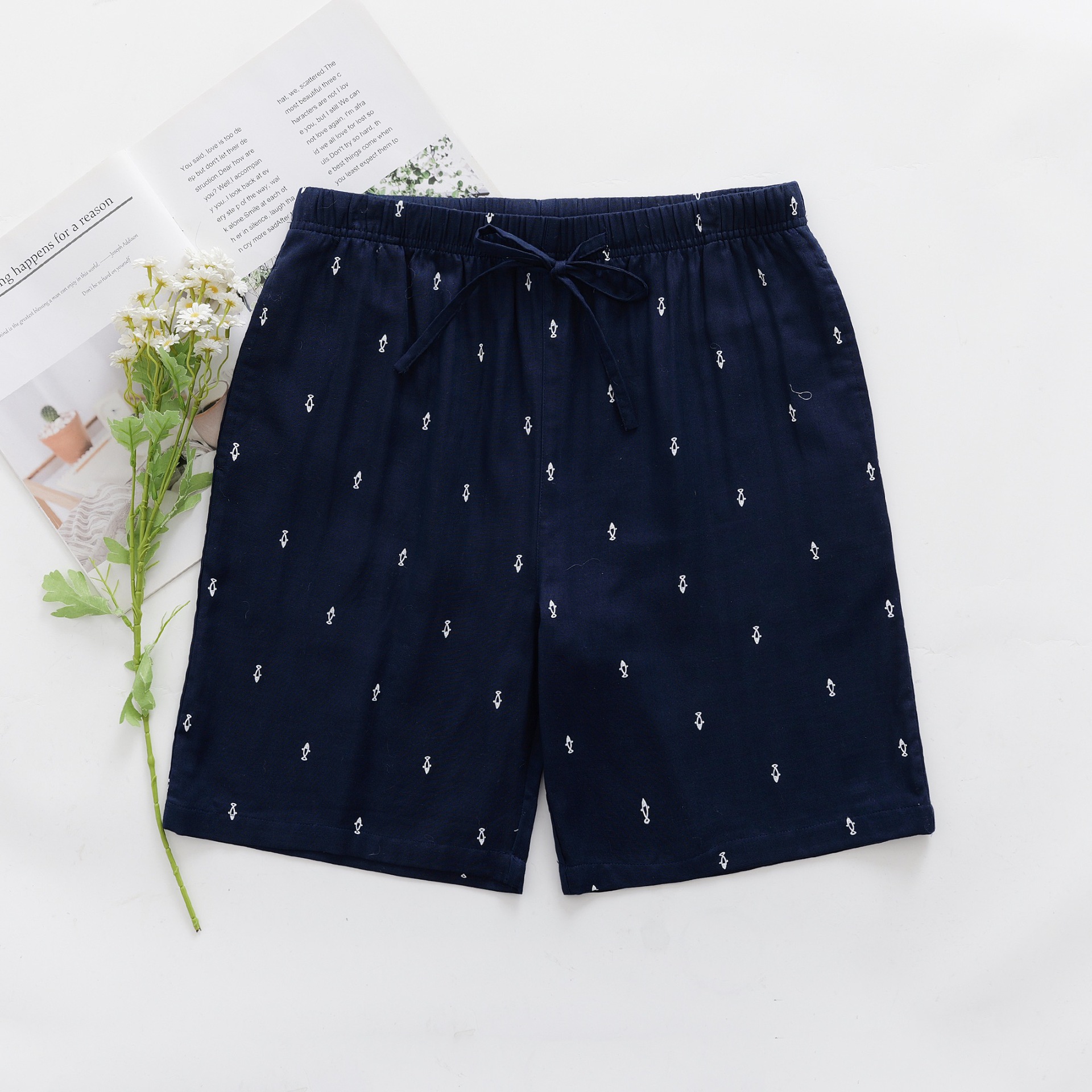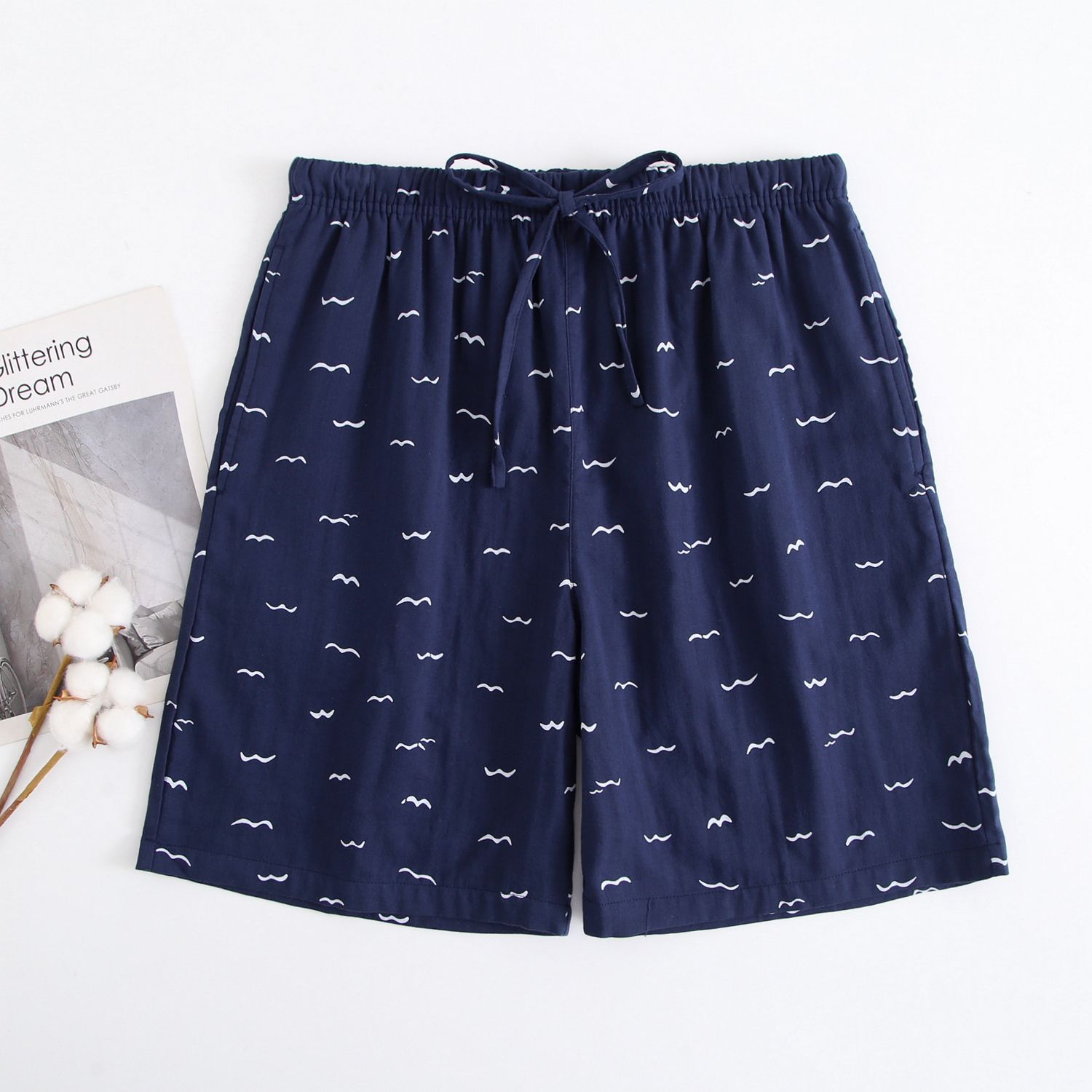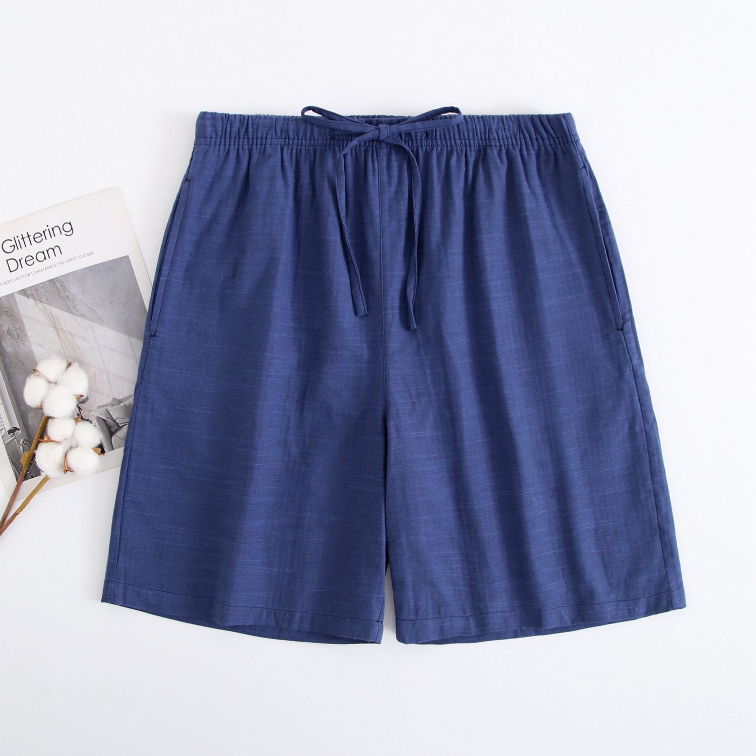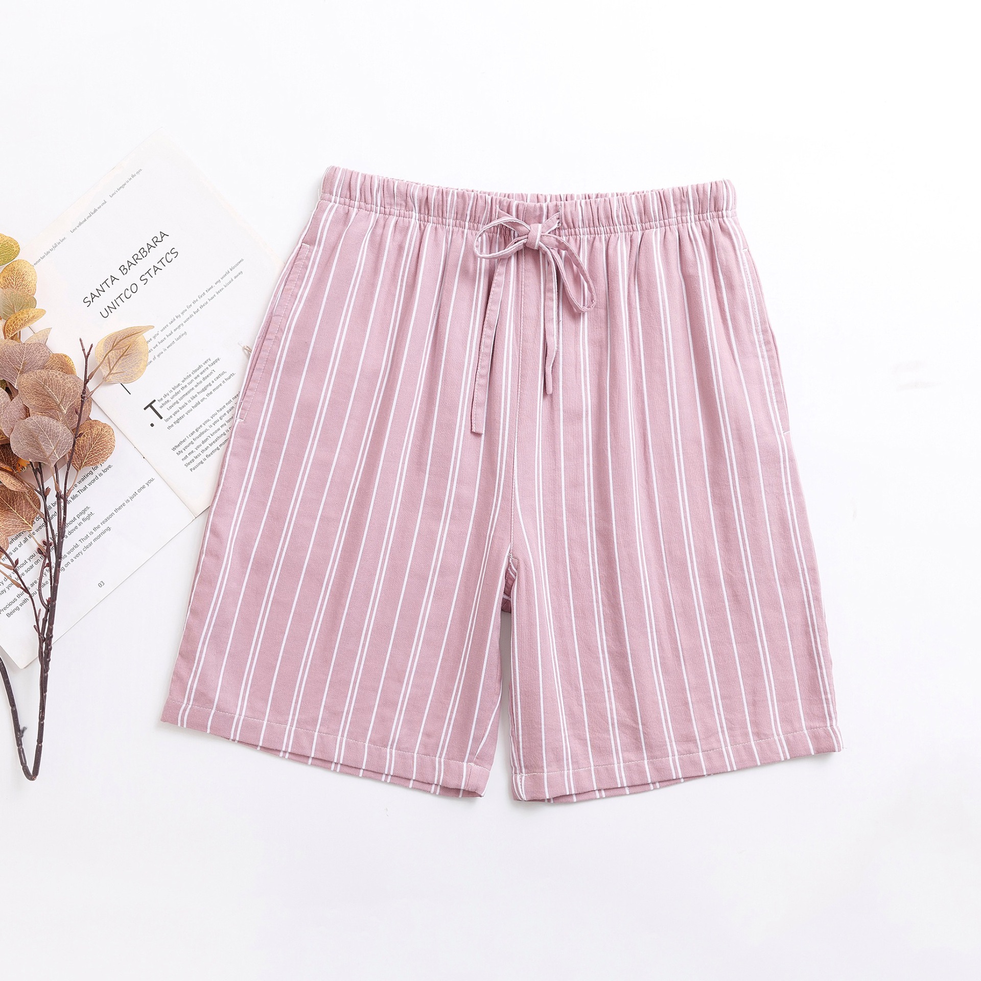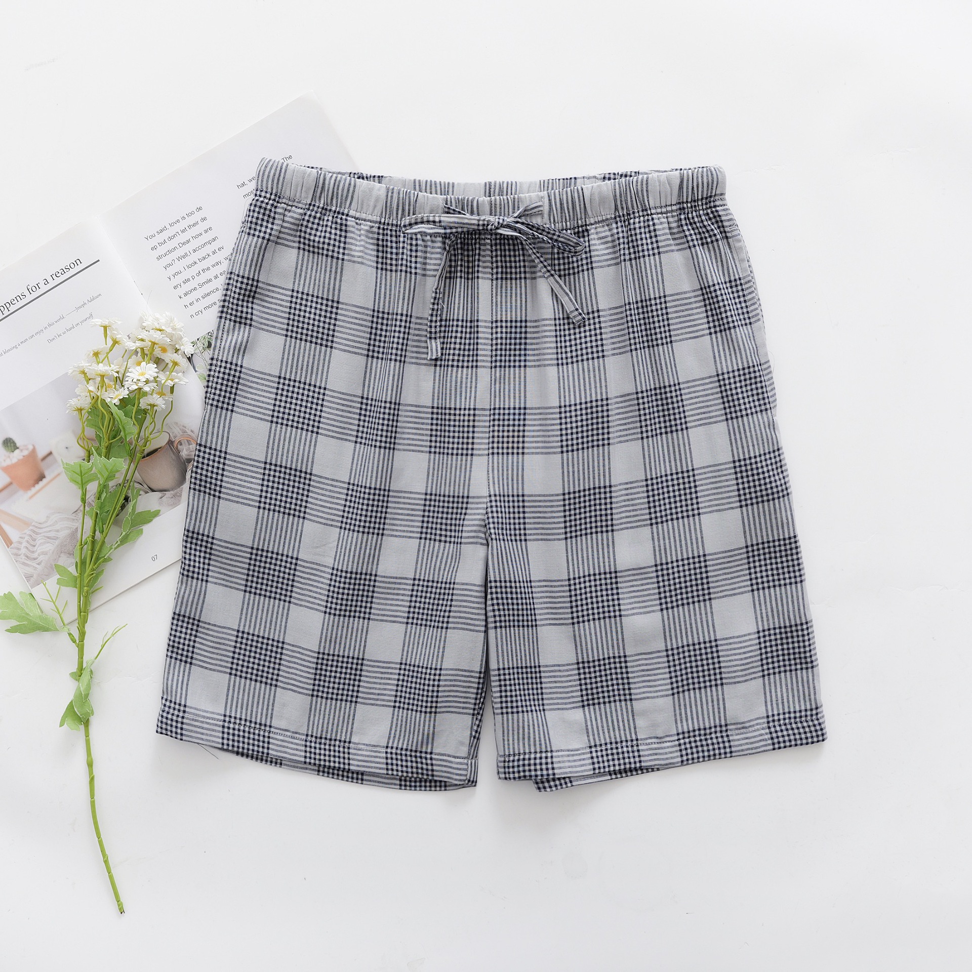 2024 새로운 봄과 여름 남자 반바지 얇은 면 파자마 바지 플러스 사이즈 느슨한 더블 거즈 통기성 홈 바지 에어컨