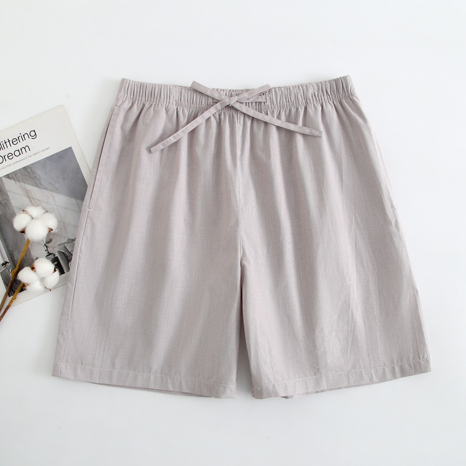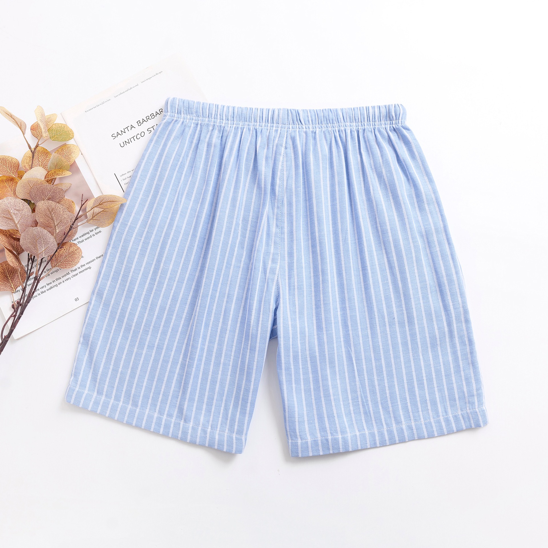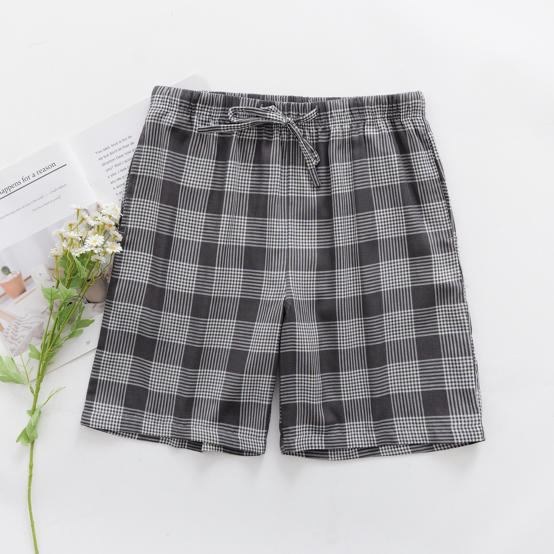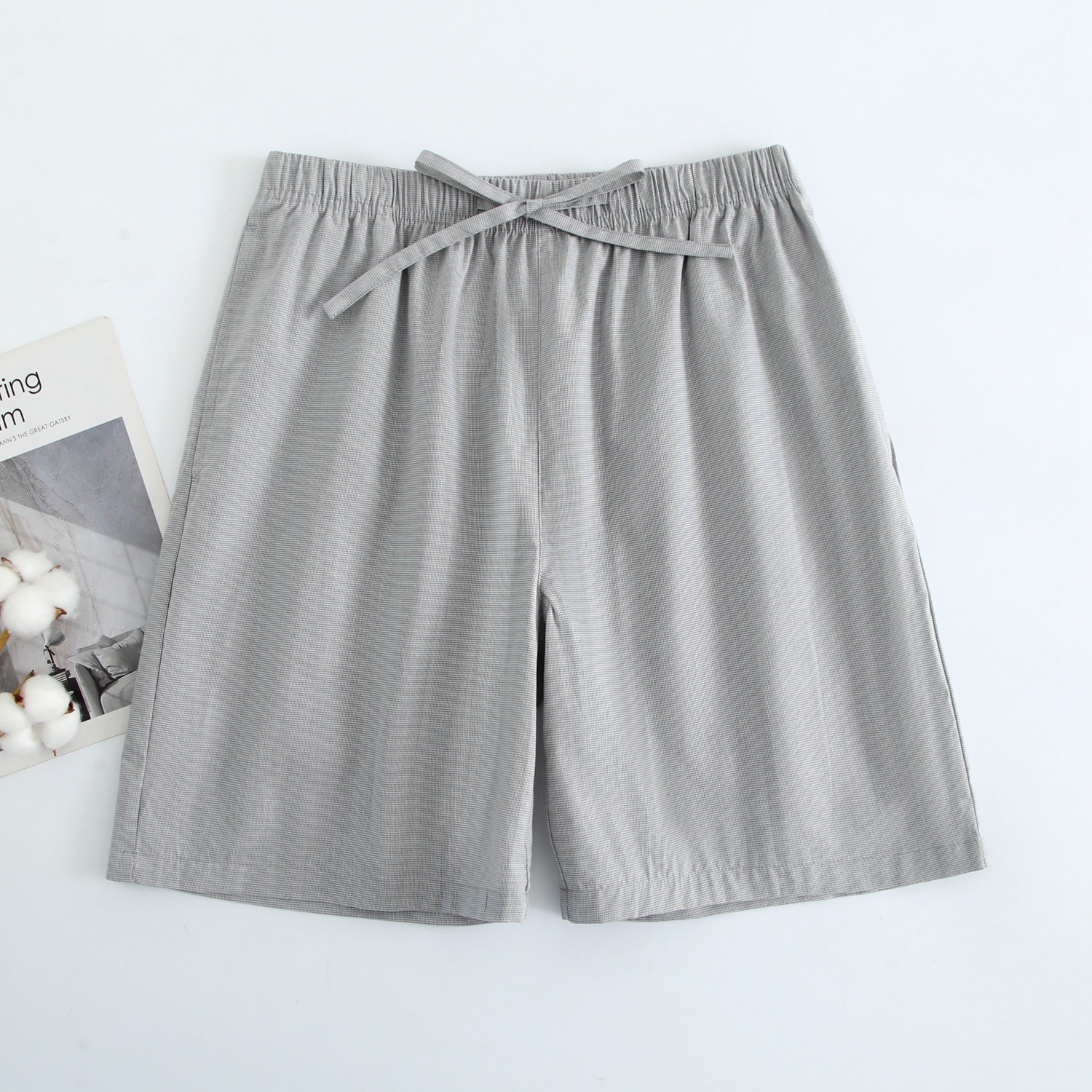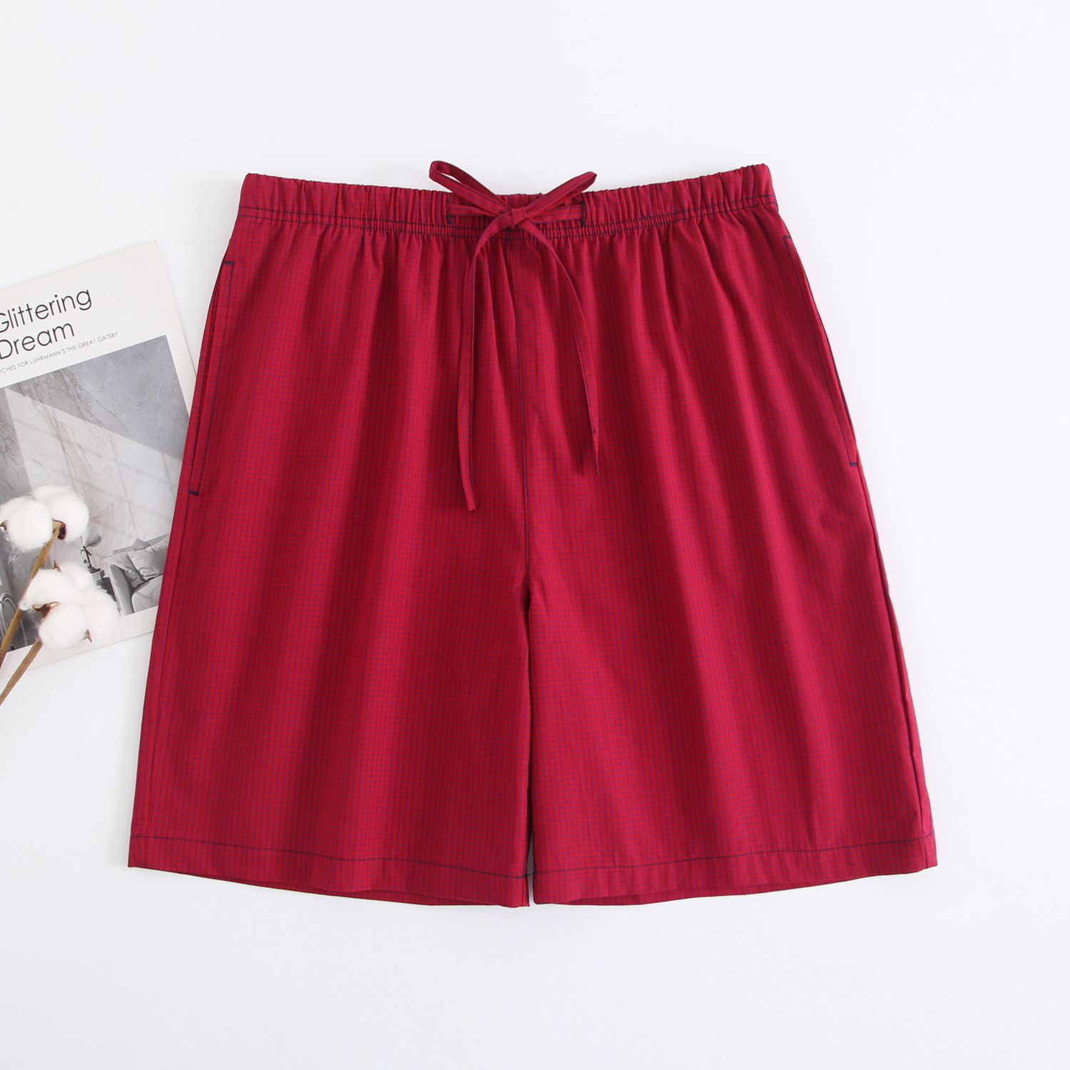 2024 새로운 봄과 여름 남자 반바지 얇은 면 파자마 바지 플러스 사이즈 느슨한 더블 거즈 통기성 홈 바지 에어컨