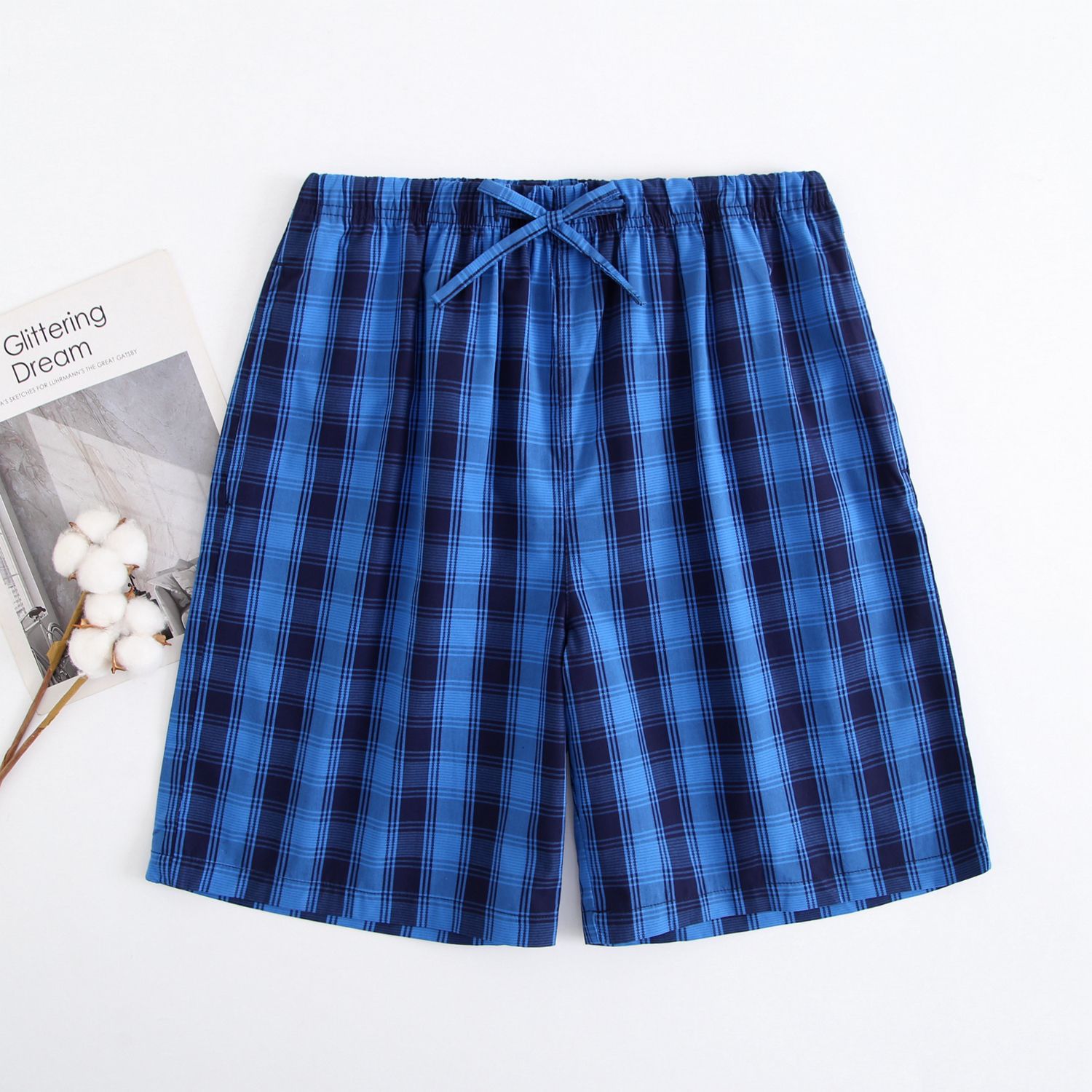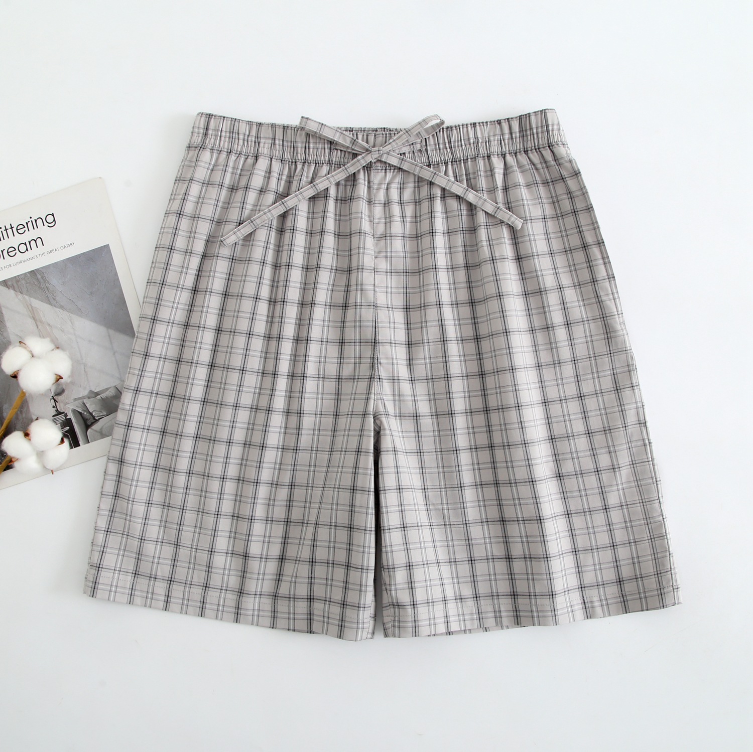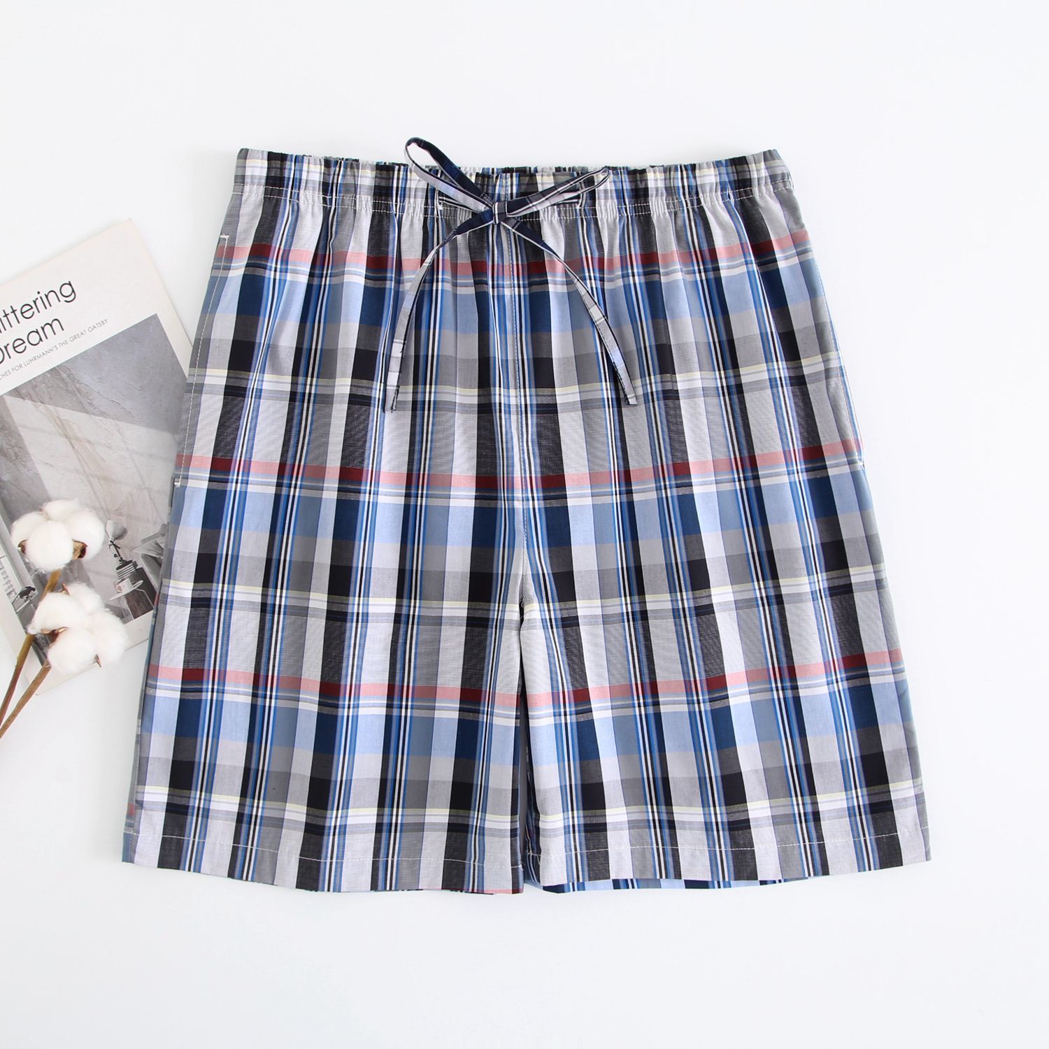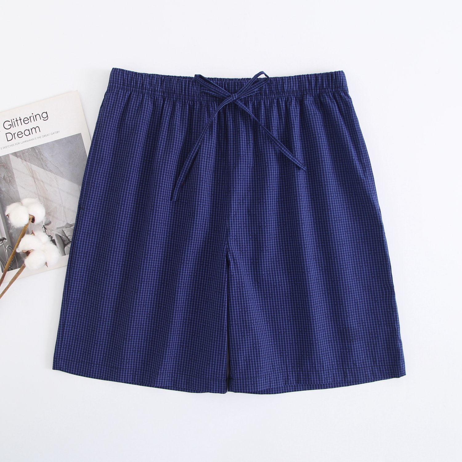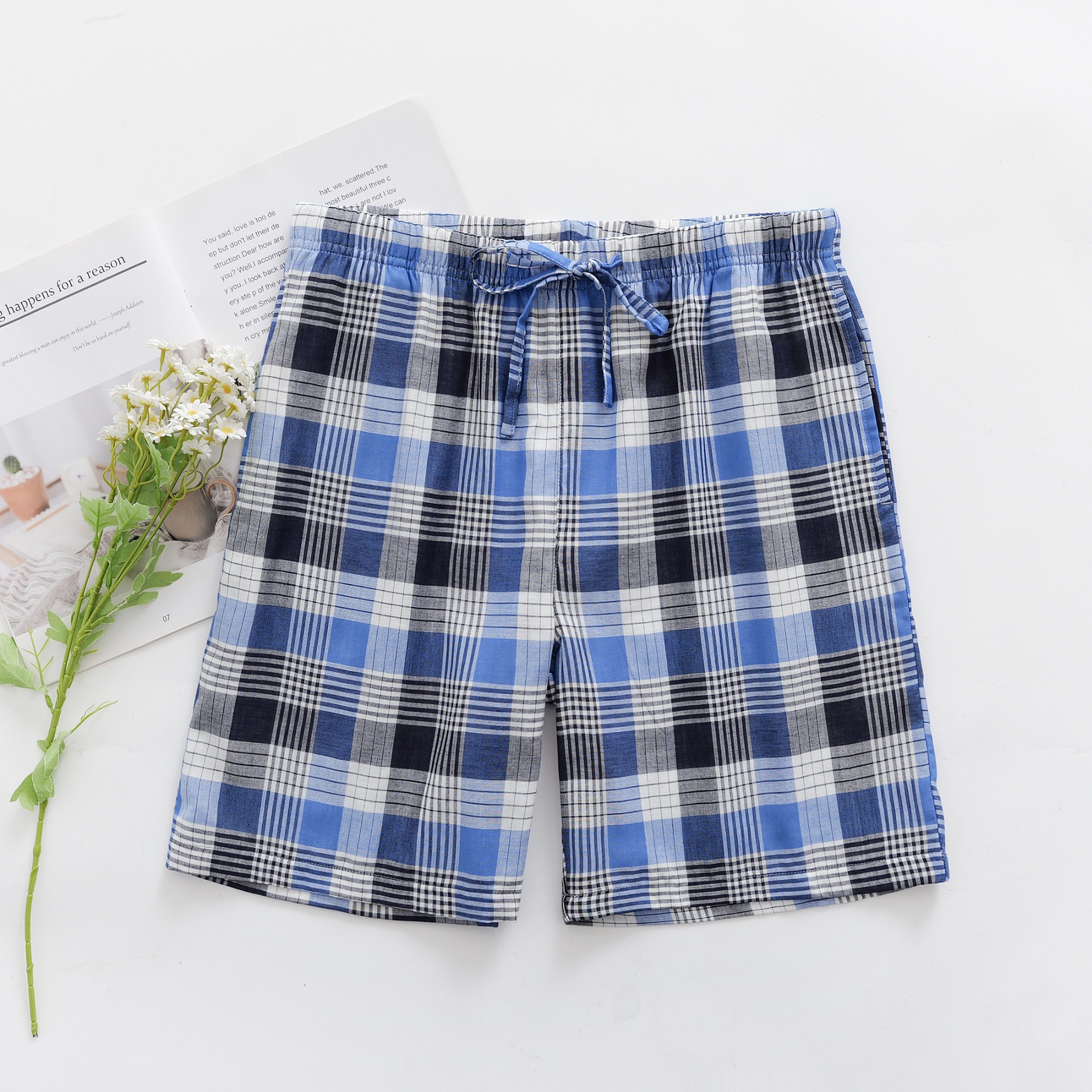 2024 새로운 봄과 여름 남자 반바지 얇은 면 파자마 바지 플러스 사이즈 느슨한 더블 거즈 통기성 홈 바지 에어컨