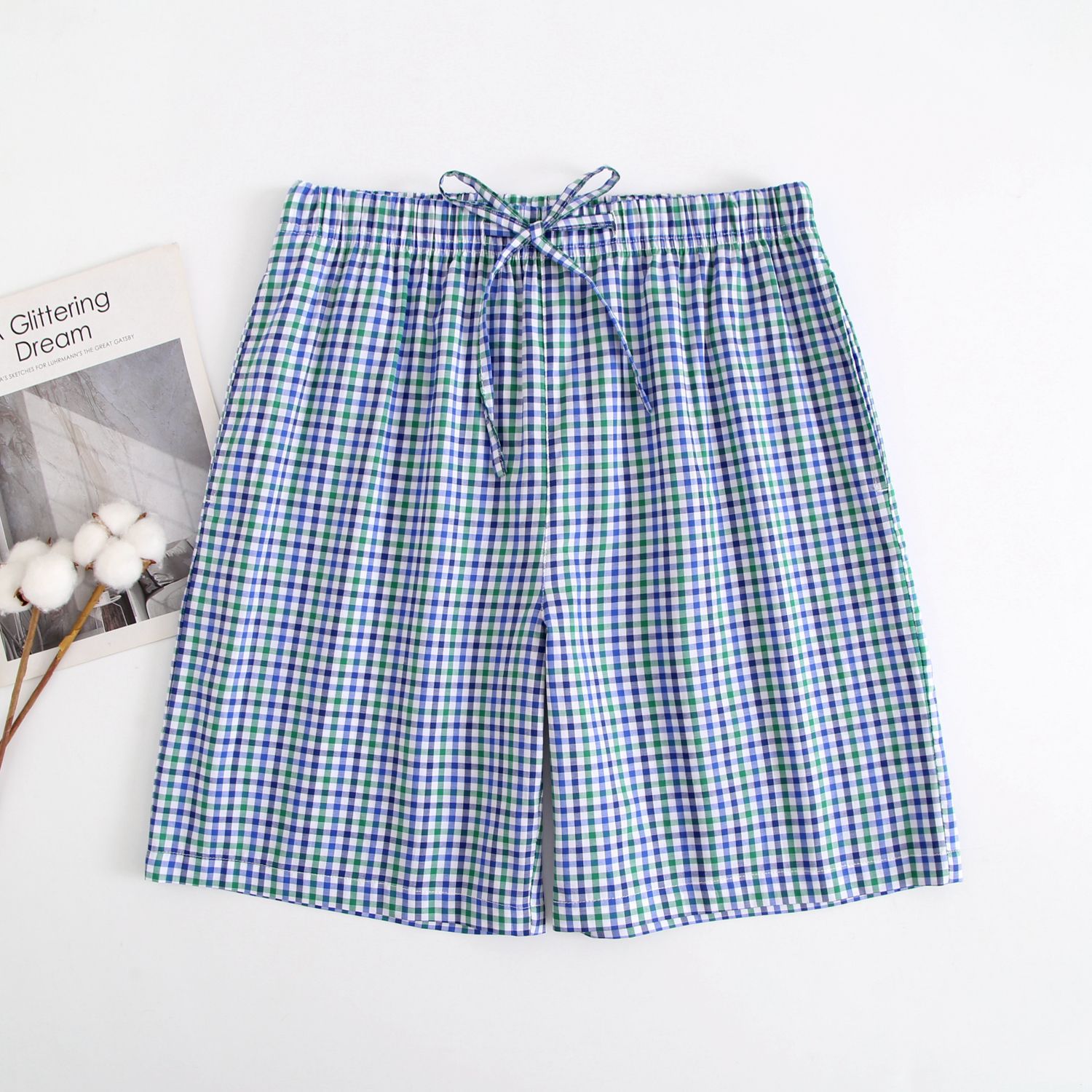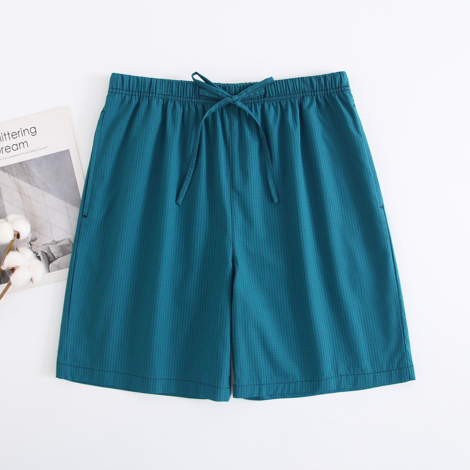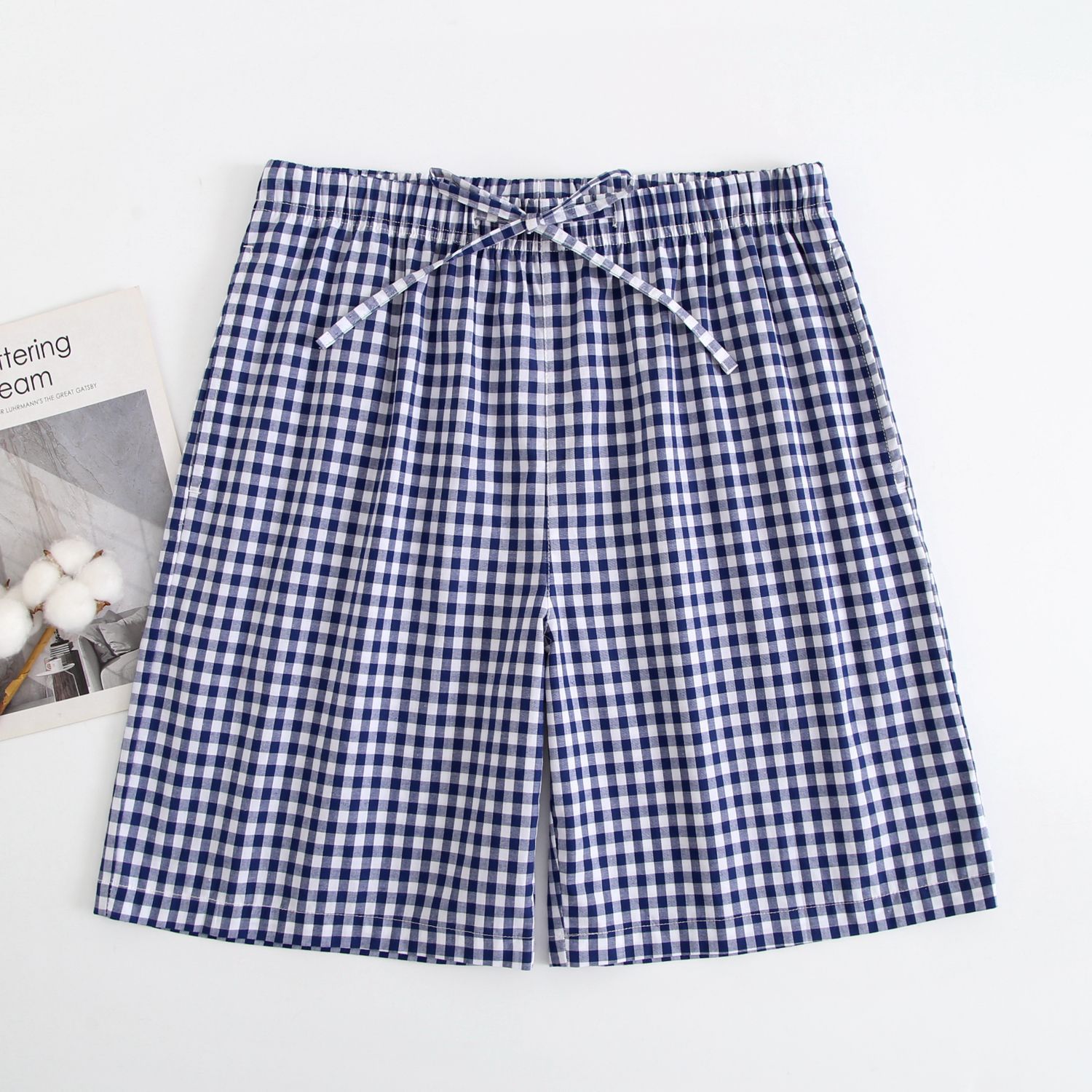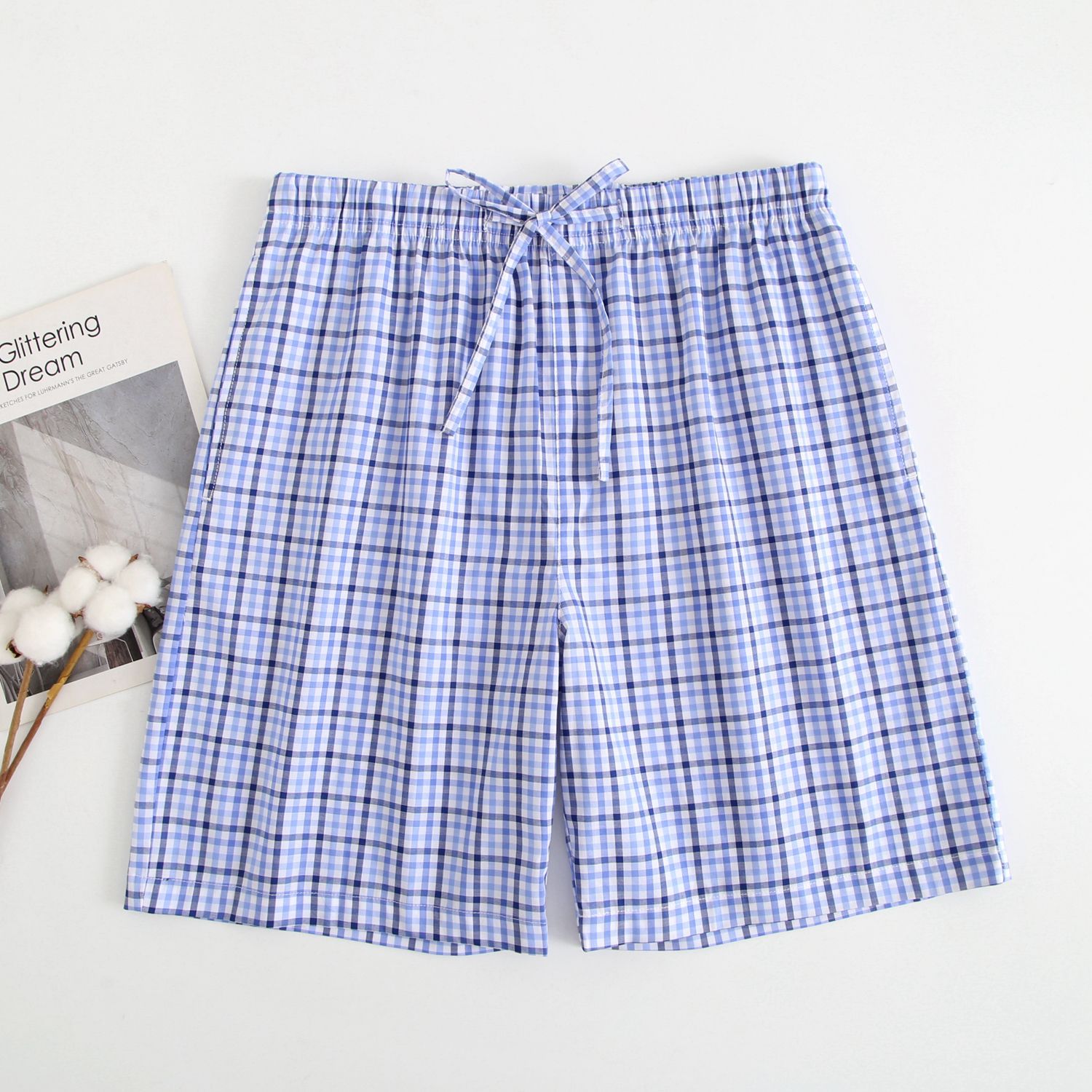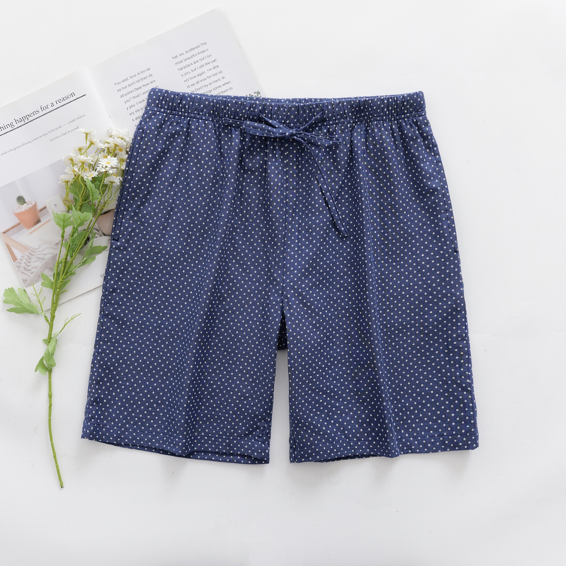 2024 새로운 봄과 여름 남자 반바지 얇은 면 파자마 바지 플러스 사이즈 느슨한 더블 거즈 통기성 홈 바지 에어컨