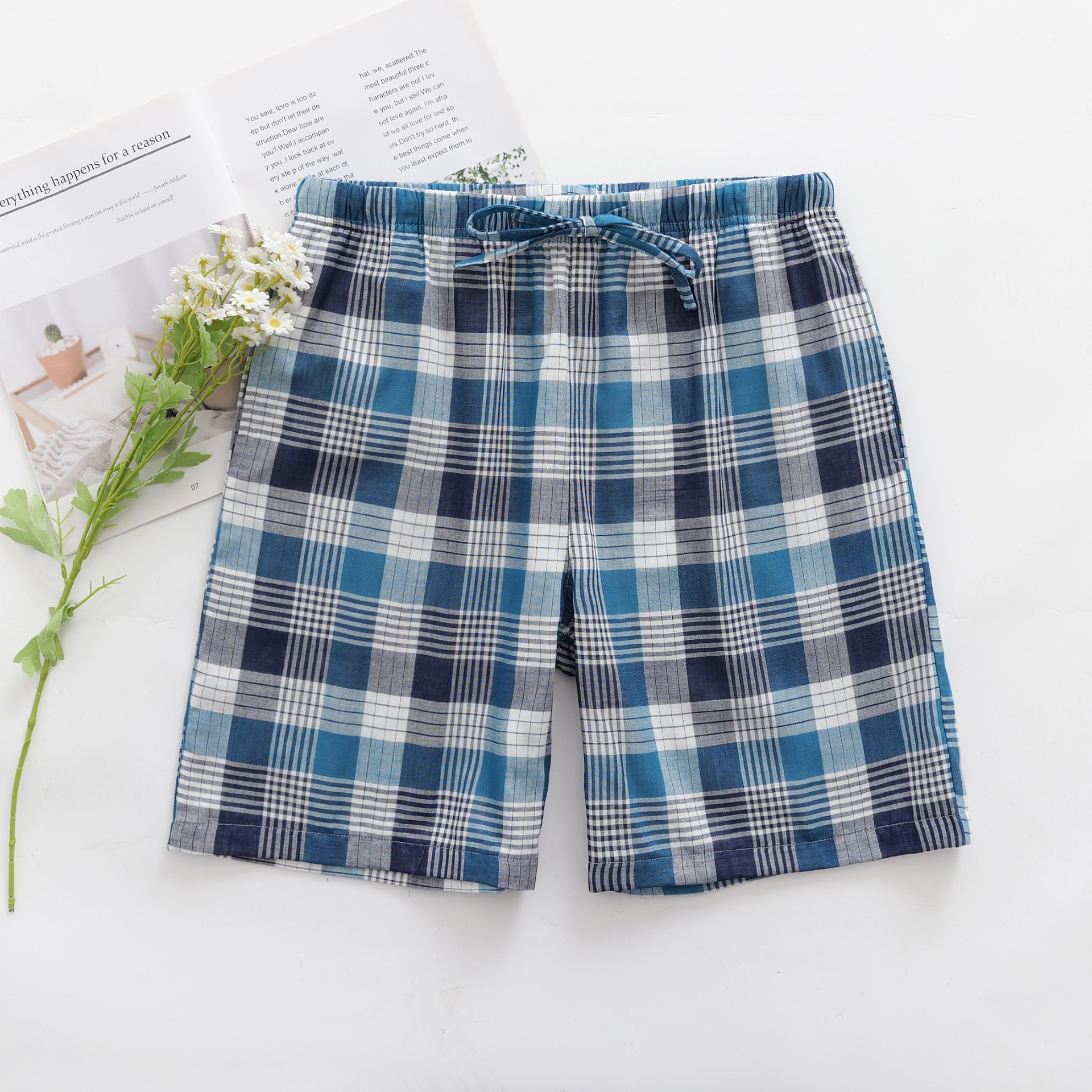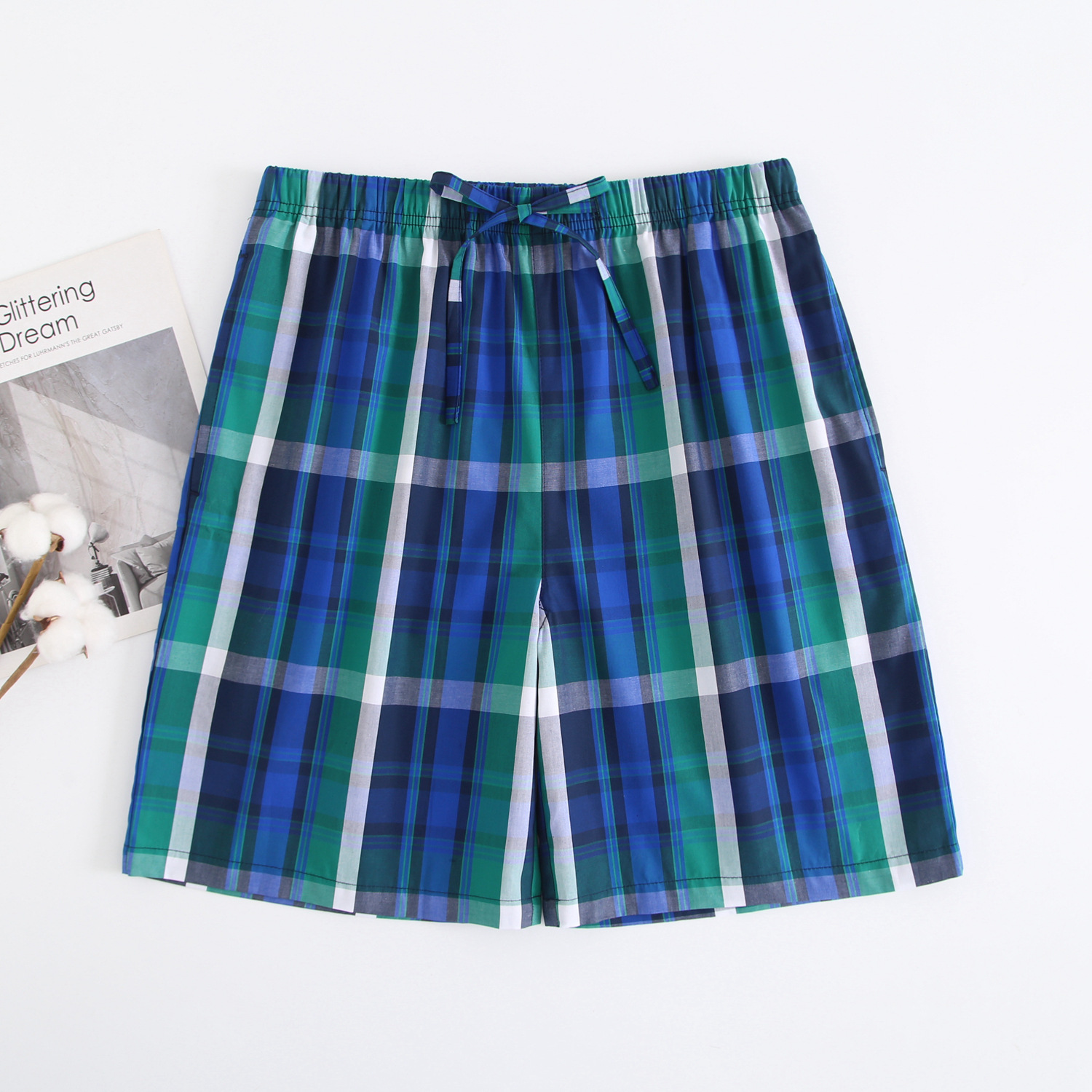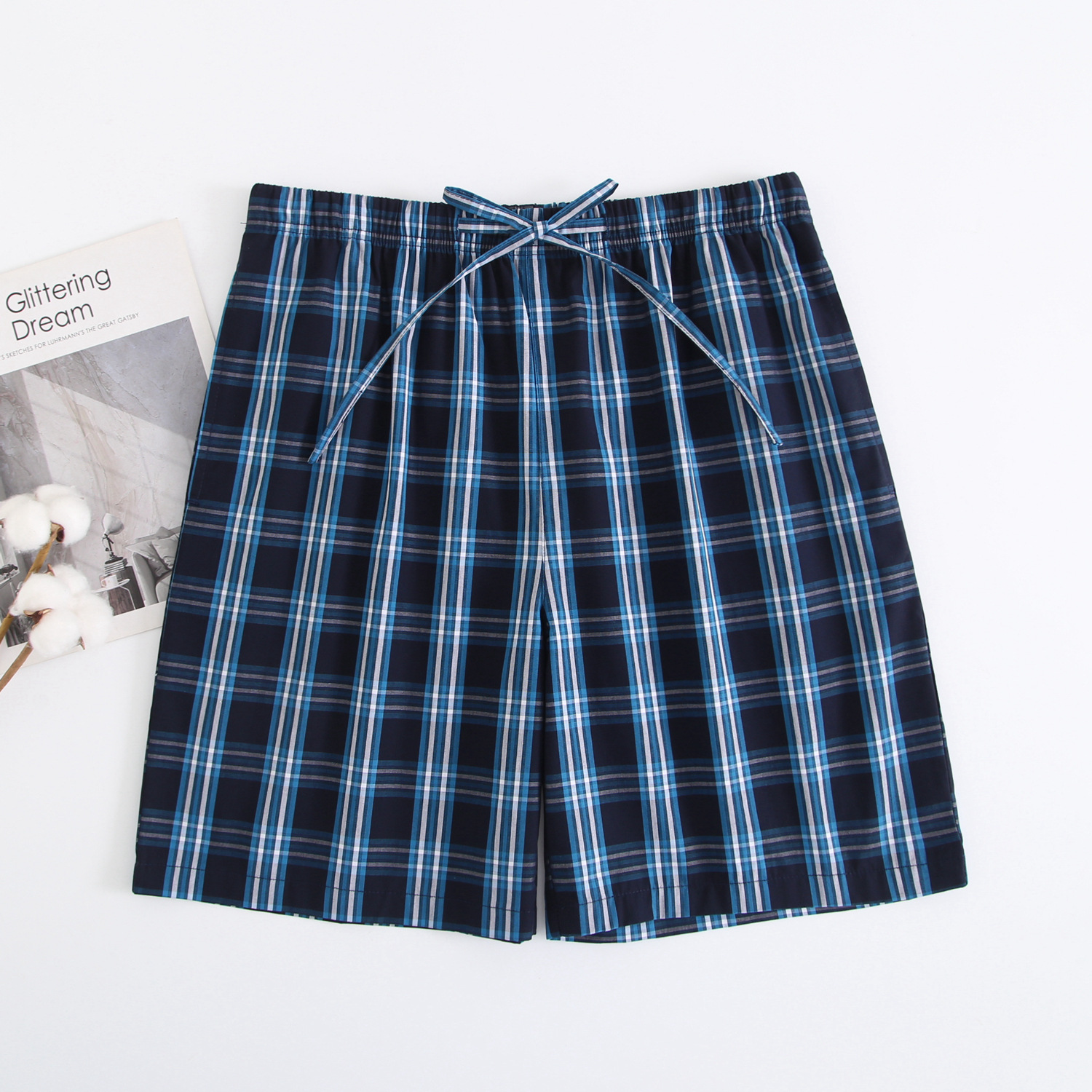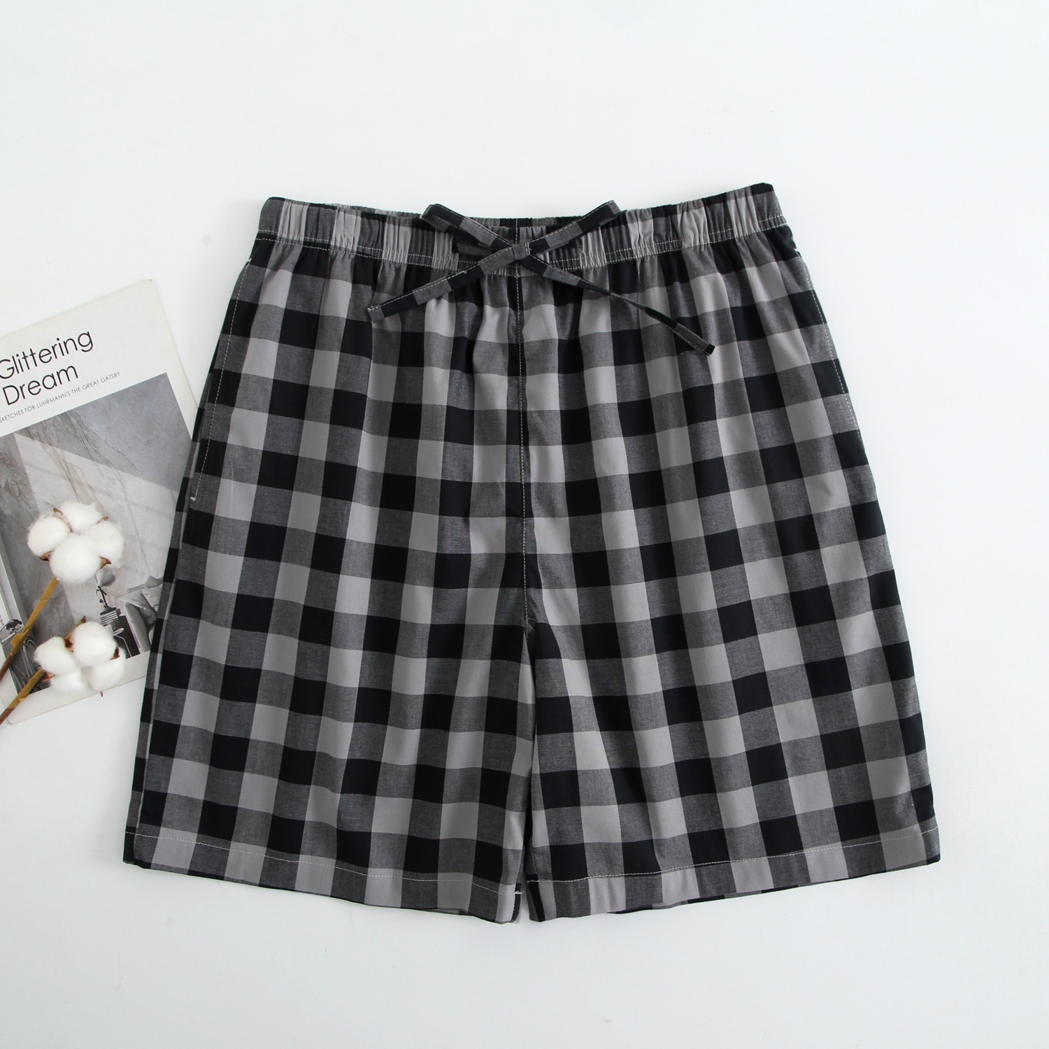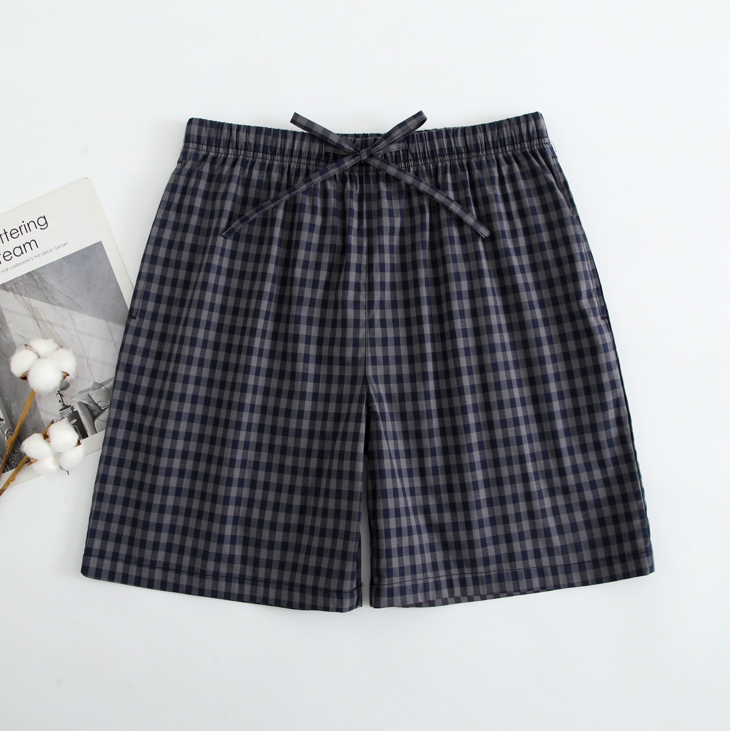 2024 새로운 봄과 여름 남자 반바지 얇은 면 파자마 바지 플러스 사이즈 느슨한 더블 거즈 통기성 홈 바지 에어컨