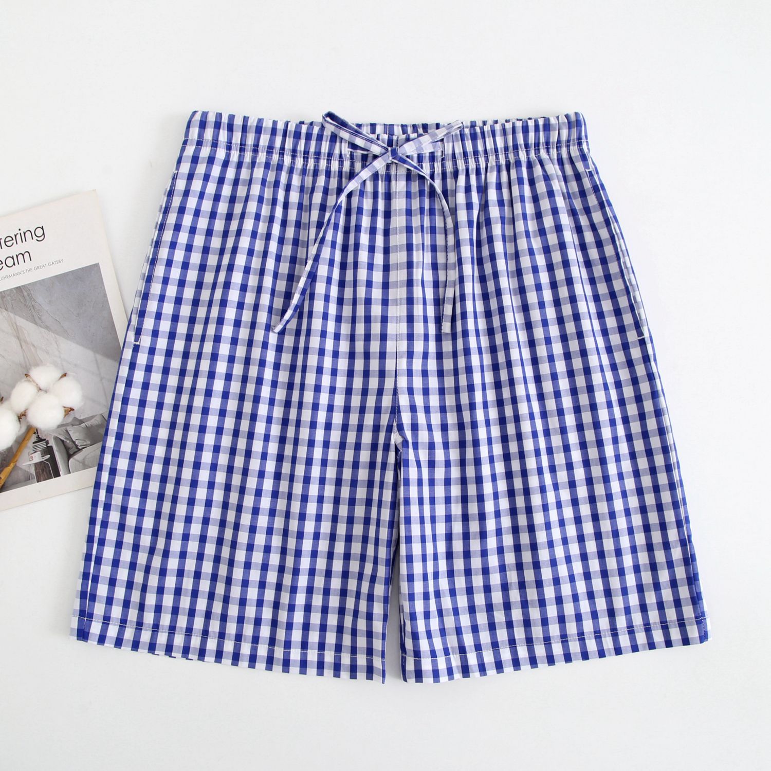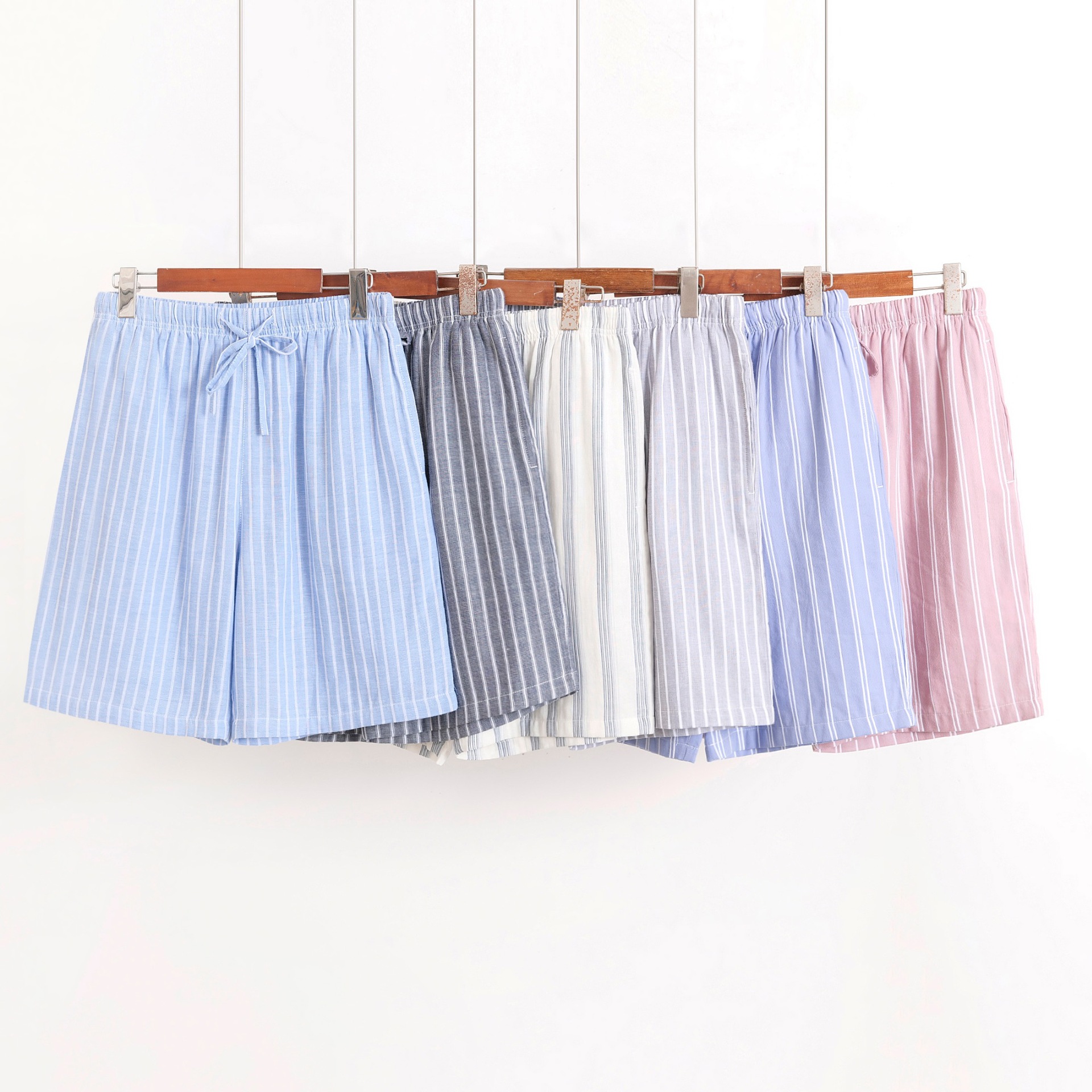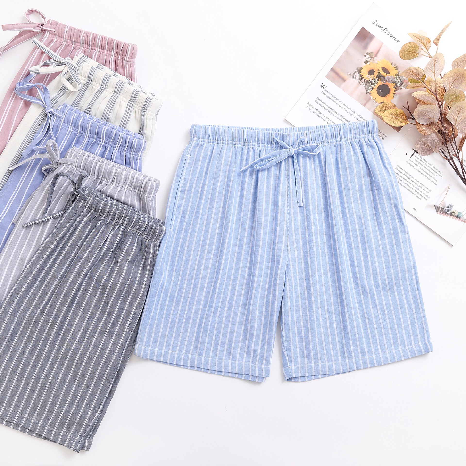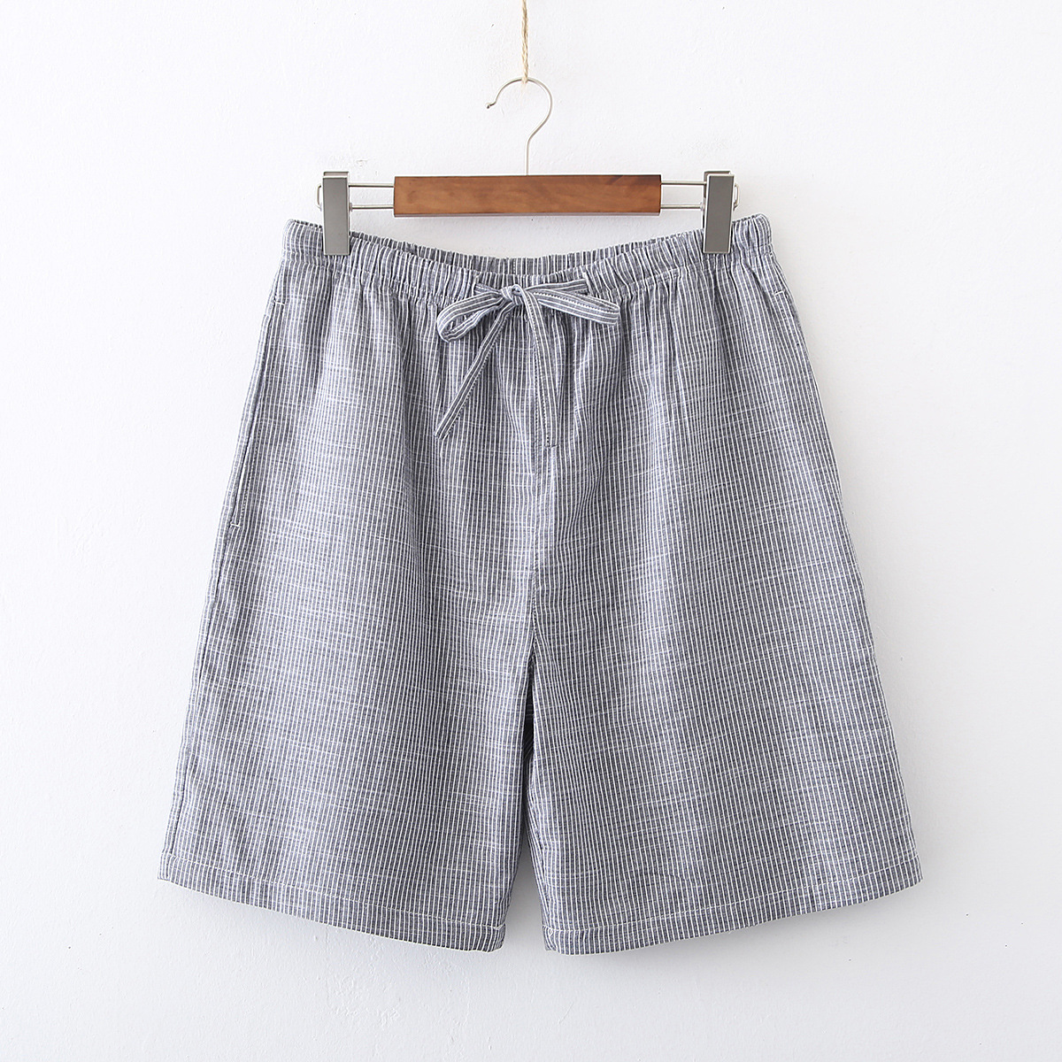 2024 새로운 봄과 여름 남자 반바지 얇은 면 파자마 바지 플러스 사이즈 느슨한 더블 거즈 통기성 홈 바지 에어컨스토어 가기