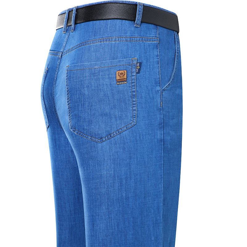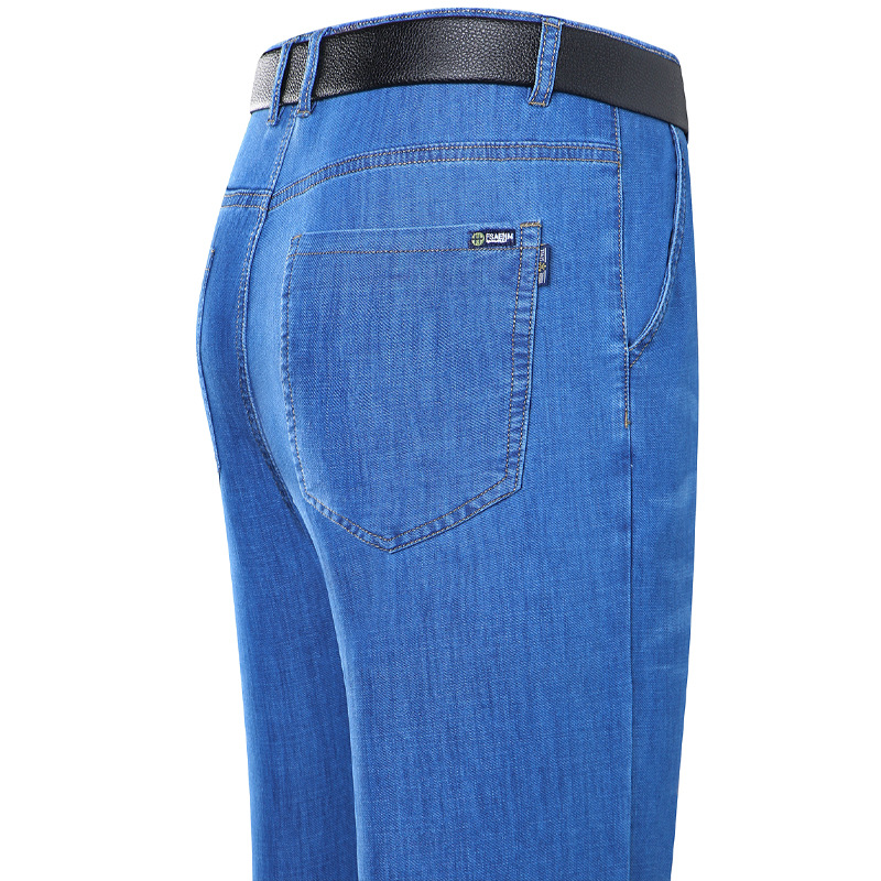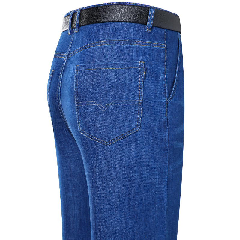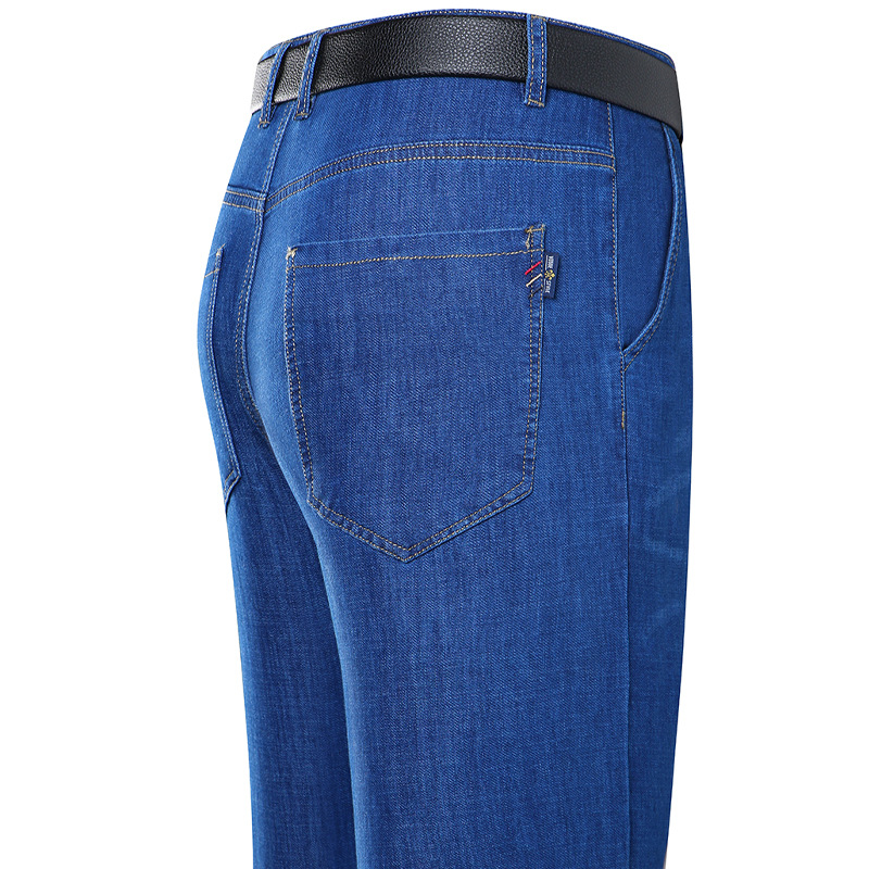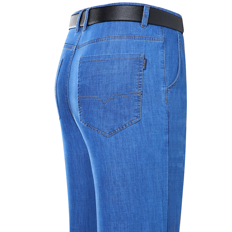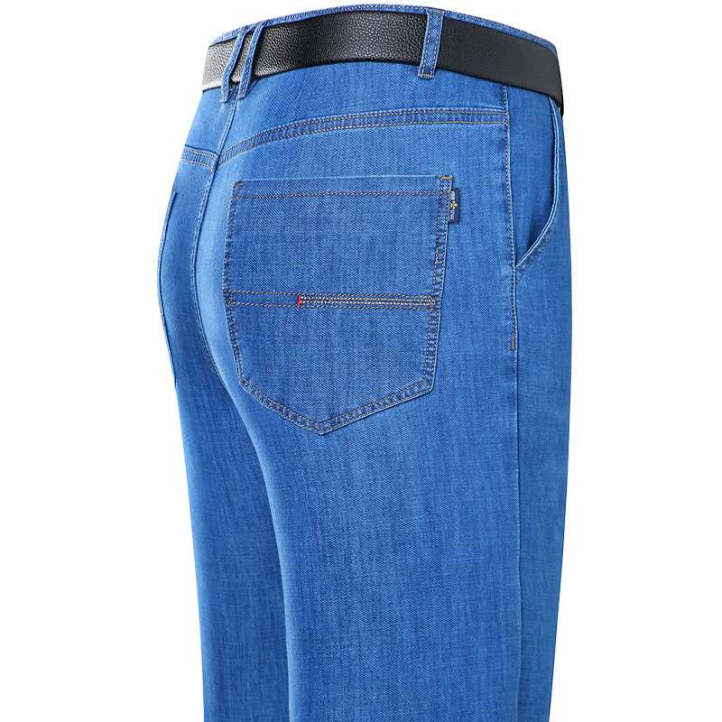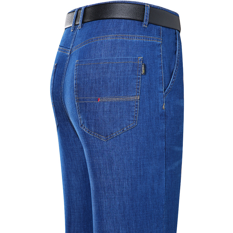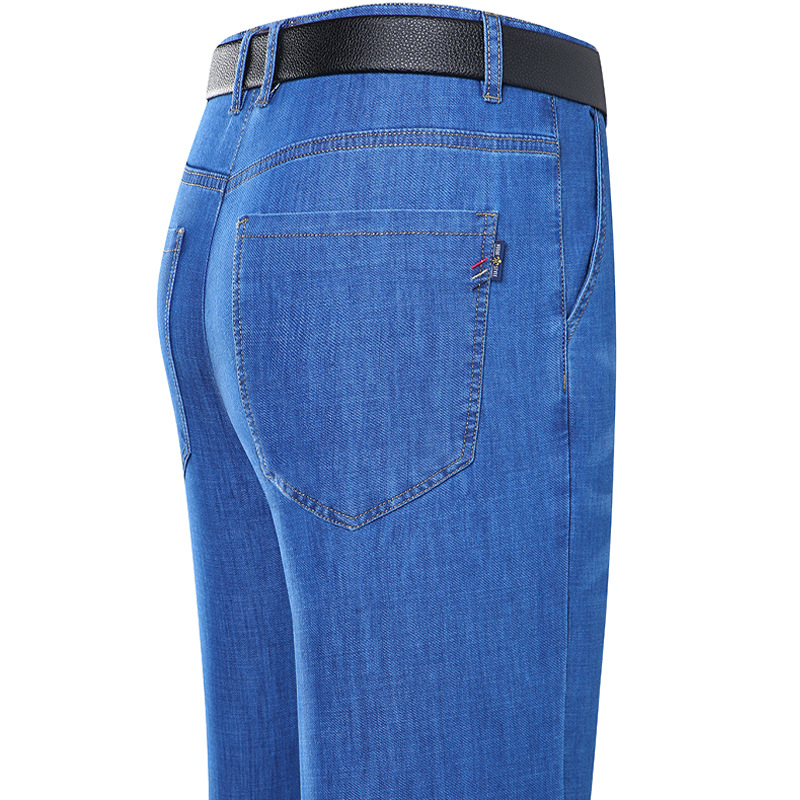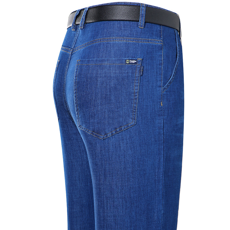 봄과 여름 얇은 남성용 스트레치 진 중년 하이 스트레치 비즈니스 캐주얼 스트레이트 루즈한 바지 청바지스토어 가기