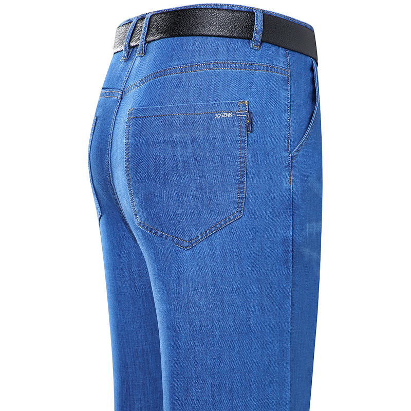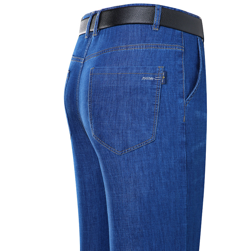 봄과 여름 얇은 남성용 스트레치 진 중년 하이 스트레치 비즈니스 캐주얼 스트레이트 루즈한 바지 청바지