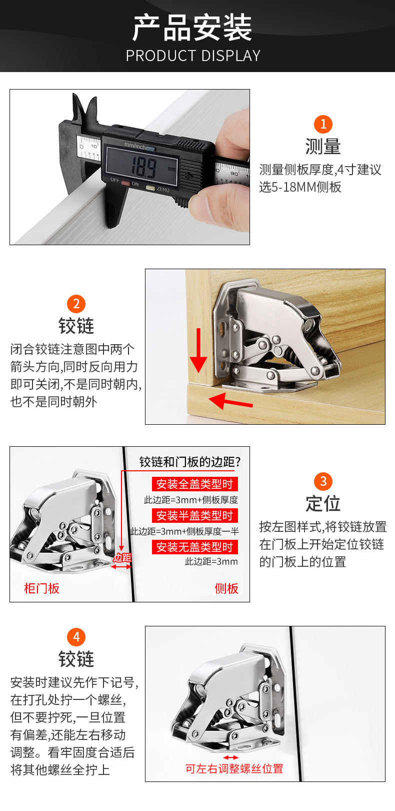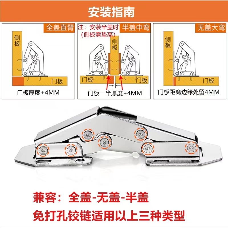 비 슬롯 캐비닛 도어 하드웨어 접이식 비 천공 옷장 도어 힌지 스프링 캐비닛 캐비닛 힌지