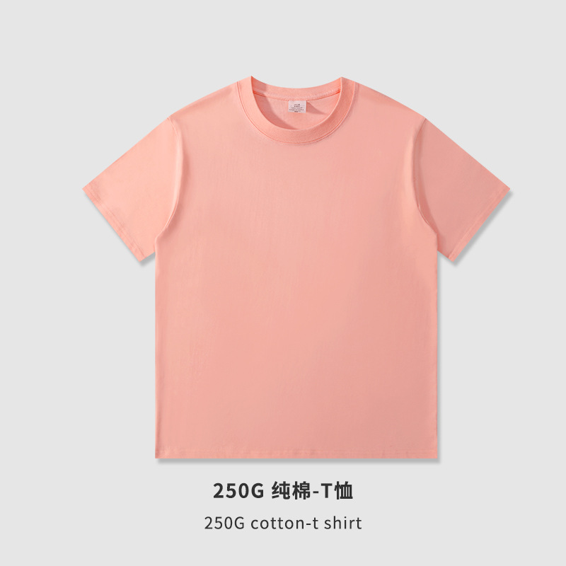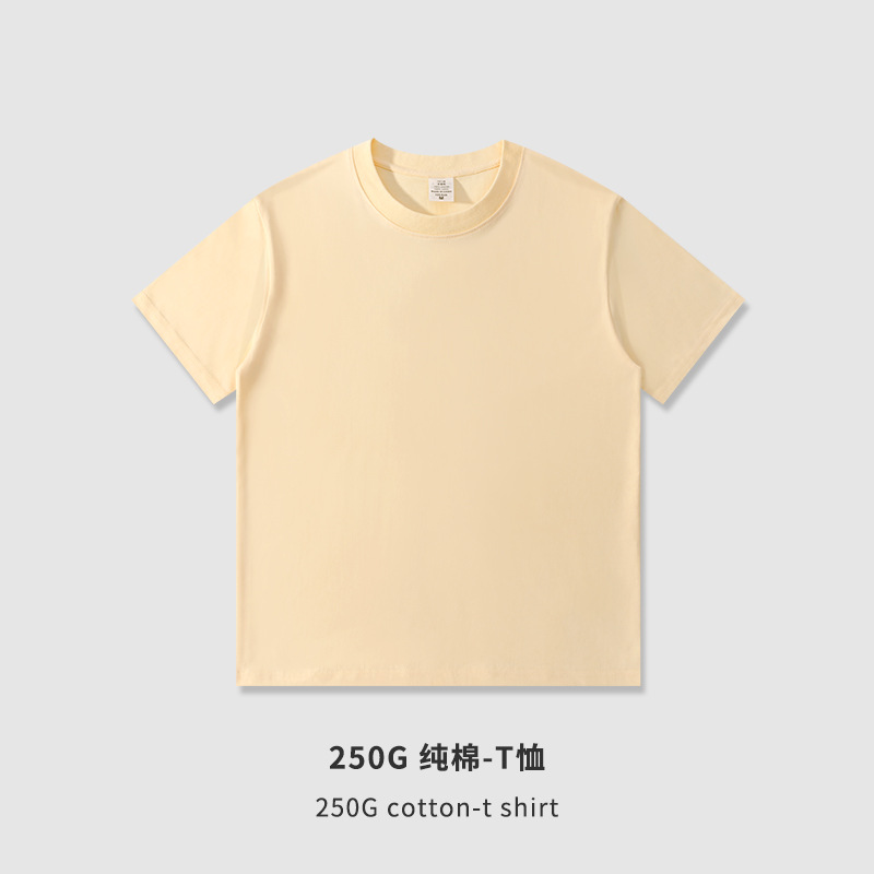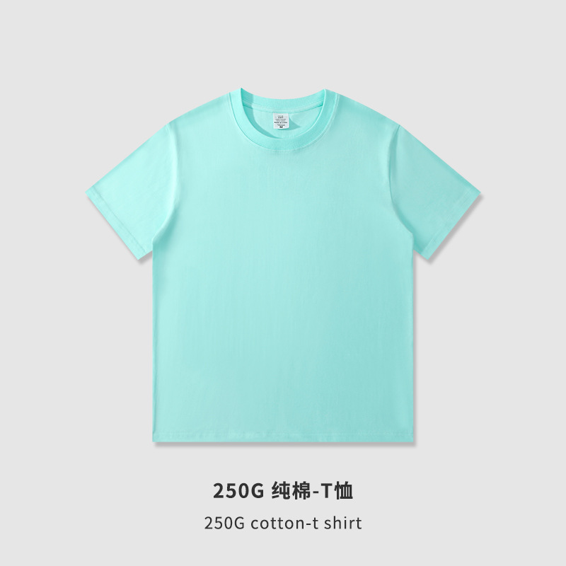 여름 남자 230g250g 무거운면 짧은 소매 둥근 목 티셔츠 조수 느슨한 단색 티셔츠 광고 셔츠 사용자 정의스토어 가기