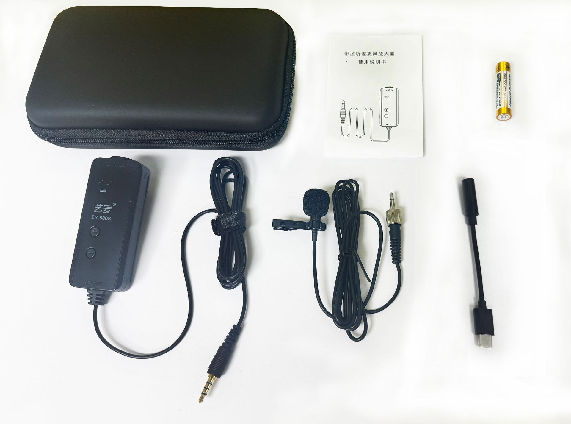 标配:麦克风+放大器+电池+说明书+盒子