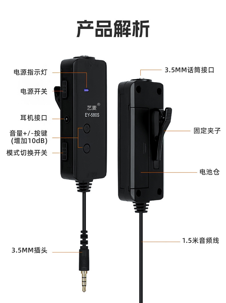 标配+苹果转接线:麦克风+放大器+苹果转接线+电池+说明书+盒子