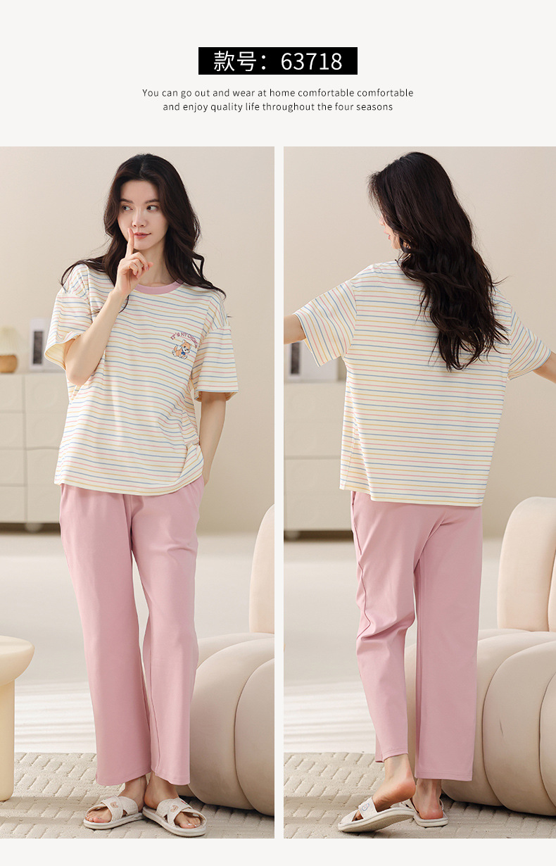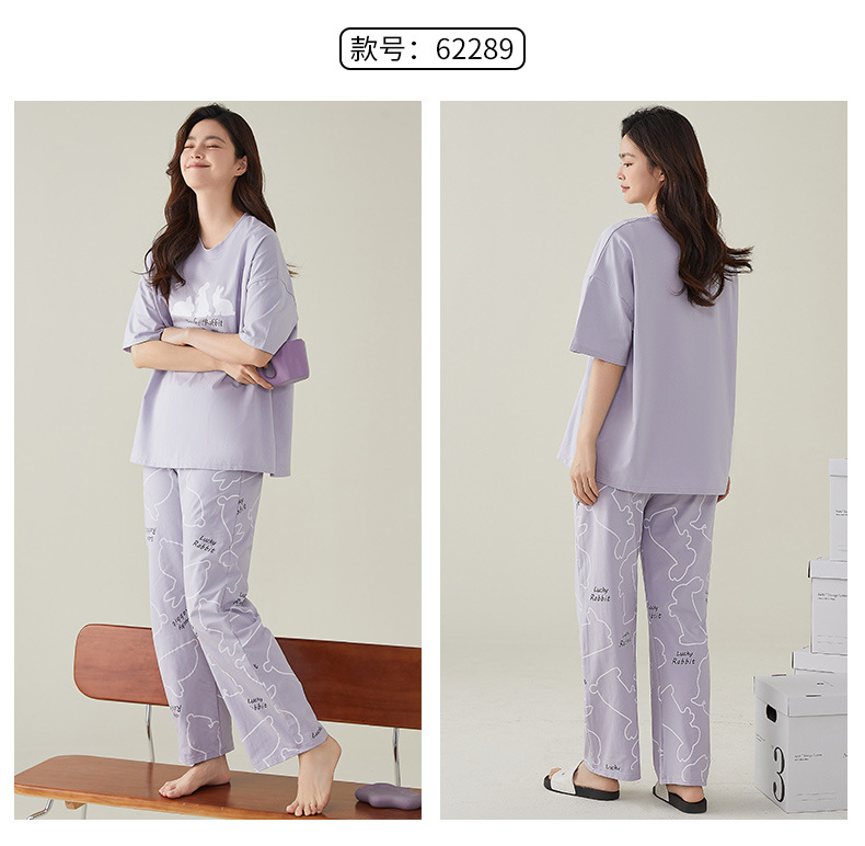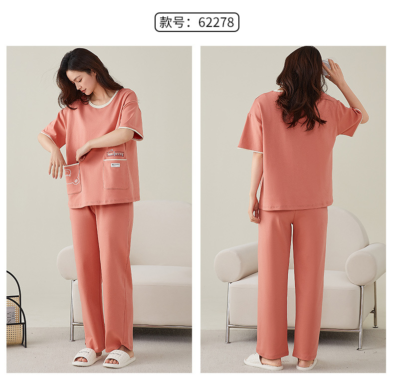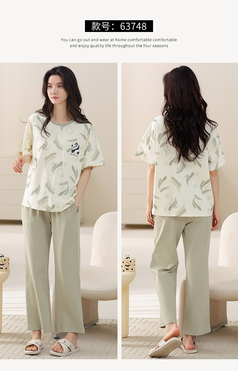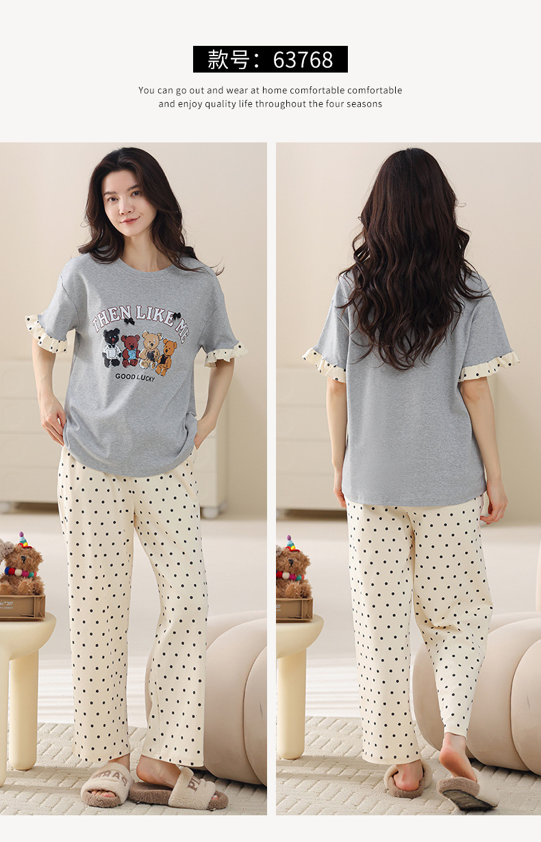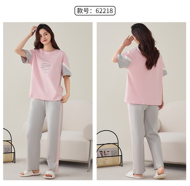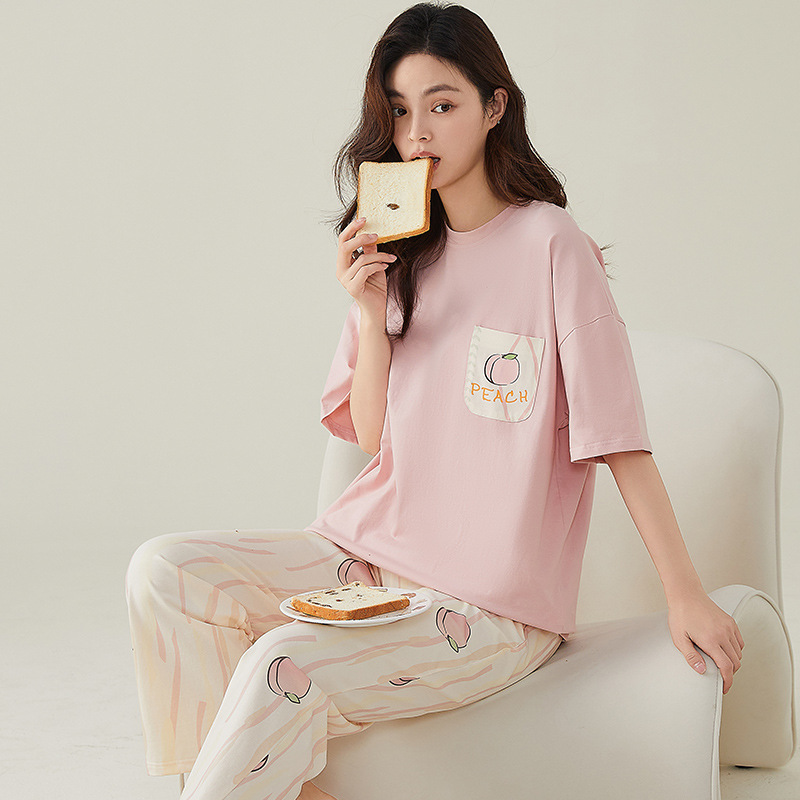 여성용 여름 잠옷 100% 순면 반팔 긴바지 세트 체크무늬 여성 홈웨어 얇고 외출 가능 전원풍스토어 가기