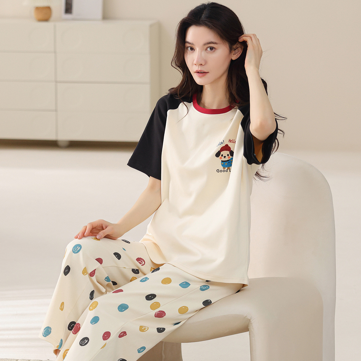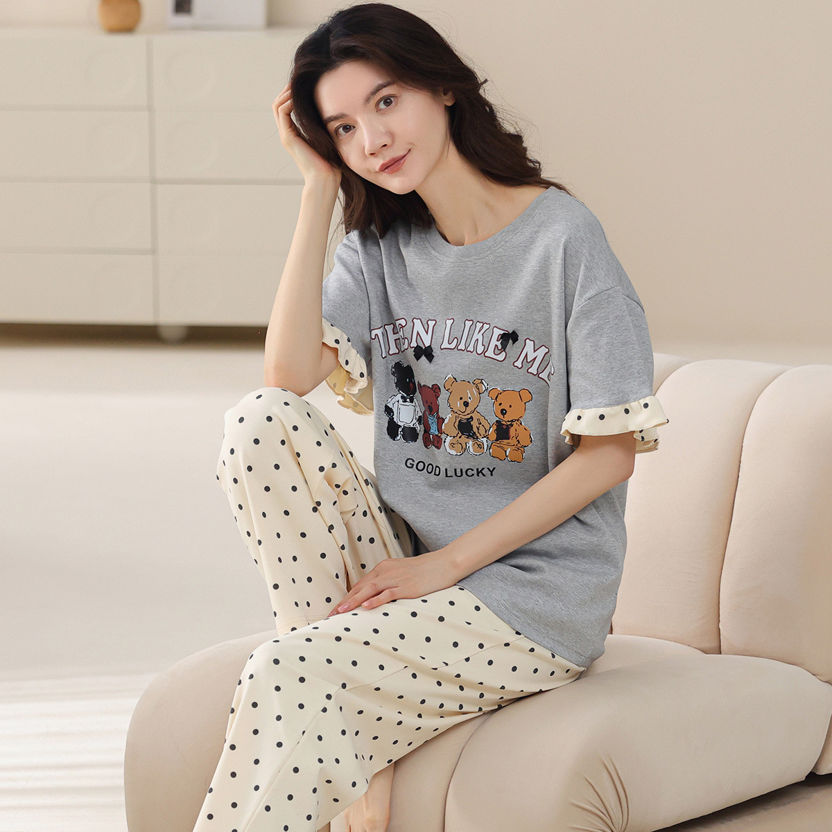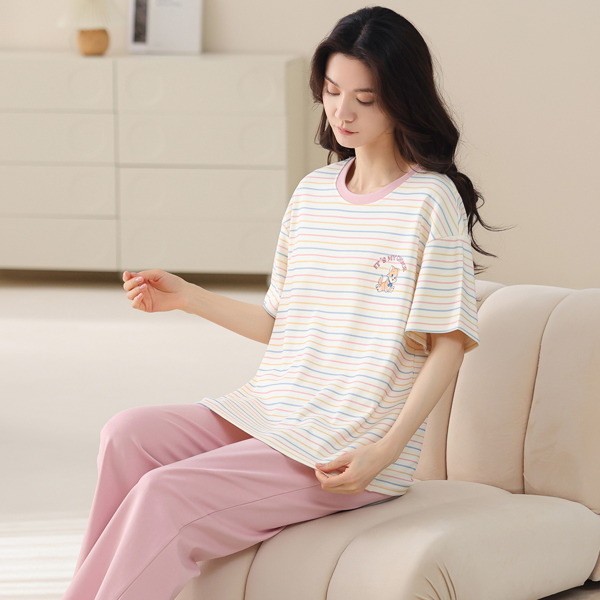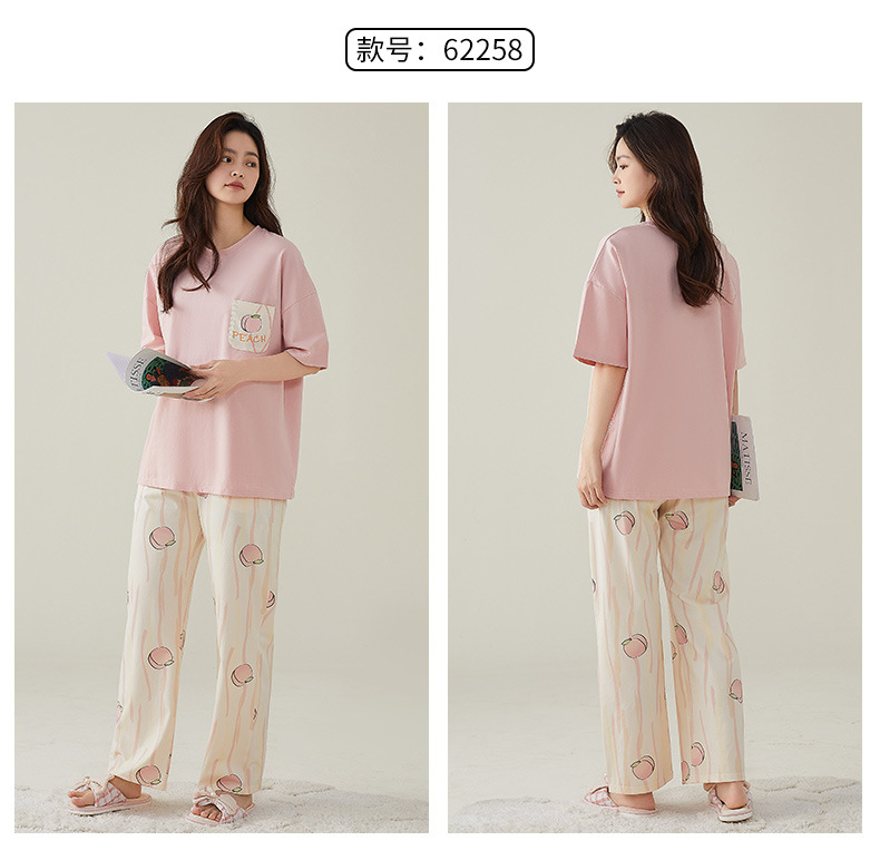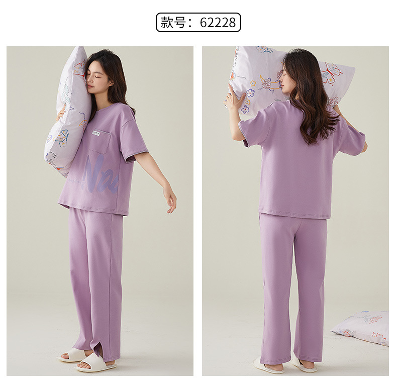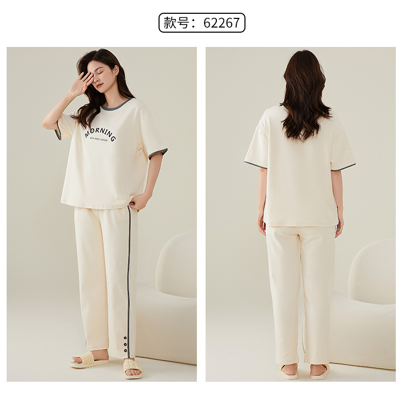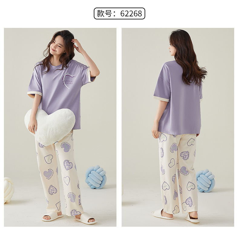 여성용 여름 잠옷 100% 순면 반팔 긴바지 세트 체크무늬 여성 홈웨어 얇고 외출 가능 전원풍스토어 가기