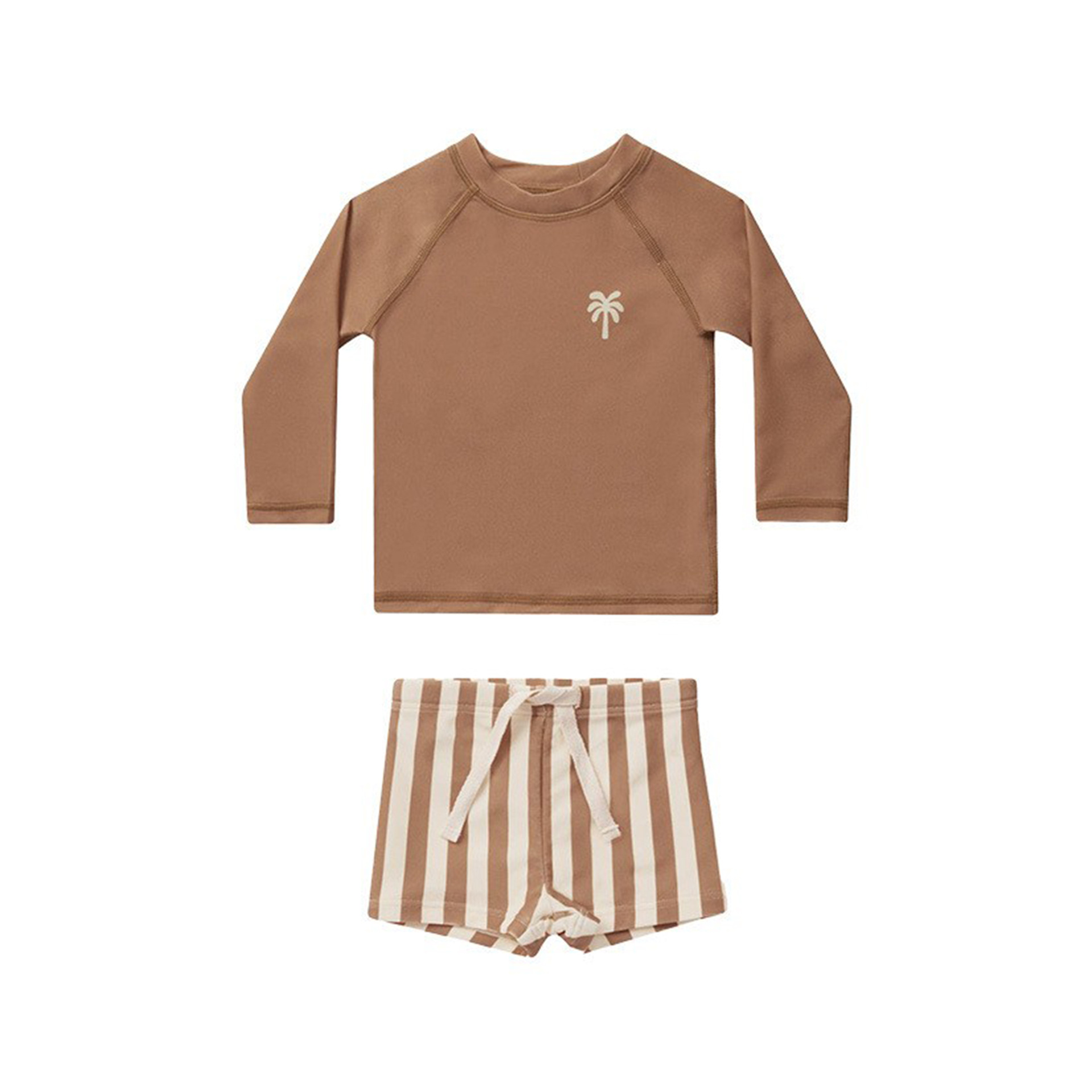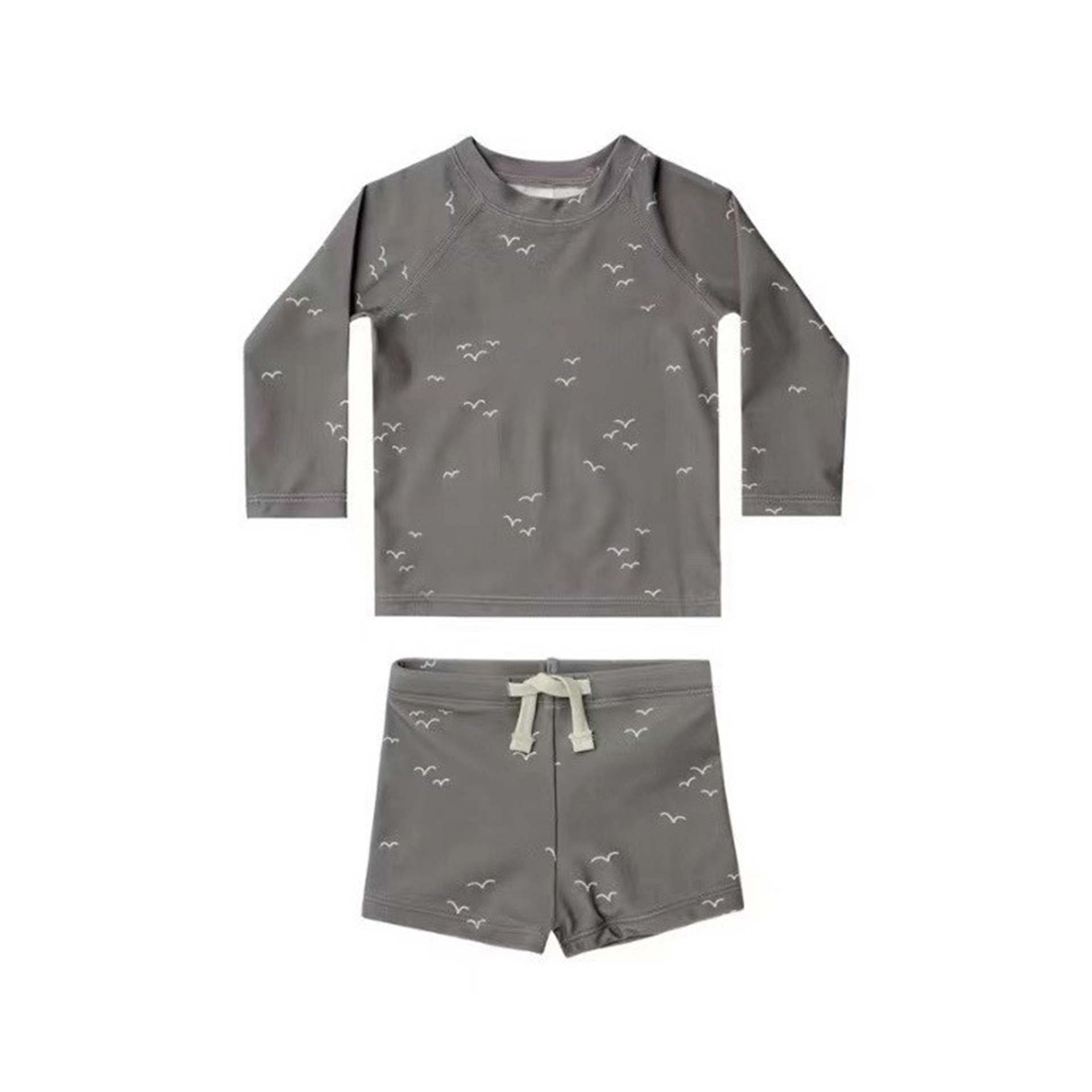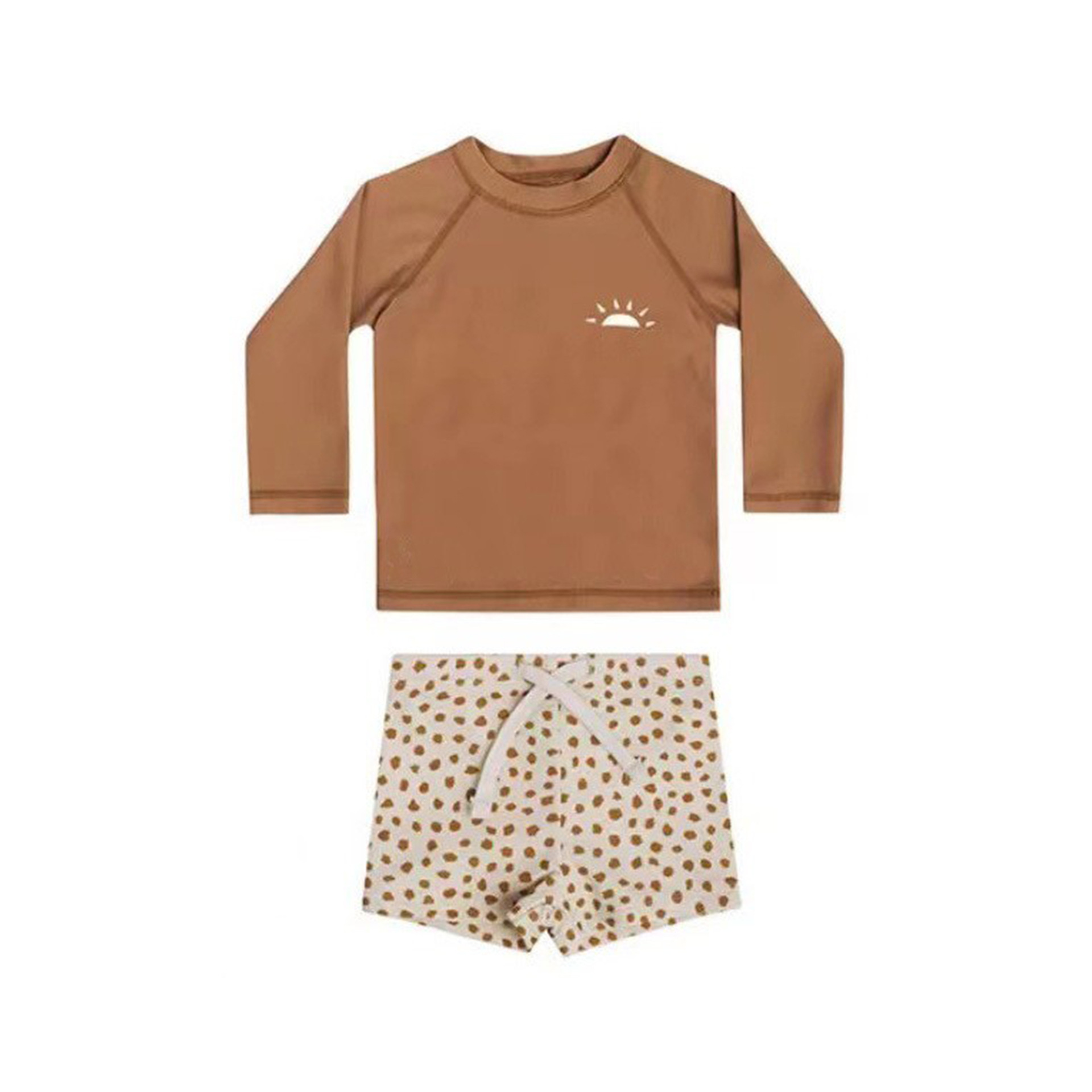 어린이 긴팔 스플릿 인 스타일 휴가 수영복 소년 아기 온천 수영복 소년 자외선 차단 속건 수영복