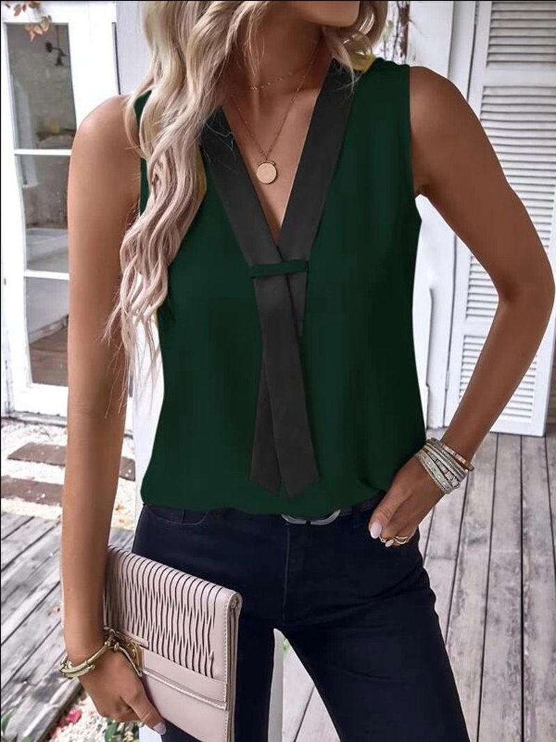 2023 새로운 아마존 소원 유럽과 미국 크로스 보더 여성 의류 V 컬러 대비 민소매 캐주얼 셔츠 크로스 보더 재고스토어 가기