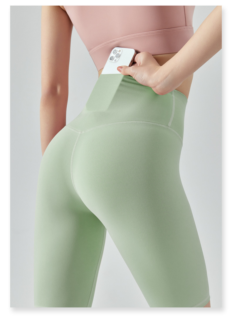 봄과 여름 새로운 고강도 요가 바지 원활한 높은 허리 엉덩이 알몸 허리 포켓 스포츠 피트니스 요가 반바지
