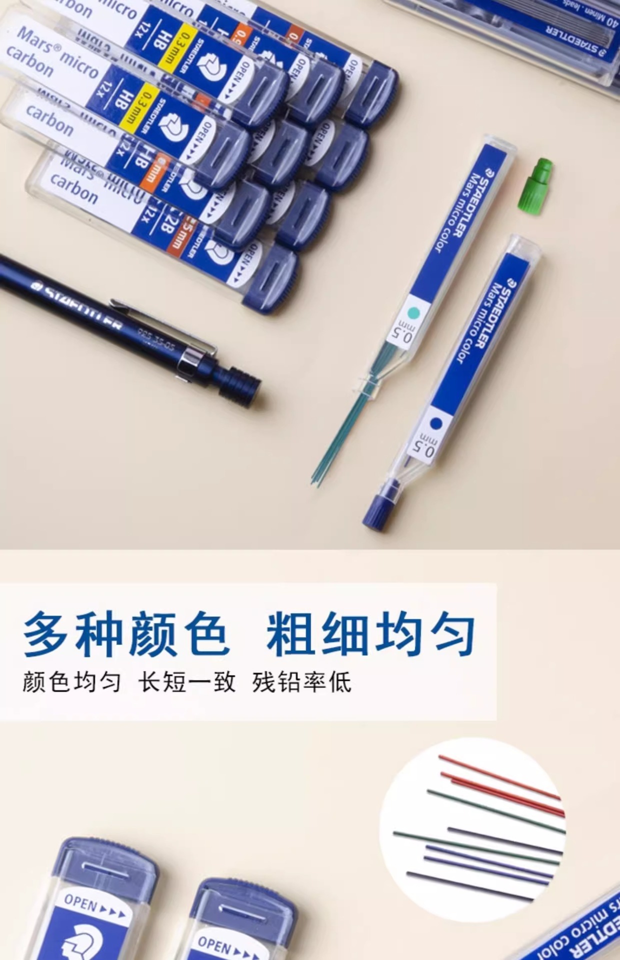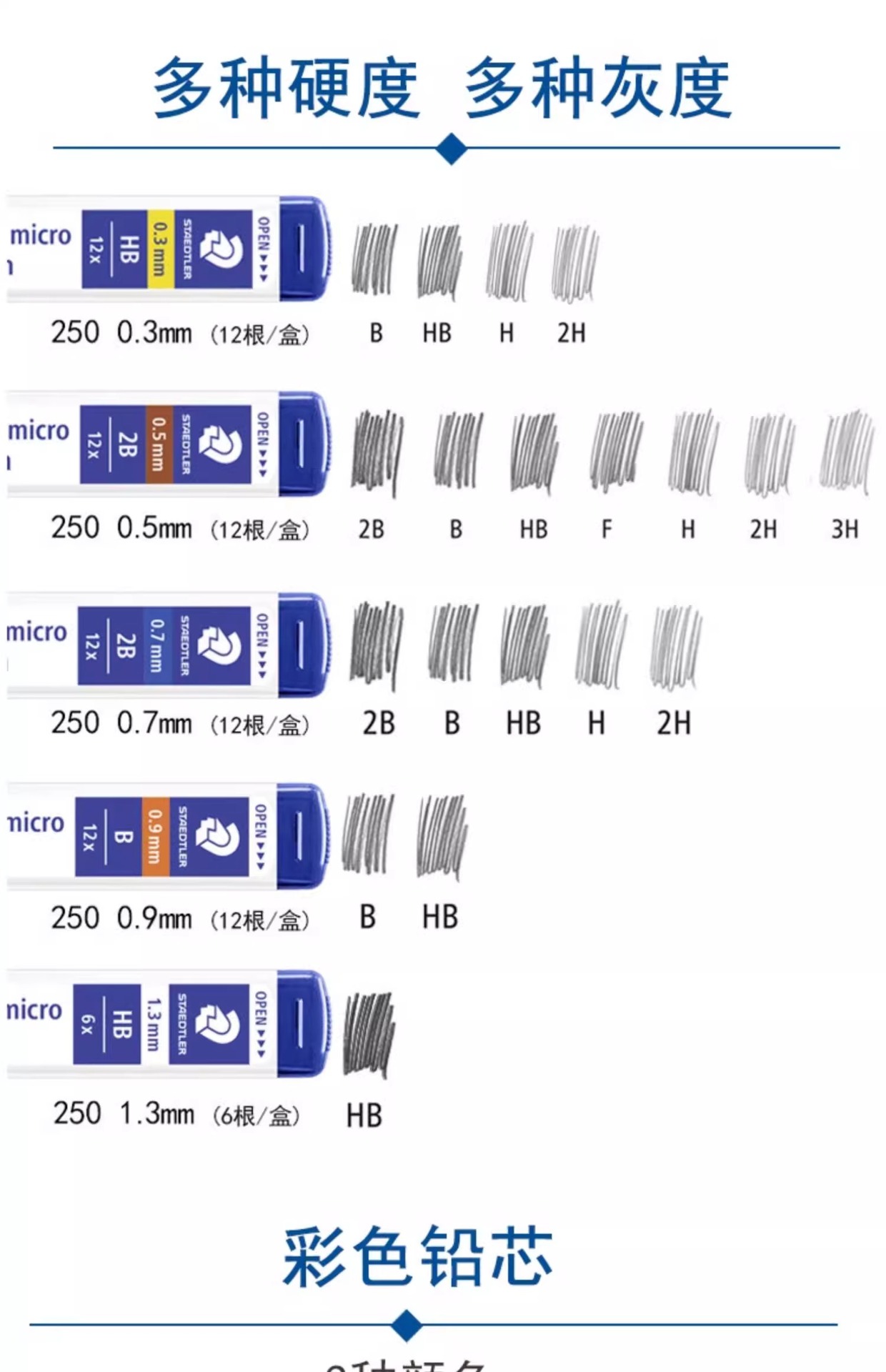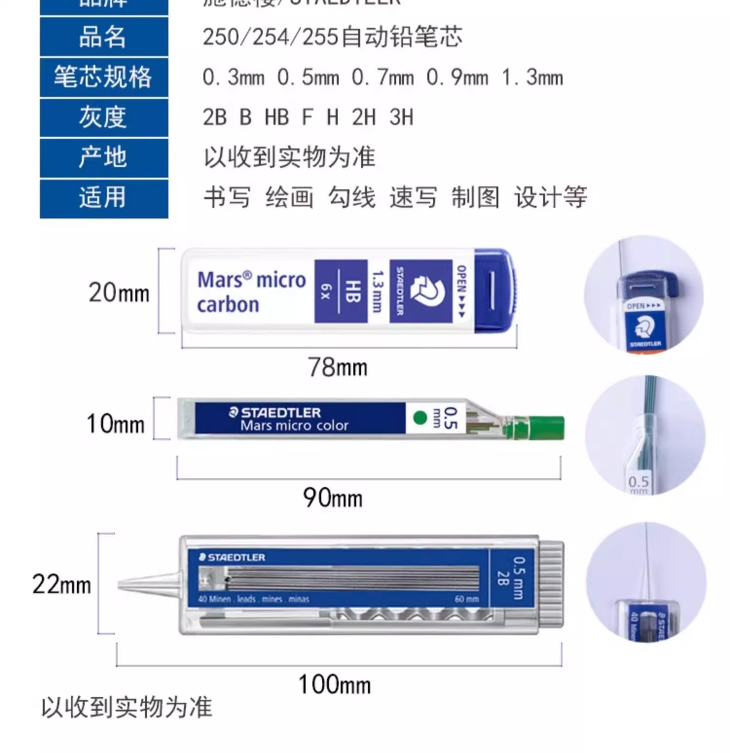 Staedtler 250/255 자동 연필심 0.3 | 0.5 | 0.7 | 0.9 | 1.3mm 파손 방지 교체 코어스토어 가기
