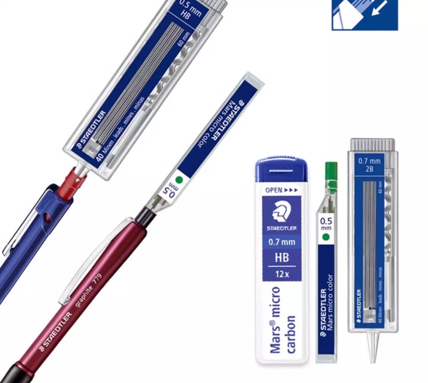Staedtler 250/255 자동 연필심 0.3 | 0.5 | 0.7 | 0.9 | 1.3mm 파손 방지 교체 코어
