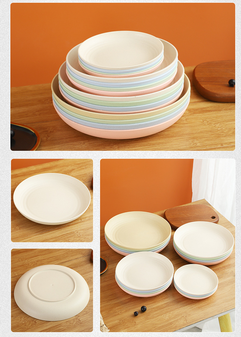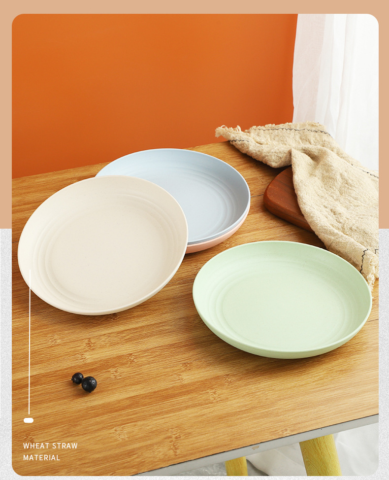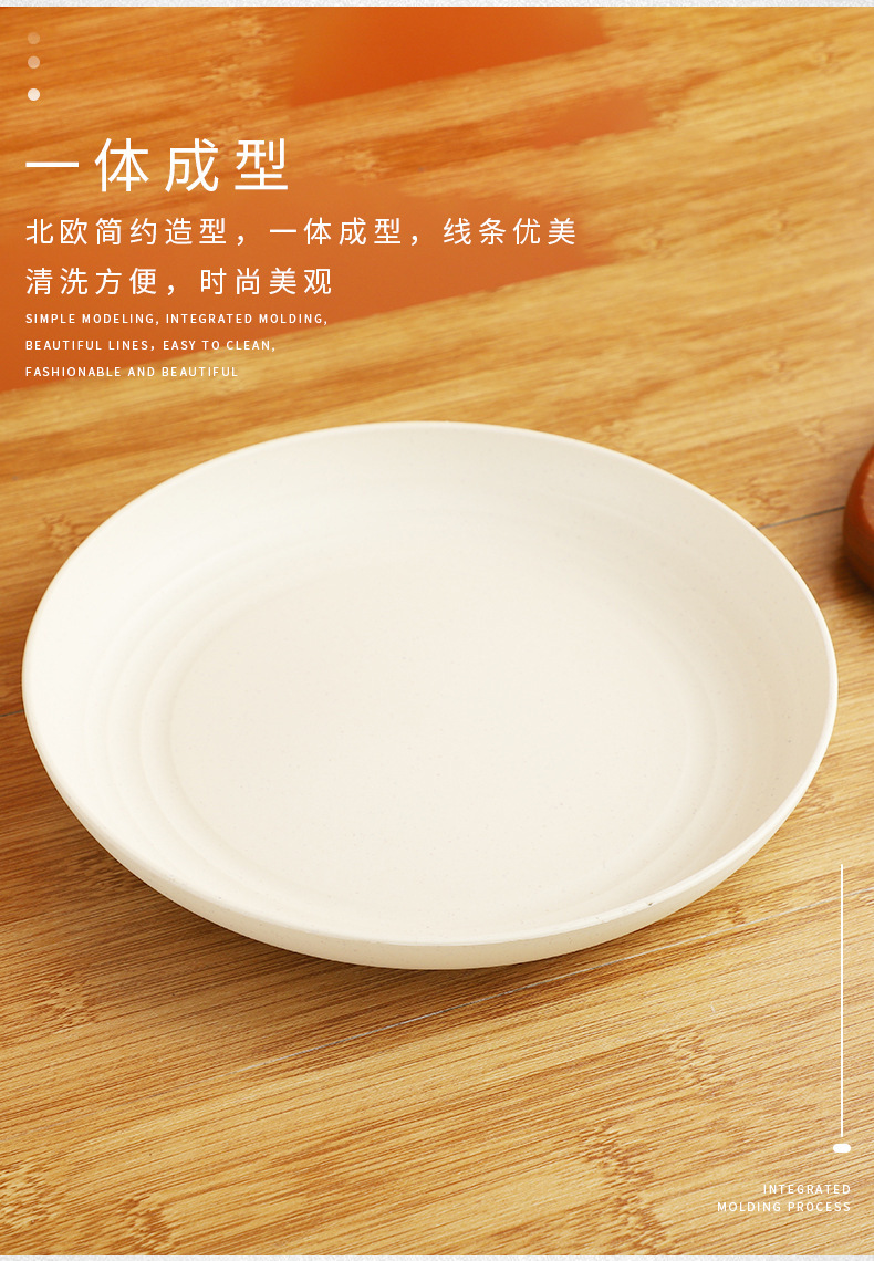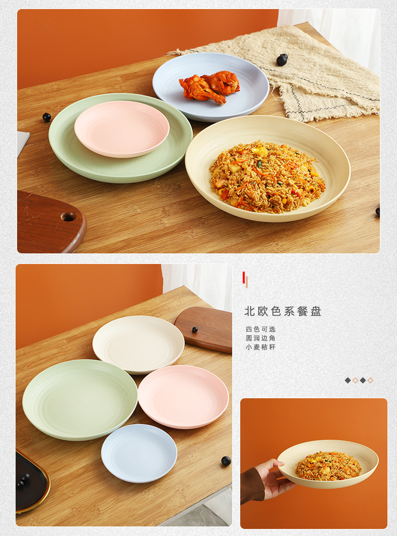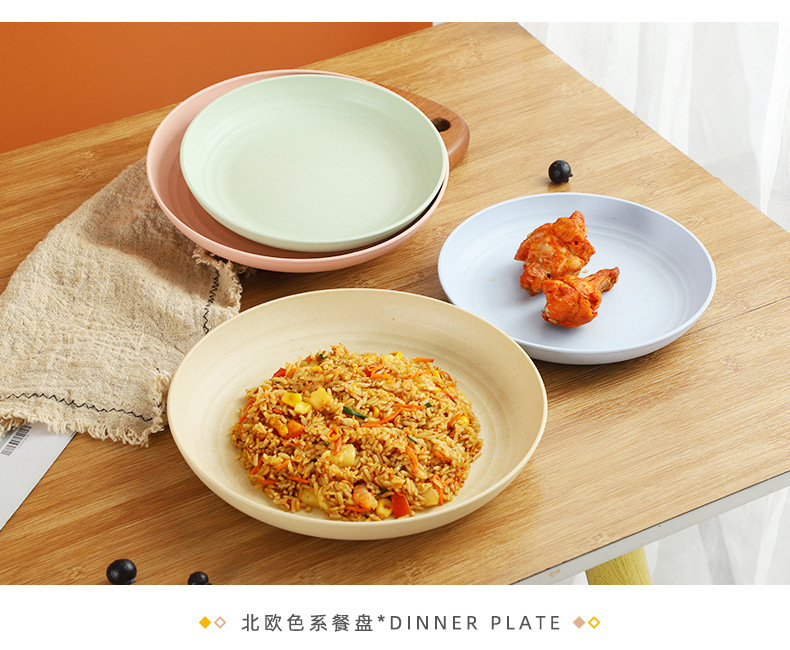 크로스 보더 밀 밀짚 접시 25cm 대형 원형 접시 가정용 20cm 접시 과일 접시 북유럽 플라스틱 접시