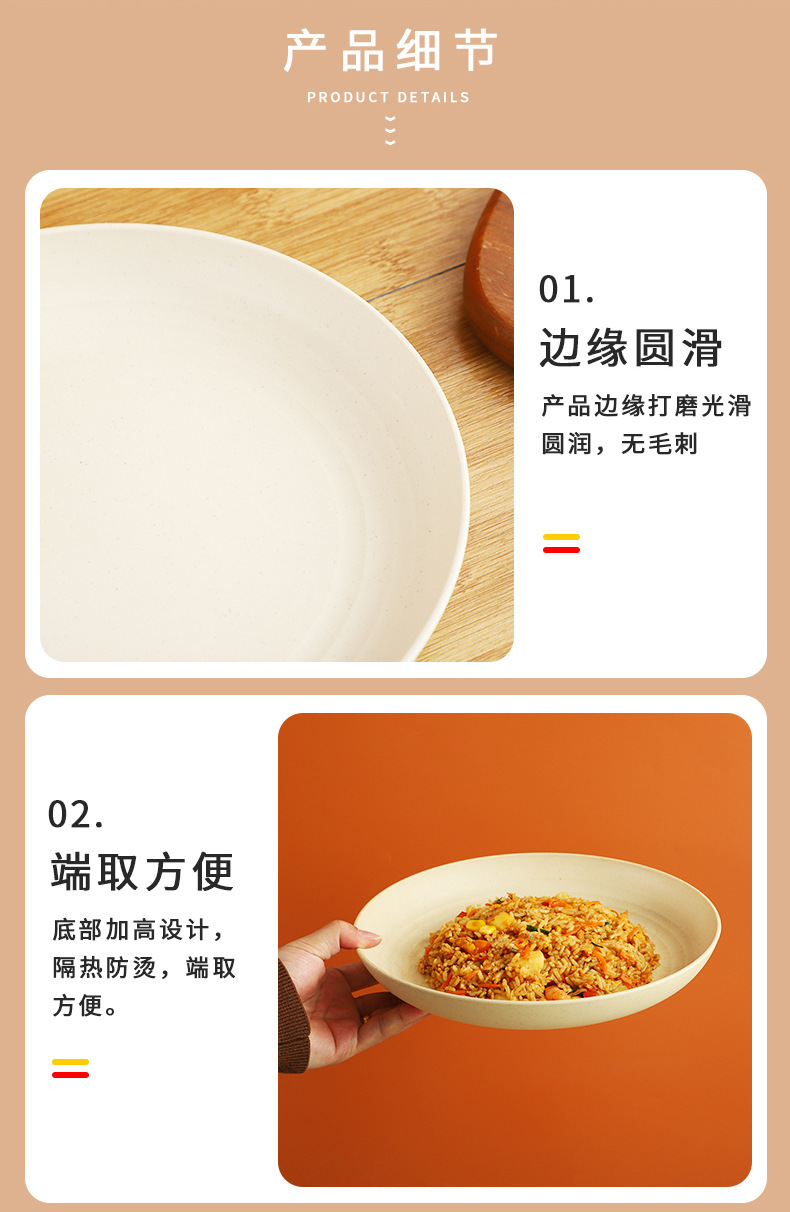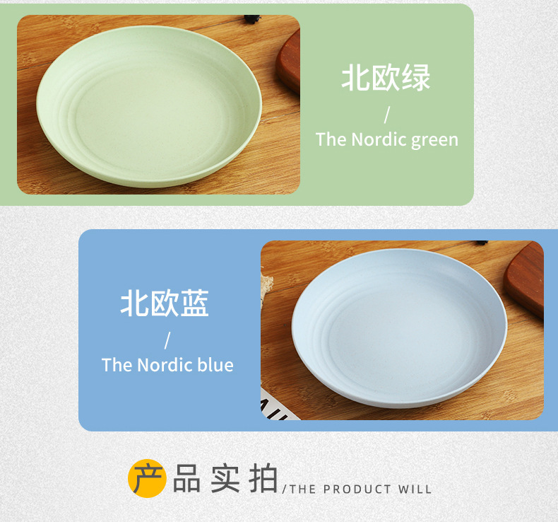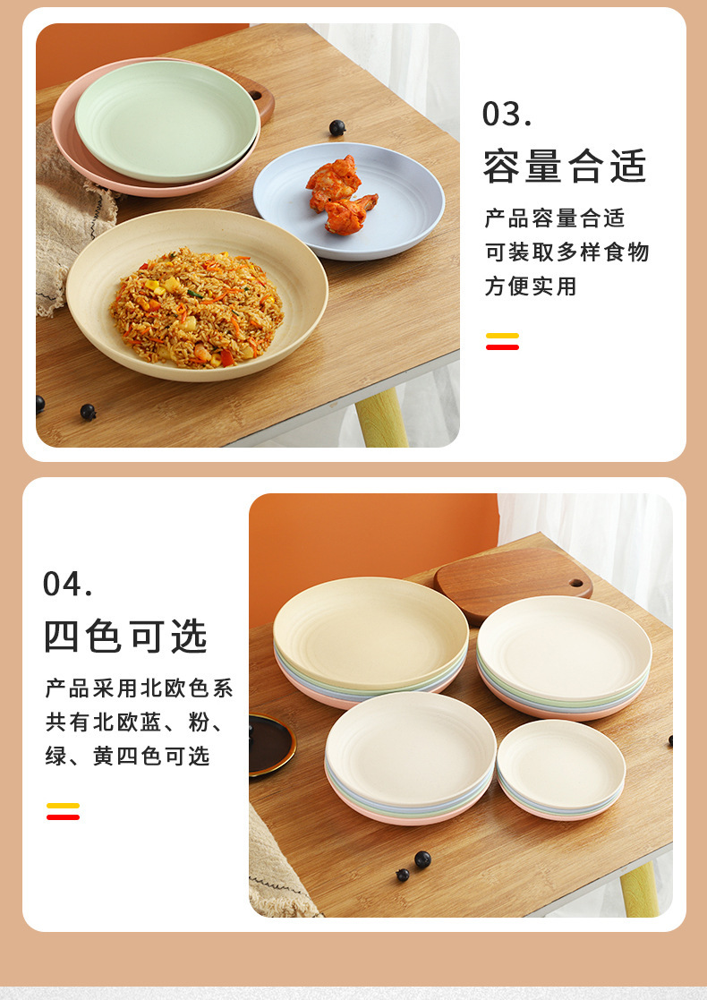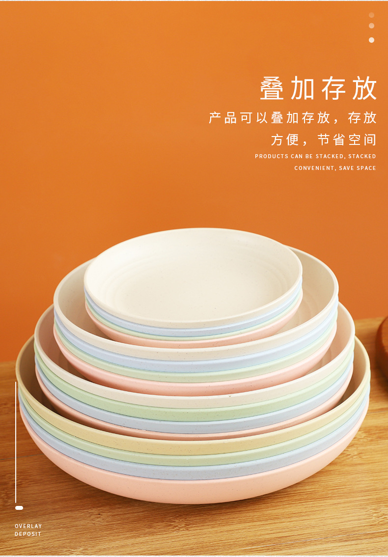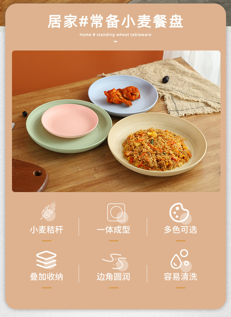 크로스 보더 밀 밀짚 접시 25cm 대형 원형 접시 가정용 20cm 접시 과일 접시 북유럽 플라스틱 접시