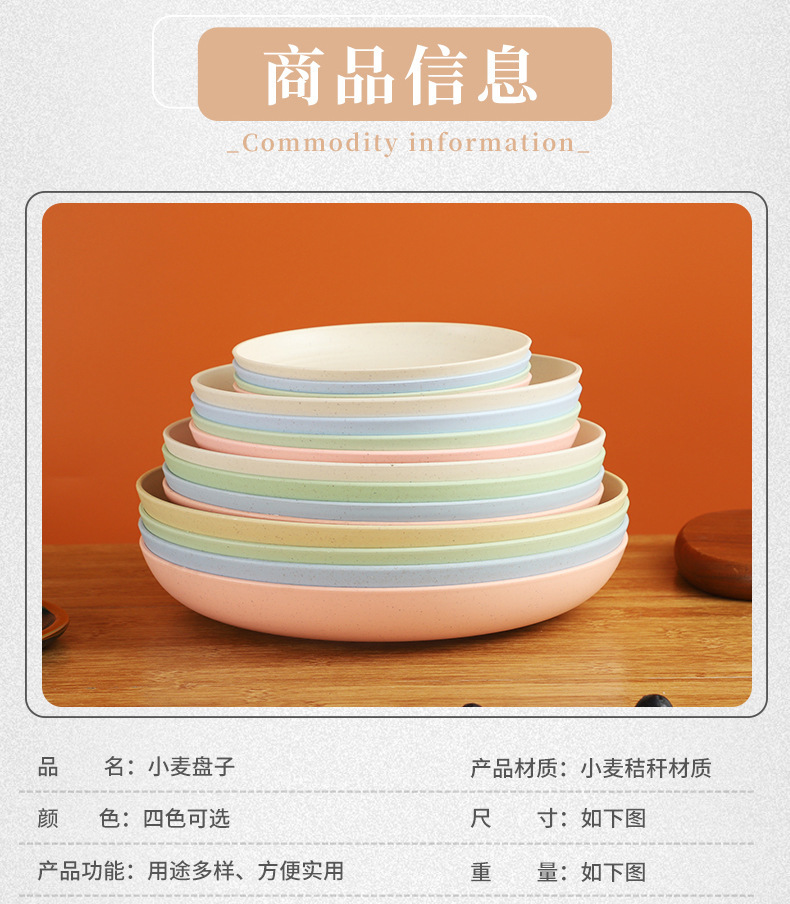 크로스 보더 밀 밀짚 접시 25cm 대형 원형 접시 가정용 20cm 접시 과일 접시 북유럽 플라스틱 접시스토어 가기