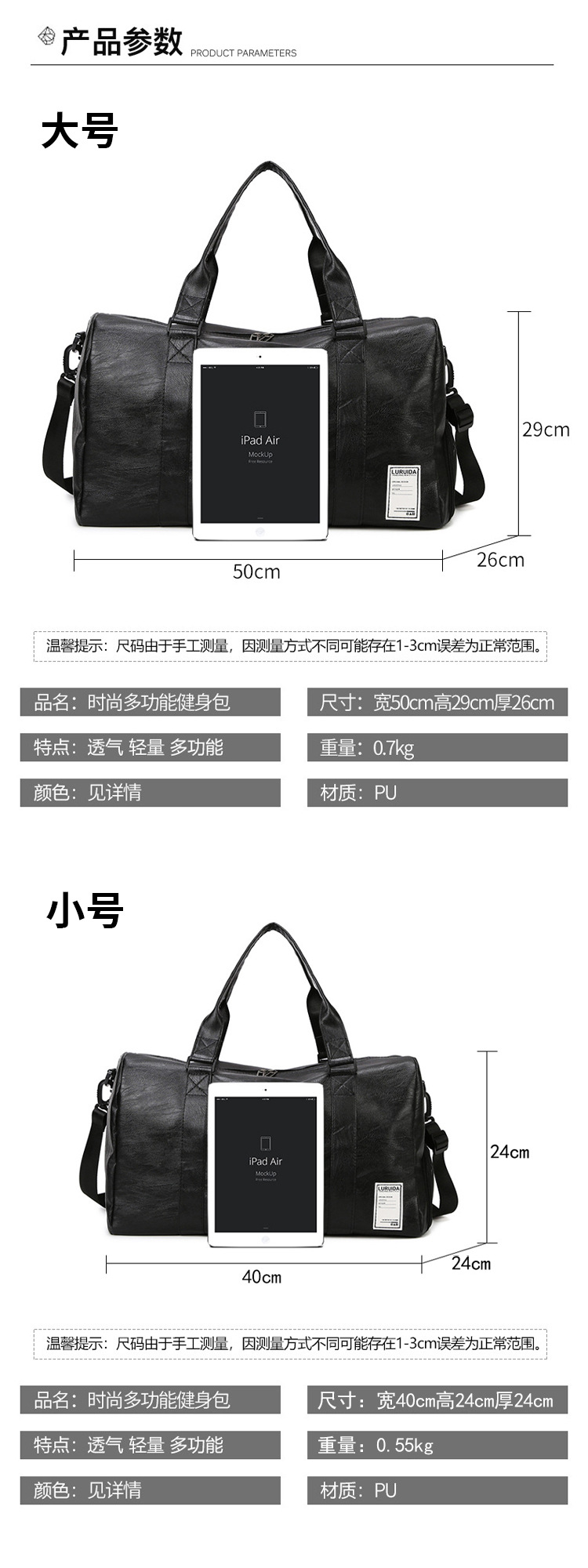 맞춤형 로고 건조하고 젖은 분리 피트니스 가방 패션 대용량 여행 가방 수하물 가방 어깨 메신저 가방 스포츠 가방스토어 가기