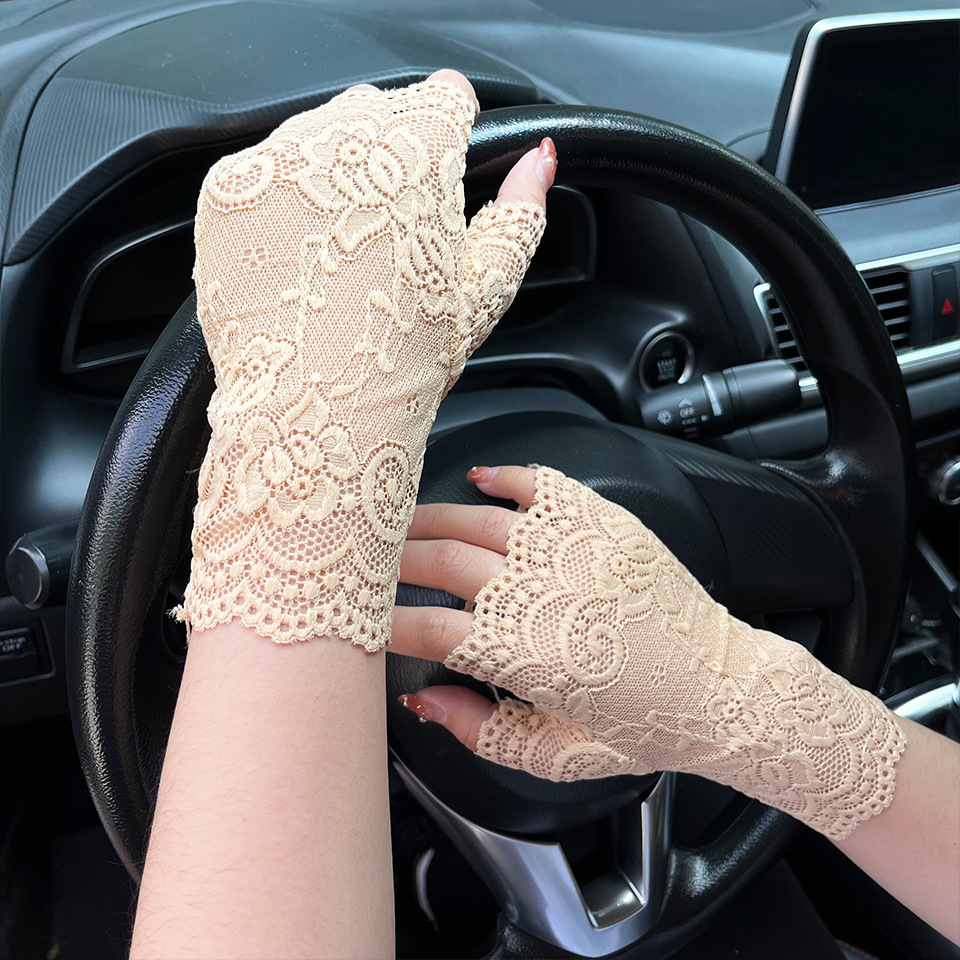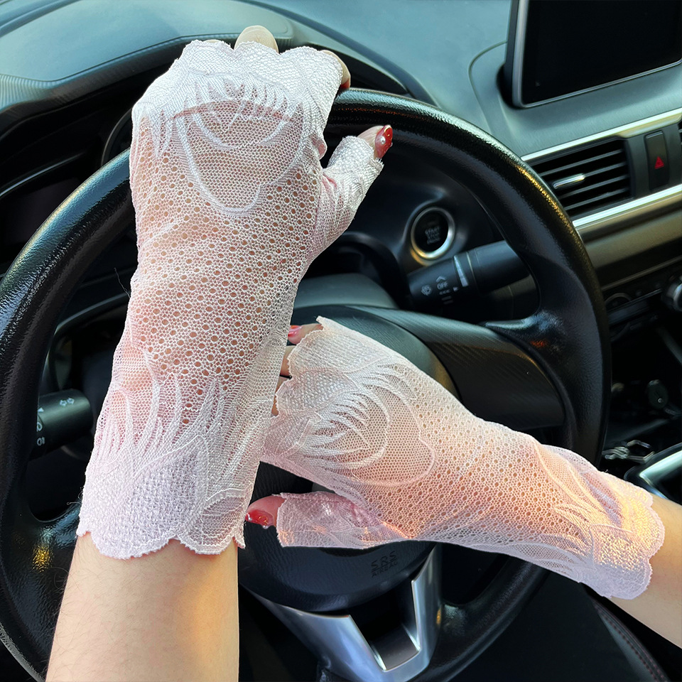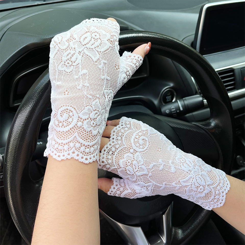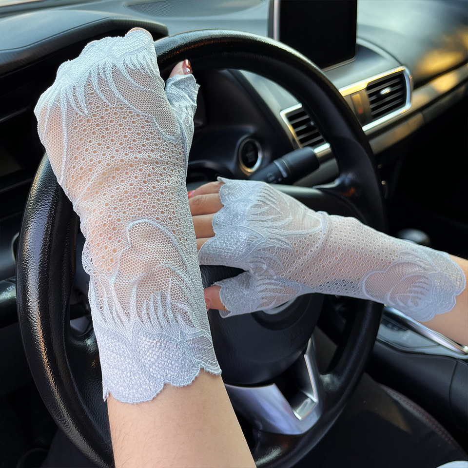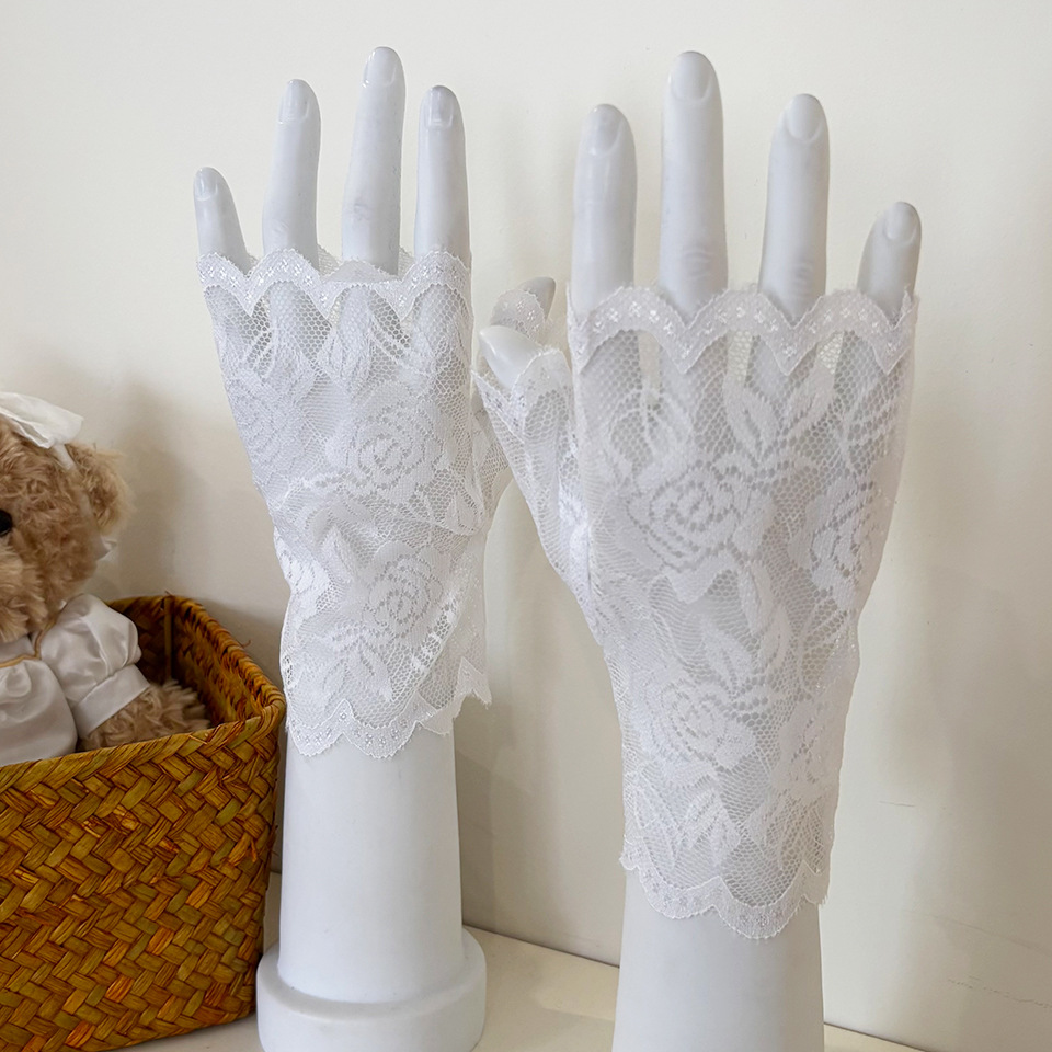 아이스 레이스 장갑 여성용 여름 자외선 차단제 얇은 통기성 중년 스퀘어 댄스 연장 반 손가락 도매