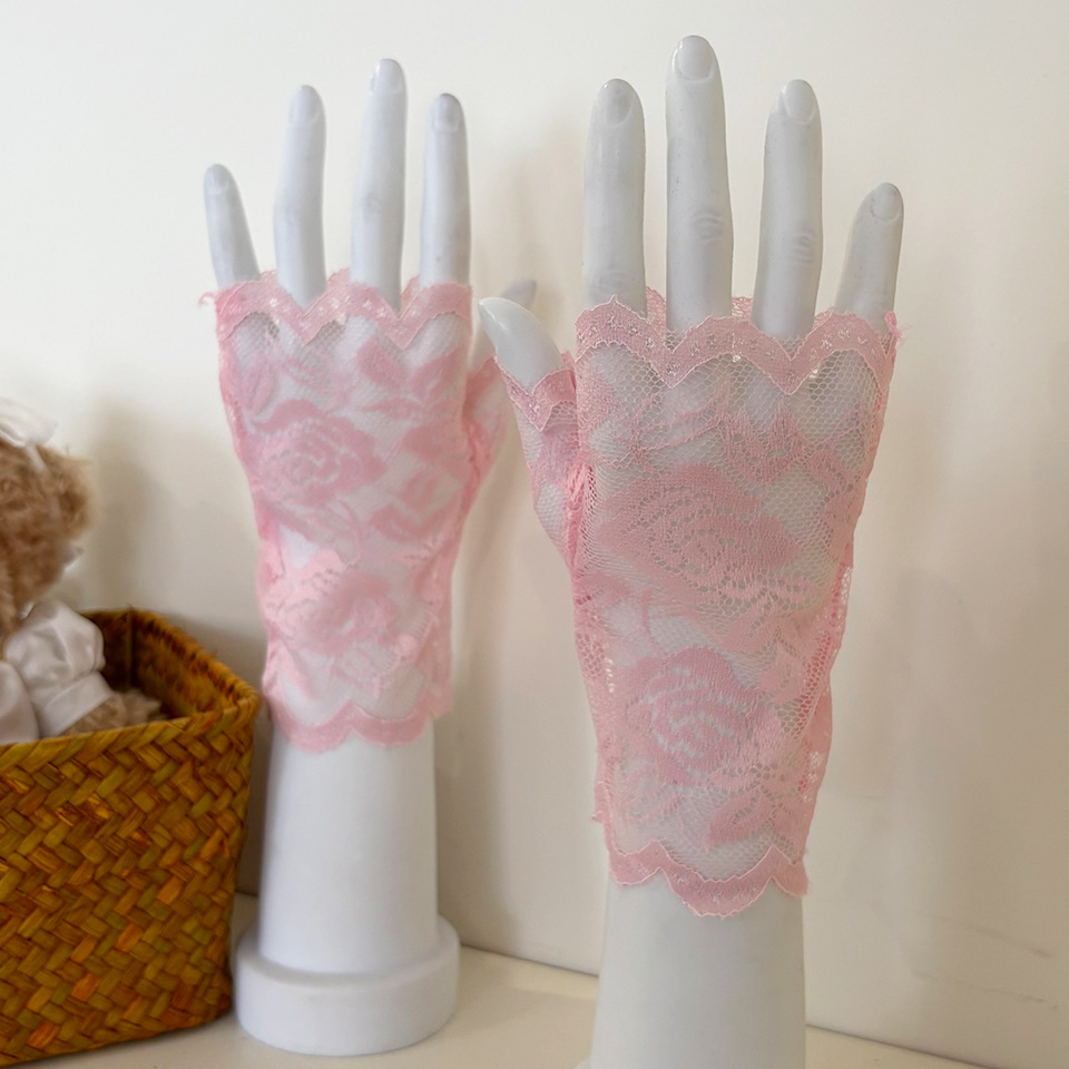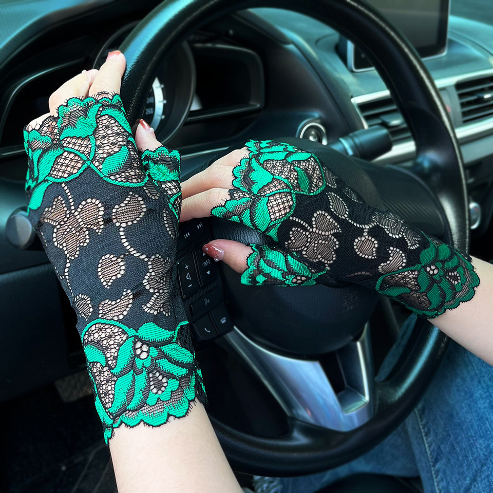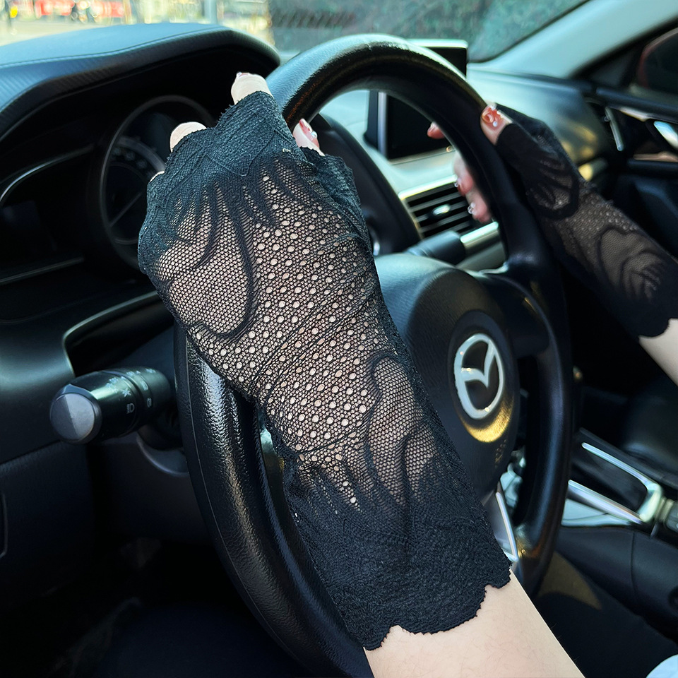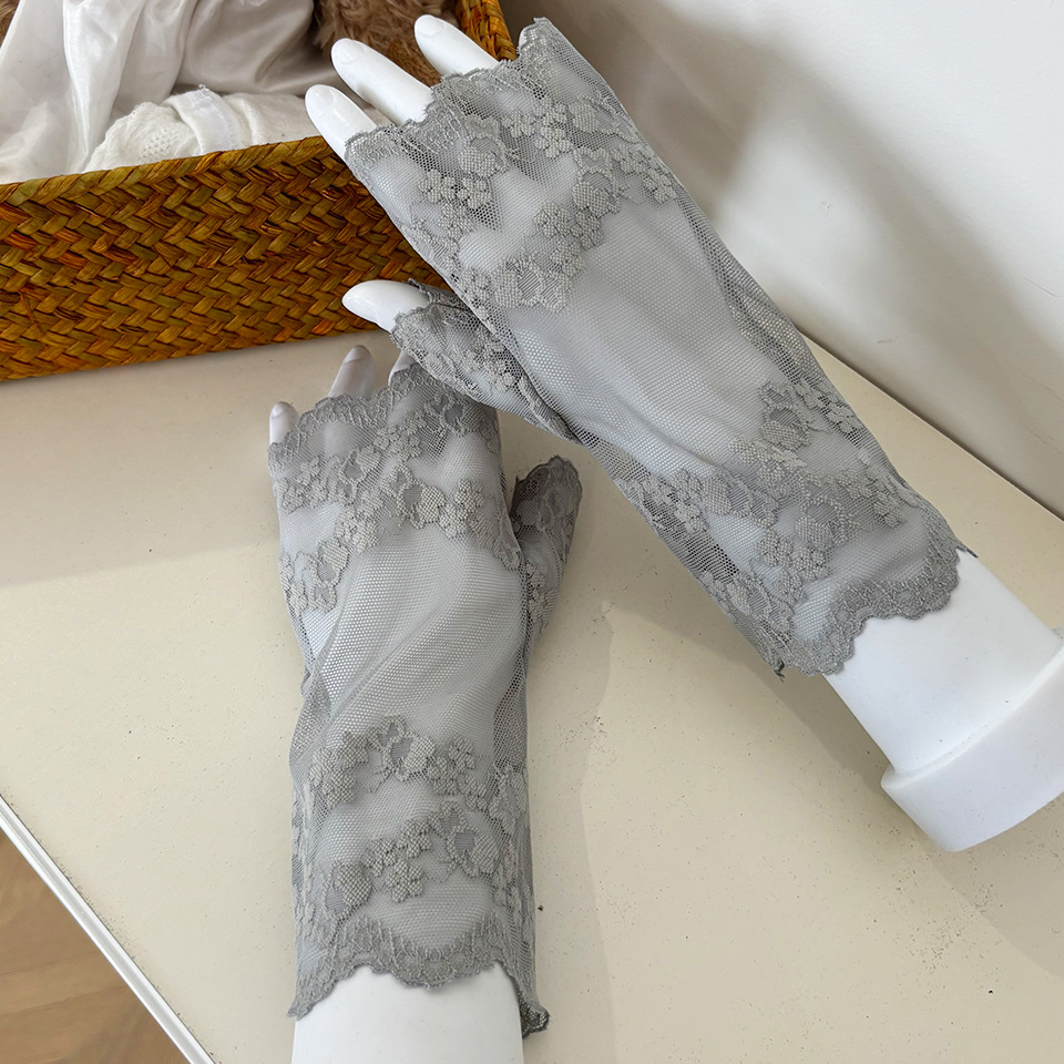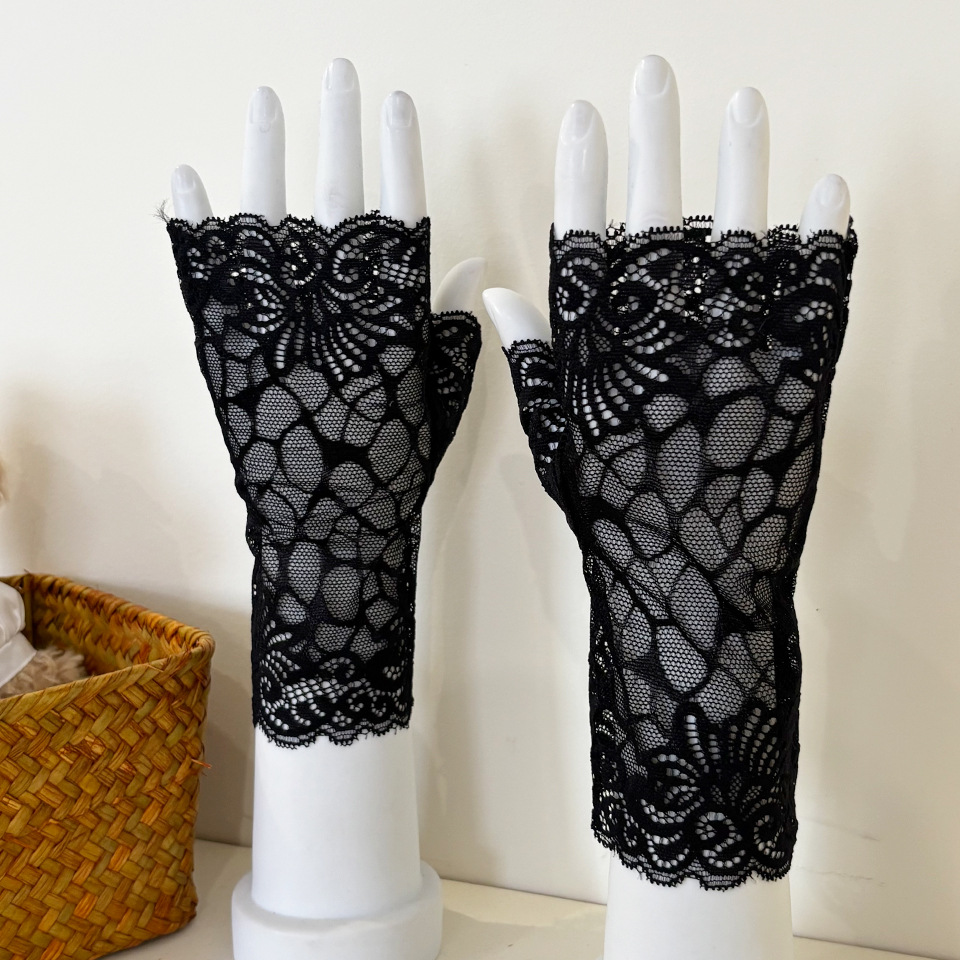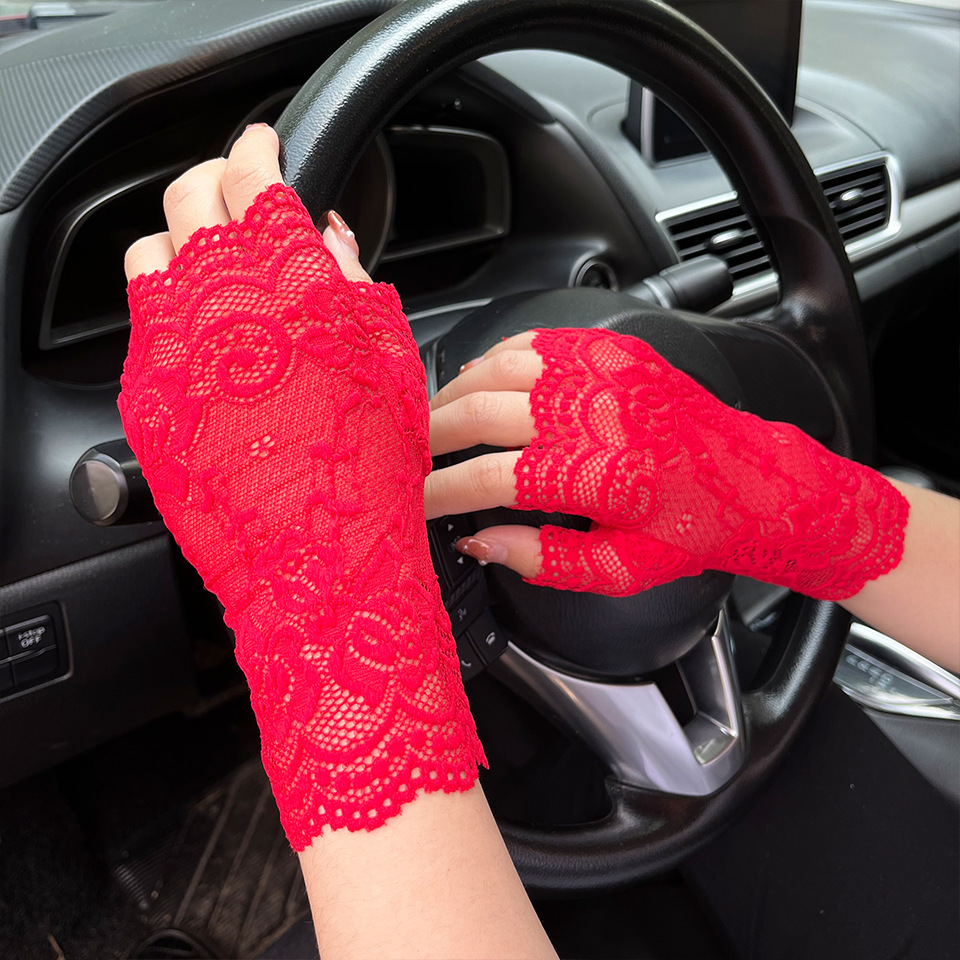 아이스 레이스 장갑 여성용 여름 자외선 차단제 얇은 통기성 중년 스퀘어 댄스 연장 반 손가락 도매