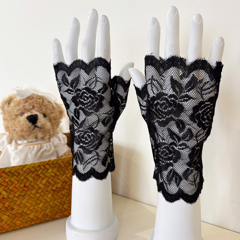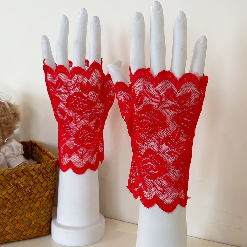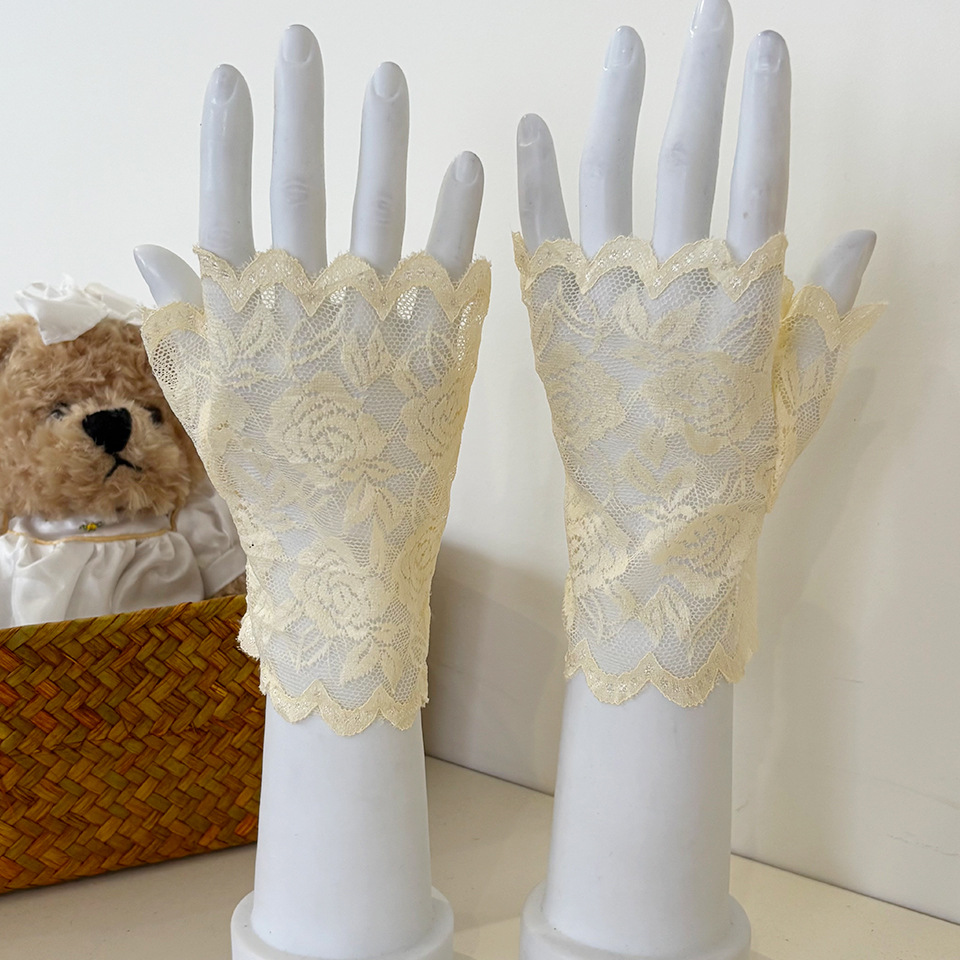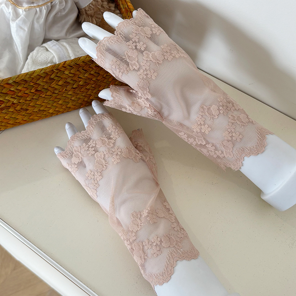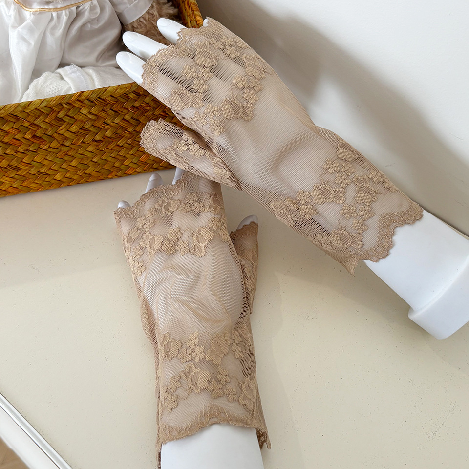 아이스 레이스 장갑 여성용 여름 자외선 차단제 얇은 통기성 중년 스퀘어 댄스 연장 반 손가락 도매