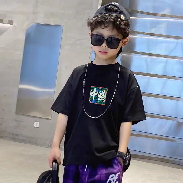 남아 반팔 티셔츠 순면 서양식 여름 아동복 중간 및 큰 어린이 전국 패션 남아 반팔 새로운 여름 패션