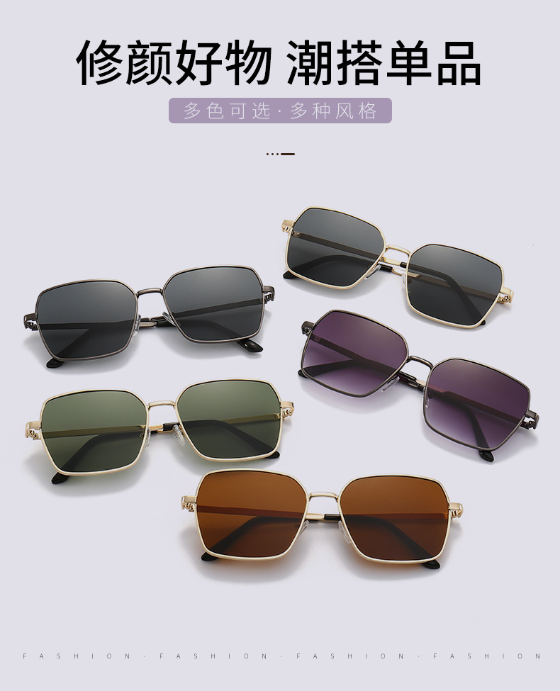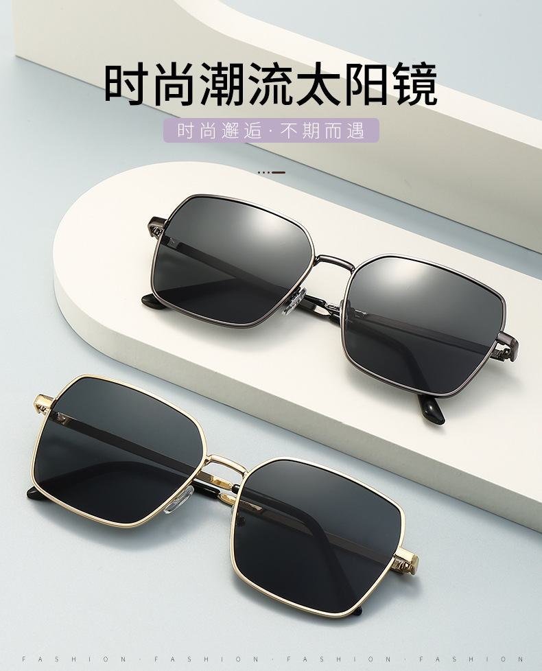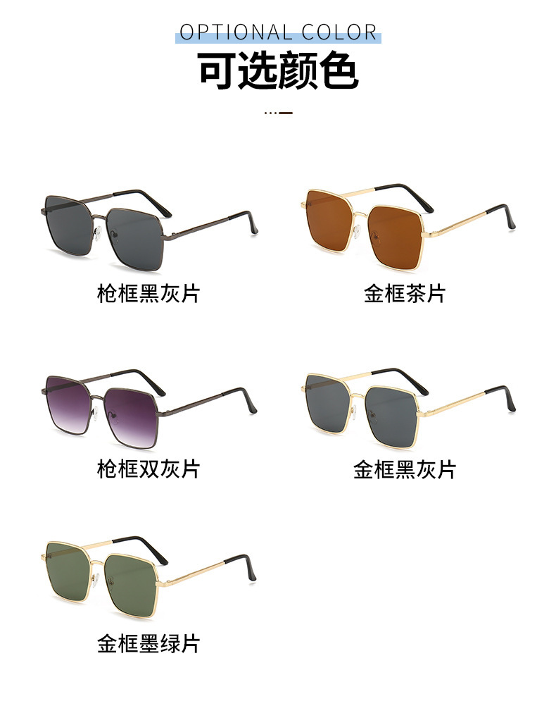 2025 새로운 간단한 사각형 대형 프레임 선글라스 금속 복고풍 선글라스 한국 일반 자외선 방지 안경스토어 가기