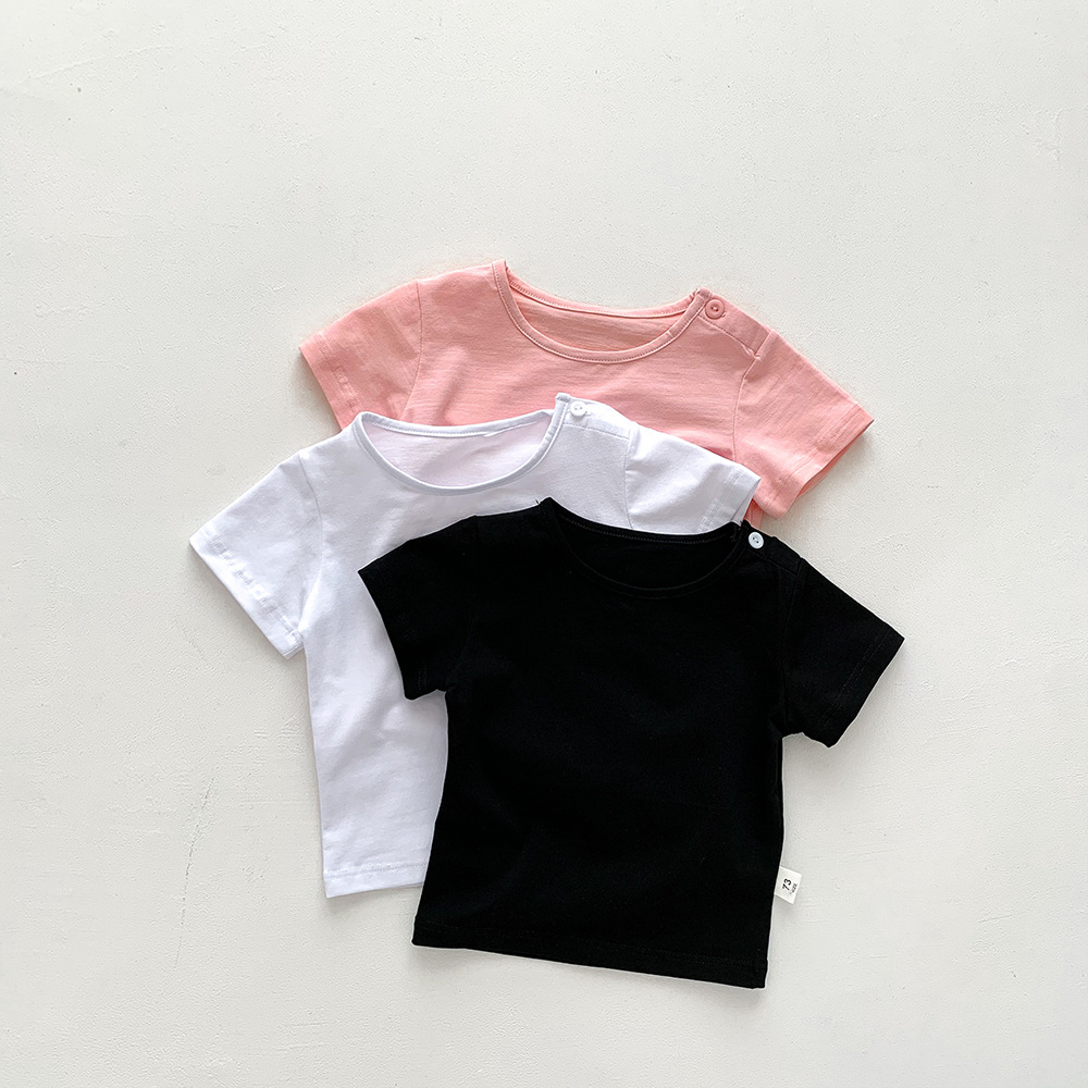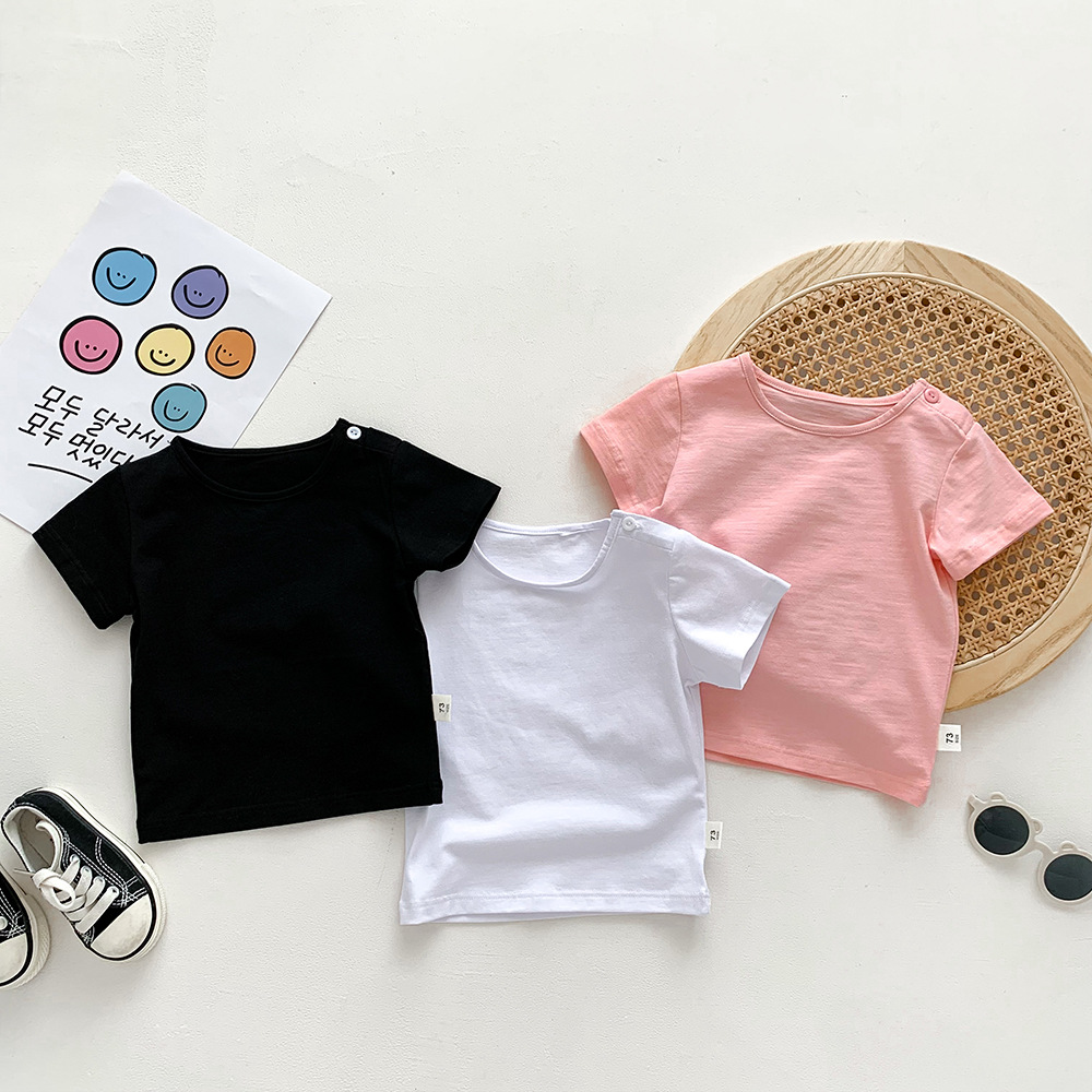 아기의 반팔 티셔츠 여름 얇은 소년 소녀 아기의 단색 탑 면 반팔 옷 어린이 여름 옷 카테고리 트렌디스토어 가기