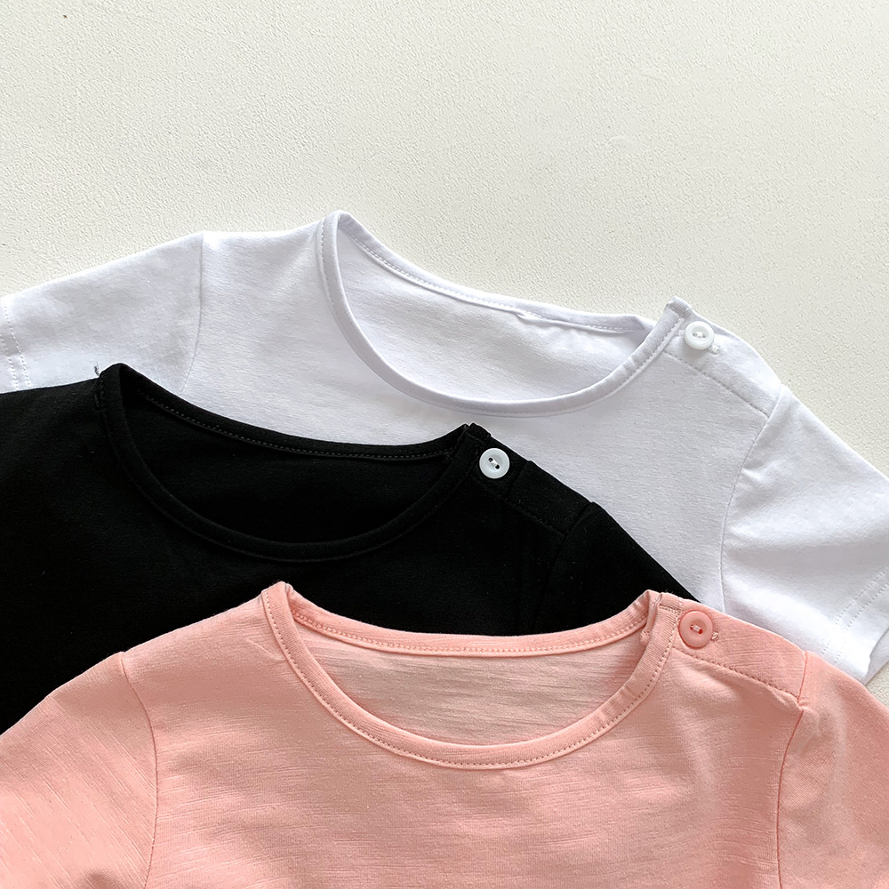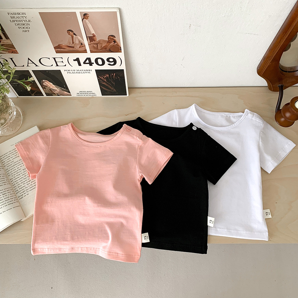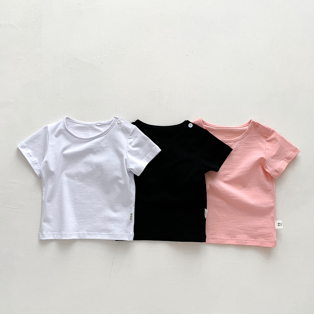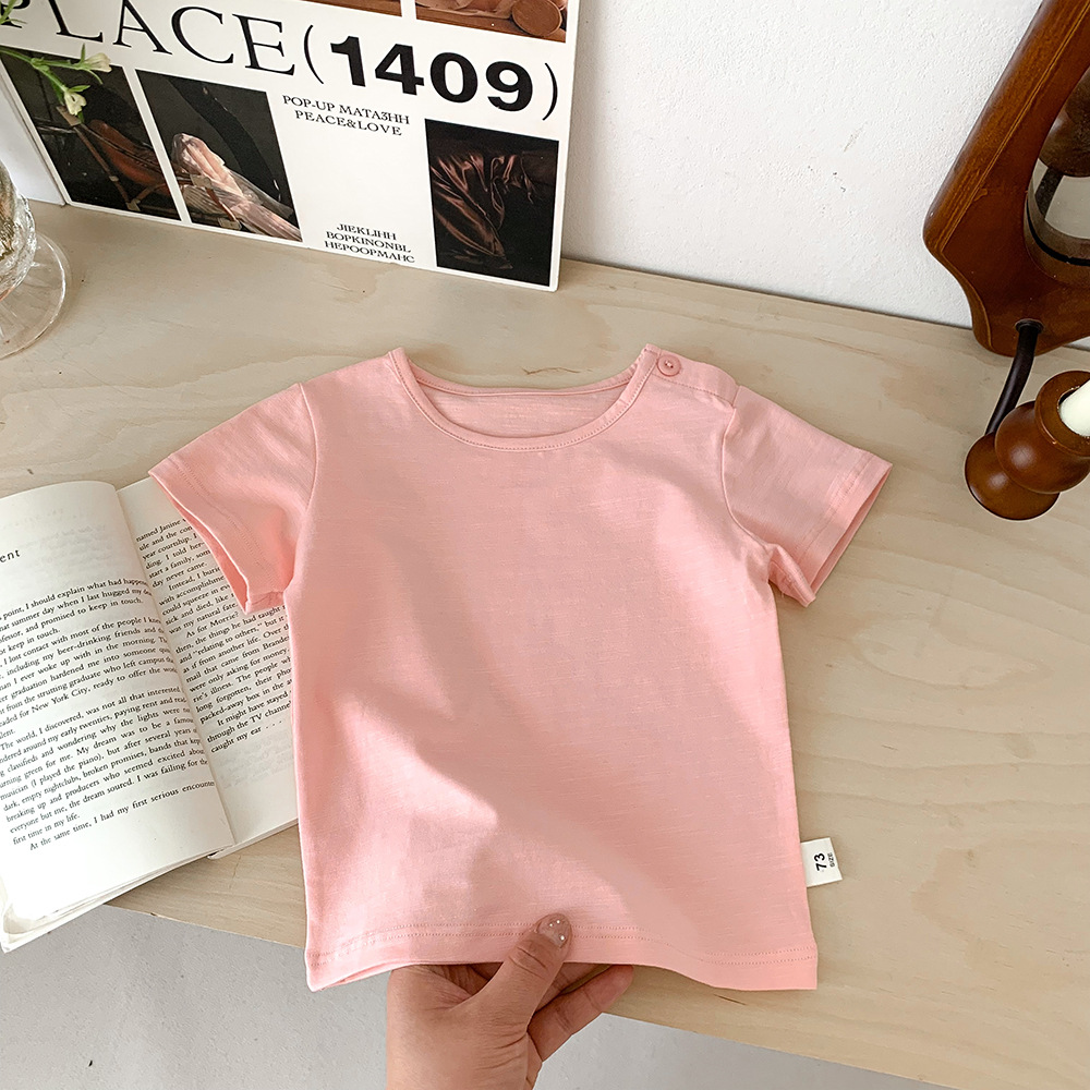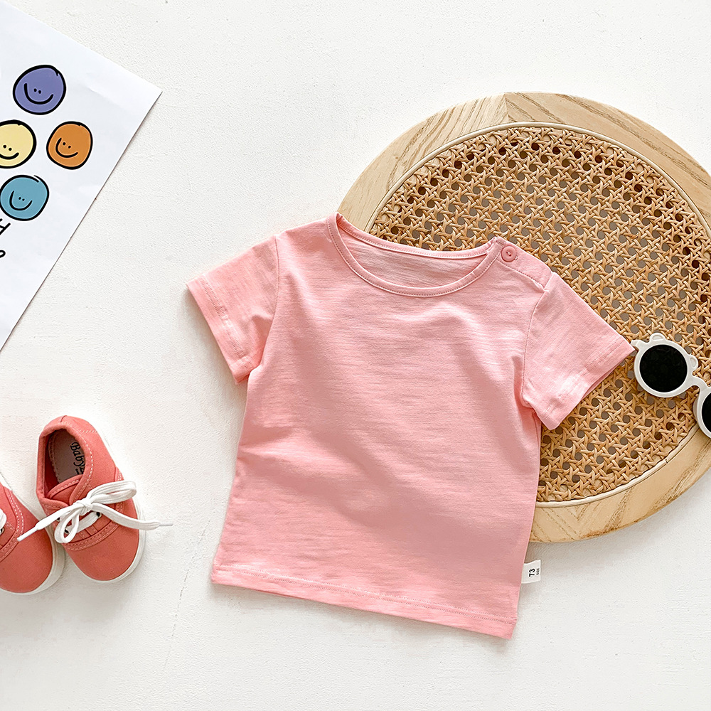 아기의 반팔 티셔츠 여름 얇은 소년 소녀 아기의 단색 탑 면 반팔 옷 어린이 여름 옷 카테고리 트렌디