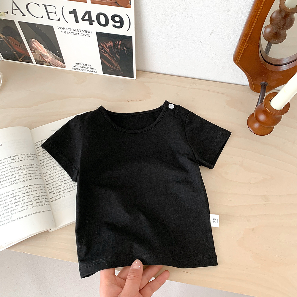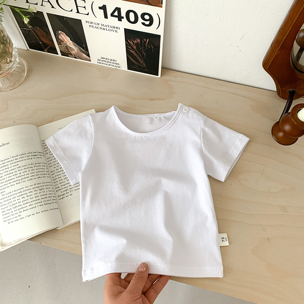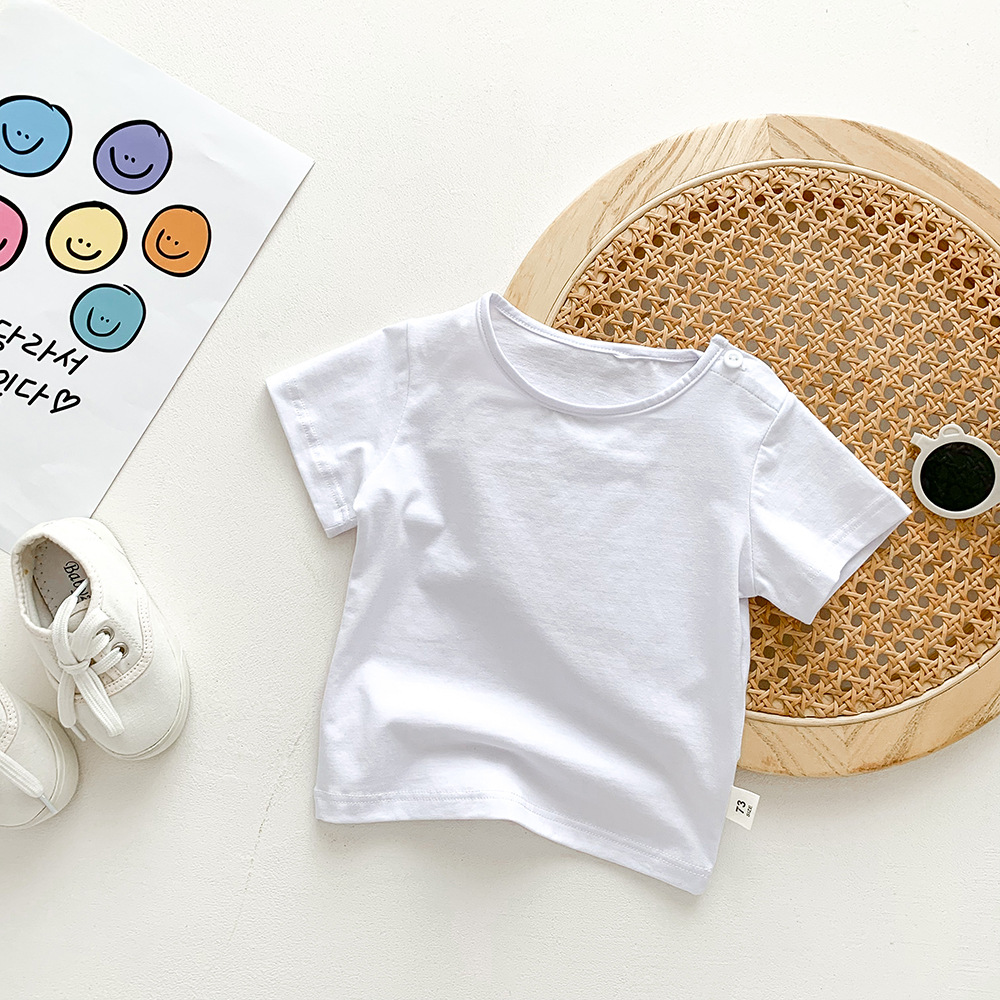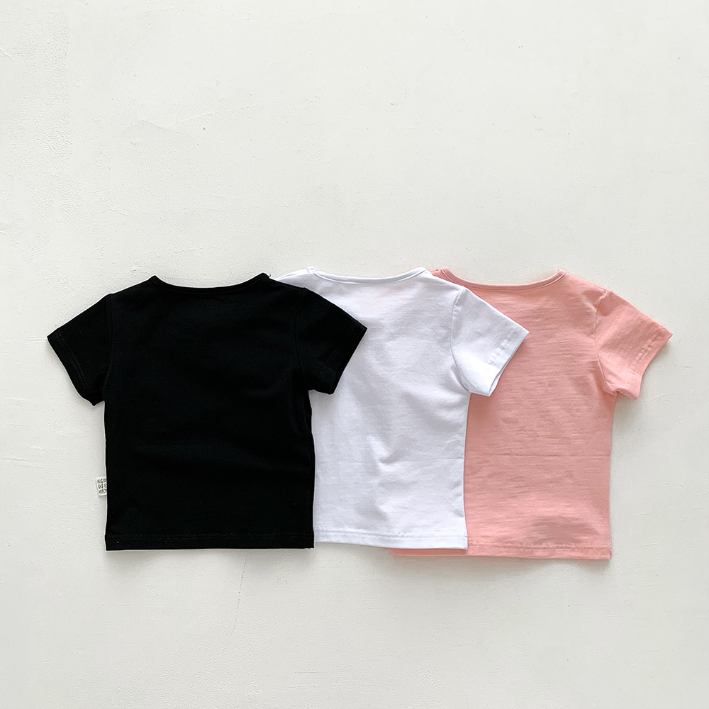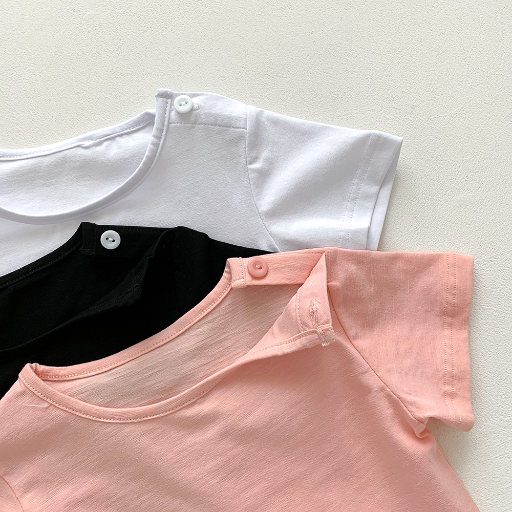 아기의 반팔 티셔츠 여름 얇은 소년 소녀 아기의 단색 탑 면 반팔 옷 어린이 여름 옷 카테고리 트렌디