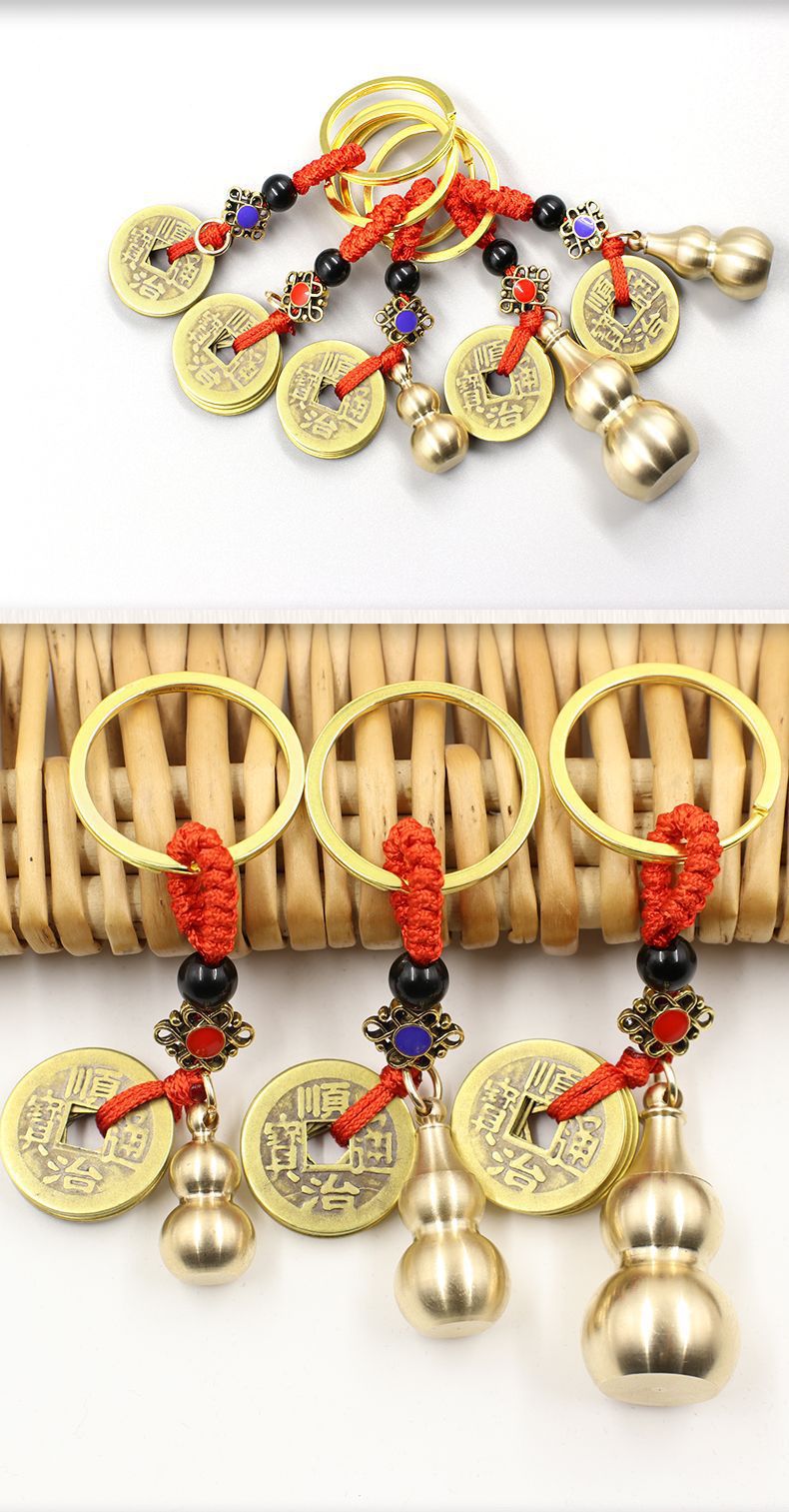 폭발 구리 조롱박 5 황제 돈 열쇠 고리 순수 구리 5 황제 돈 열쇠 고리 펜던트 구리 조롱박 열쇠 고리 도매스토어 가기